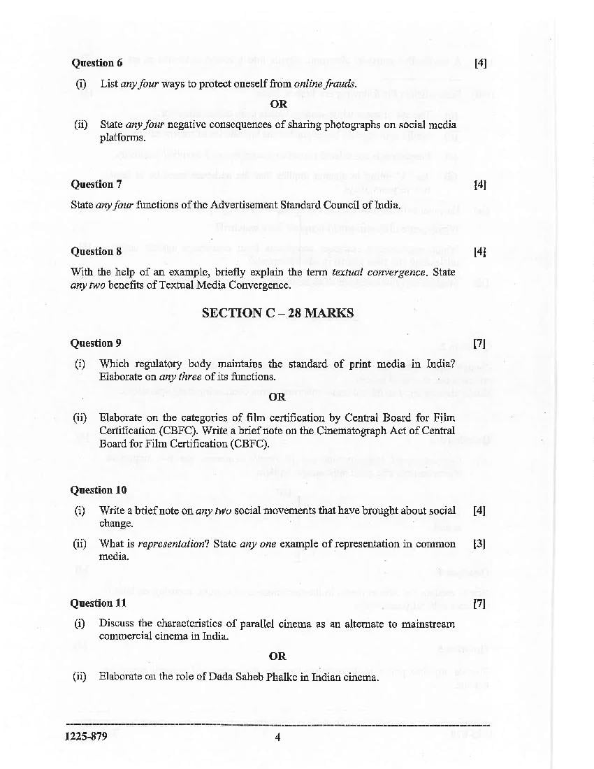 The CISCE previous year question paper of ISC Class 12 for Mass Media & Communication are as follows.