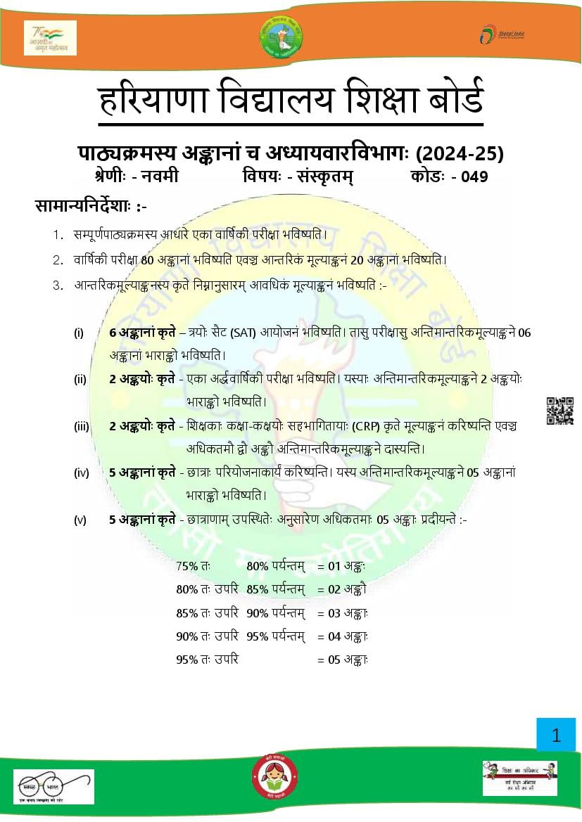 HBSE Class 9 Syllabus 2025 Sanskrit View Download