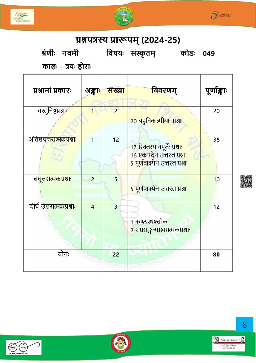 HBSE 9th Syllabus 2025 for Sanskrit | Download Haryana Class 9 Sanskrit Syllabus Blueprint PDF