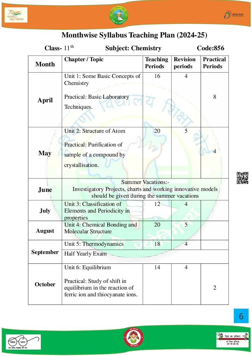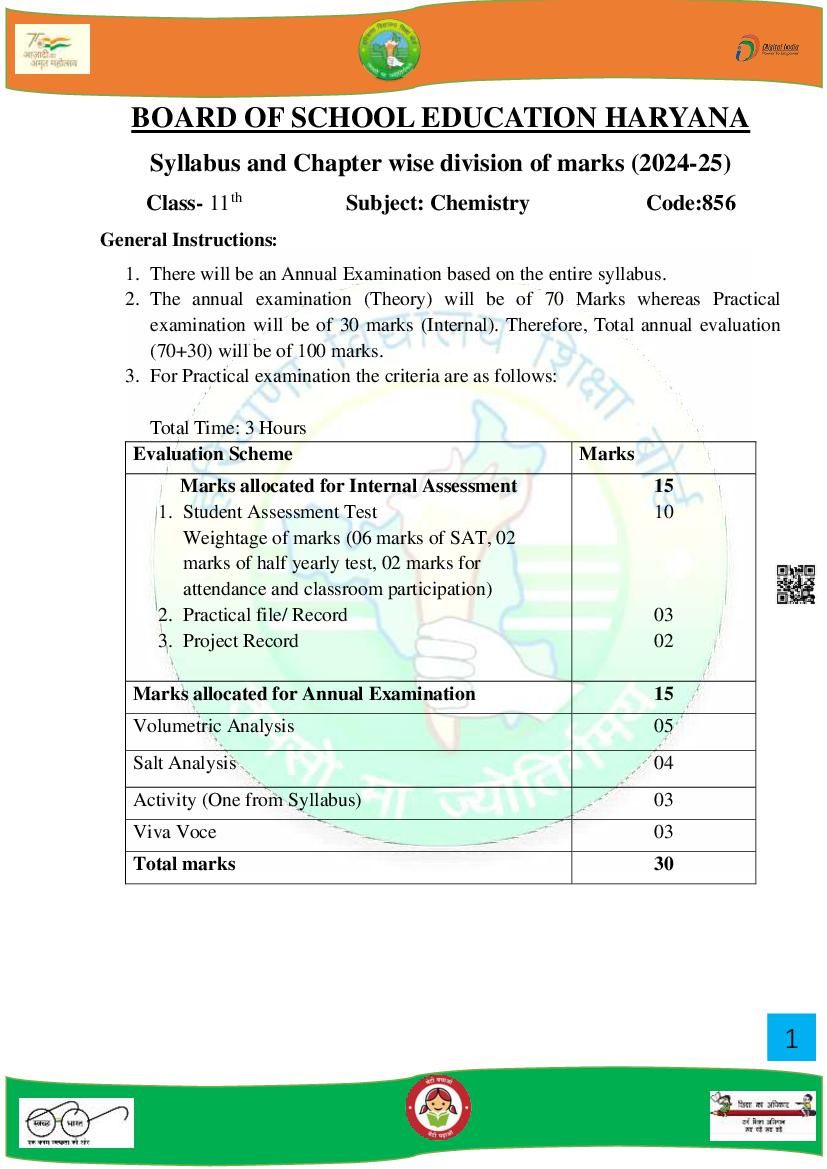 HBSE Class 11 Syllabus 2025 Chemistry View Download