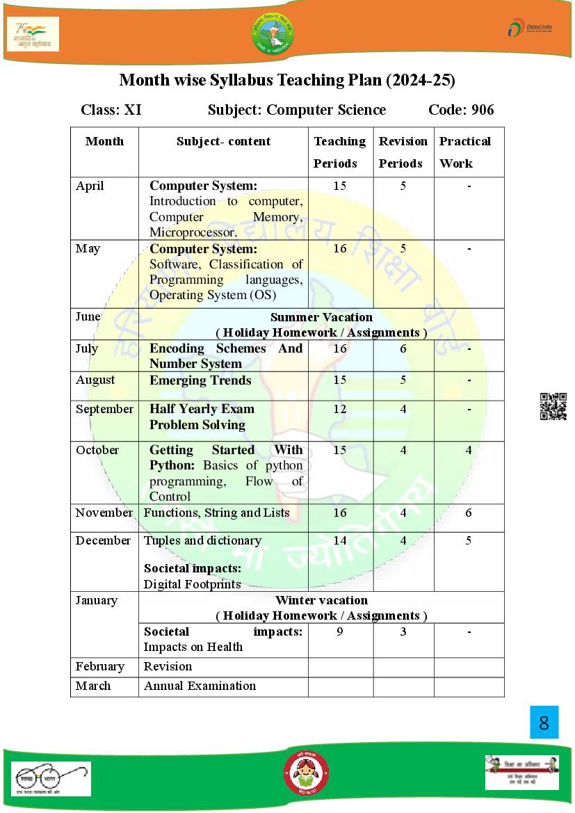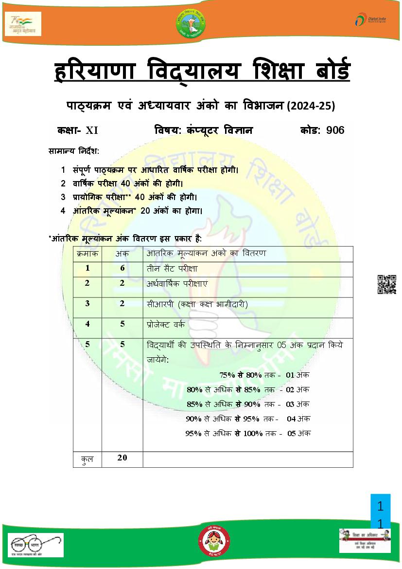 HBSE 11th Syllabus 2025 Computer Science PDF Download Link – Click Here to Download Syllabus PDF
