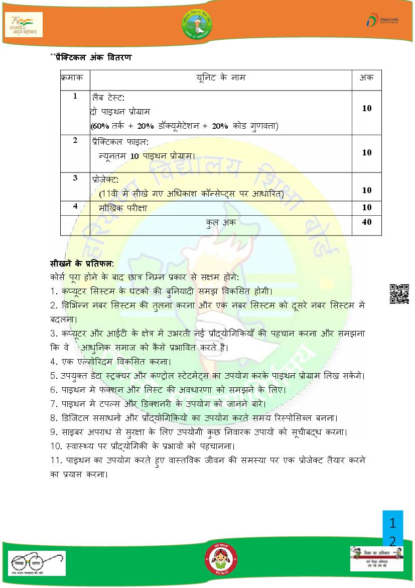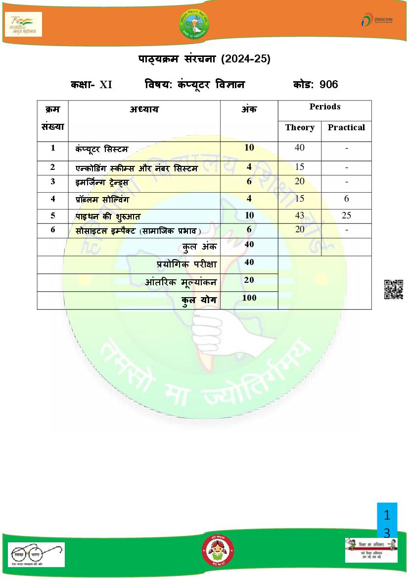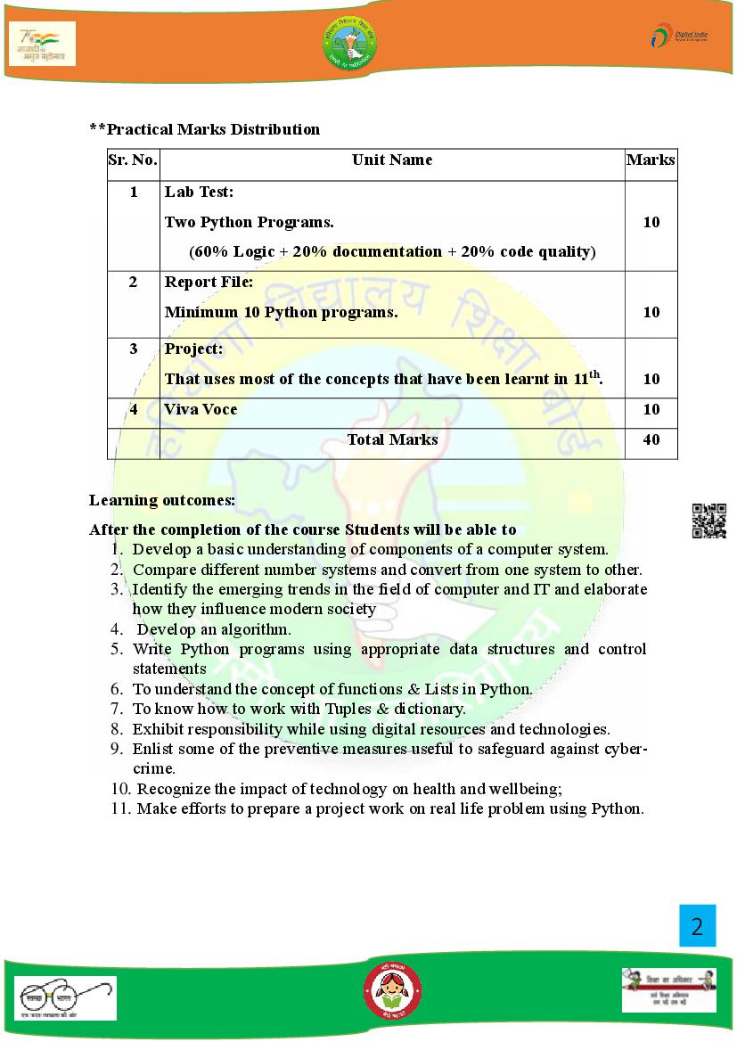 HBSE Class 11 Syllabus 2025 Computer Science View Download