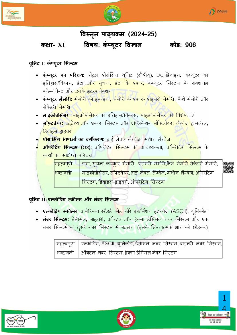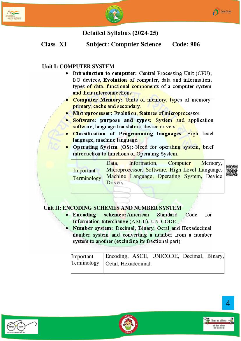 | Study Material Here | HBSE Syllabus for Class 11 Computer Science |