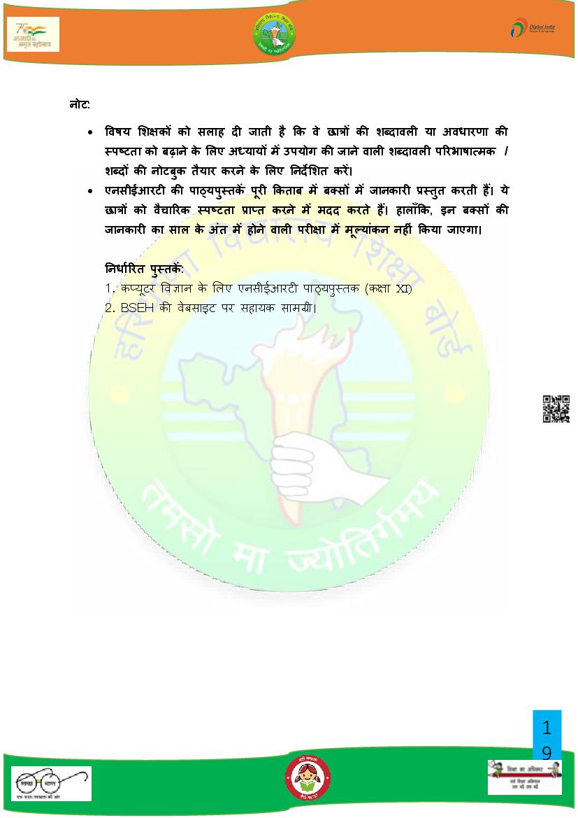 HBSE 11th Syllabus 2025 Computer Science PDF