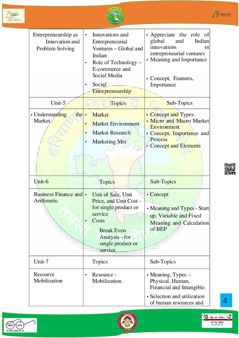 | Study Material Here | HBSE Syllabus for Class 11 Entrepreneurship |