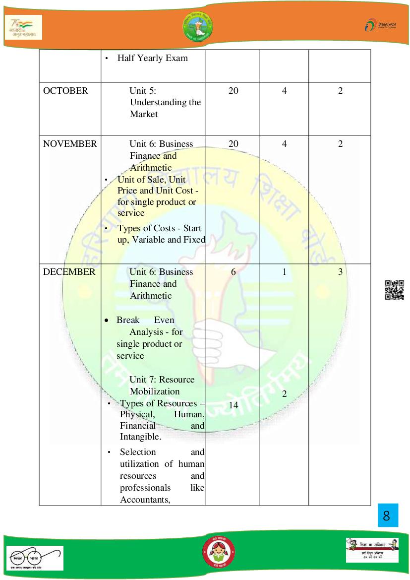 The complete class 11 Entrepreneurship curriculum along with blueprint is as follows.