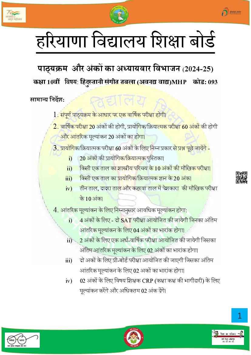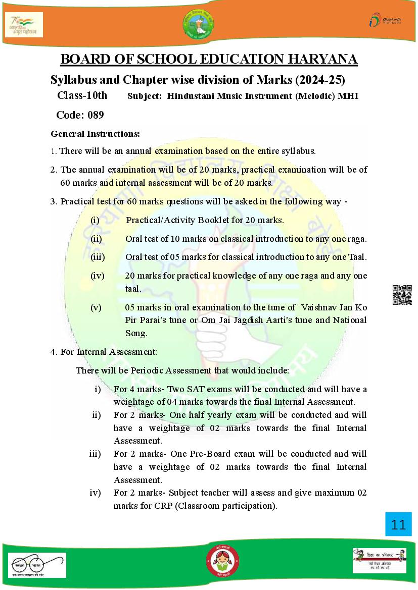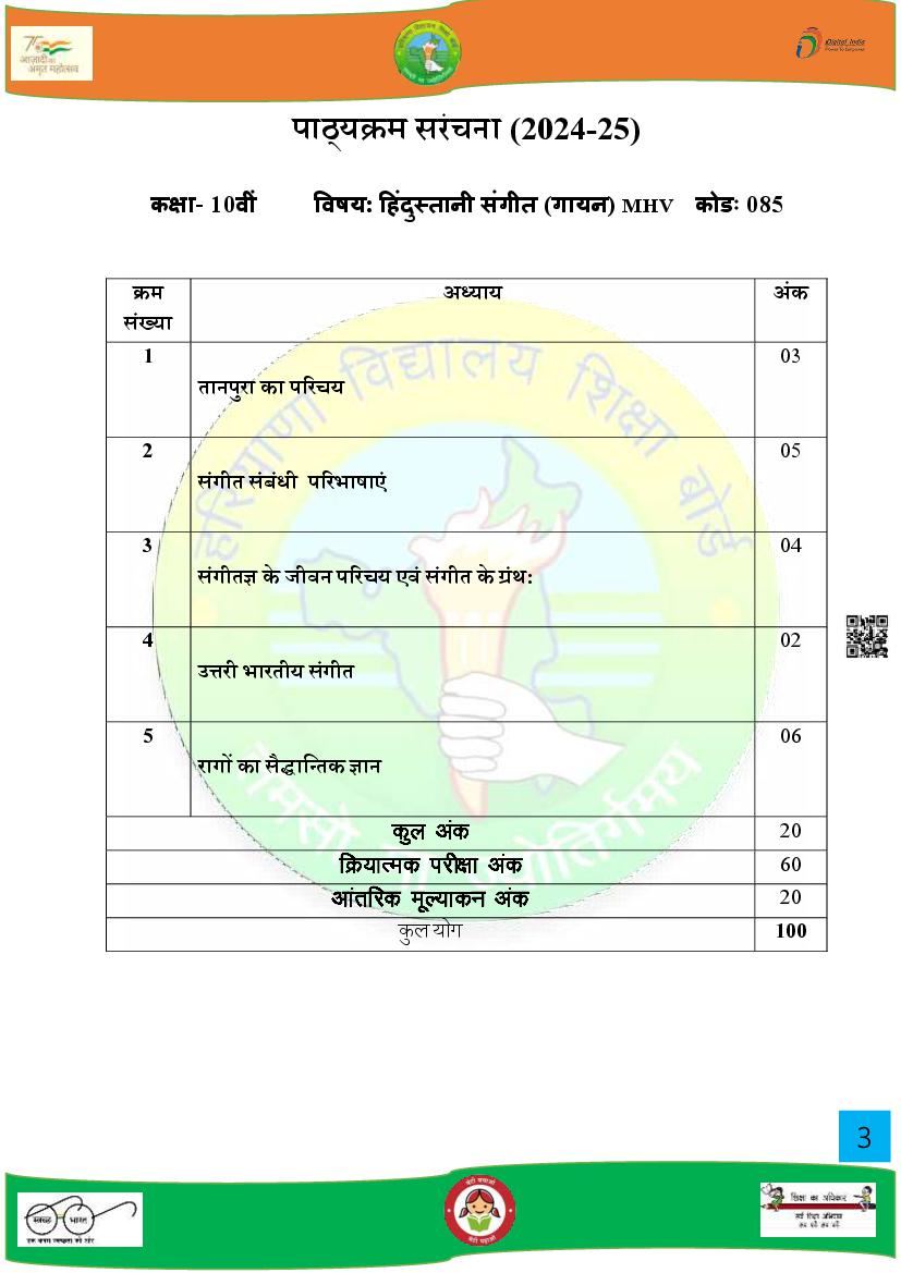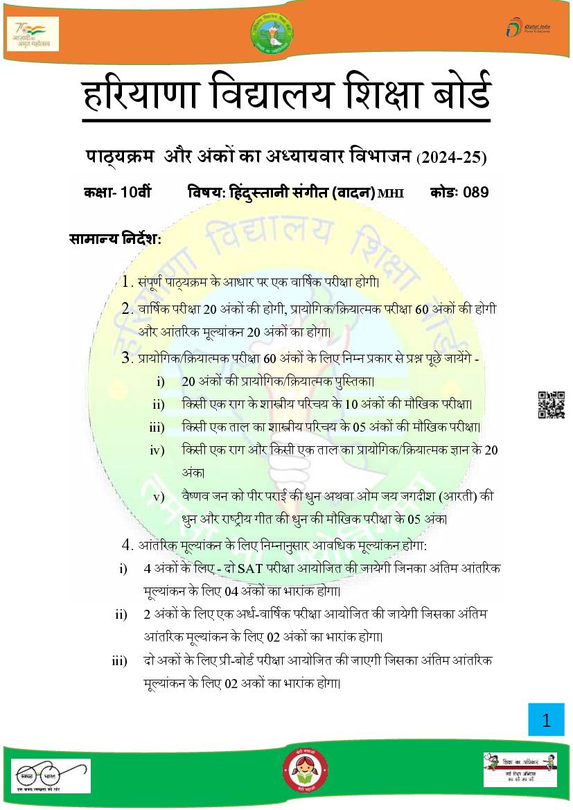 HBSE Class 10 Syllabus 2025 Music View Download
