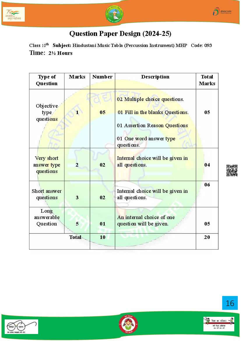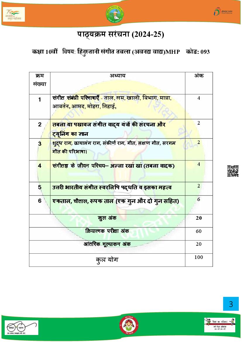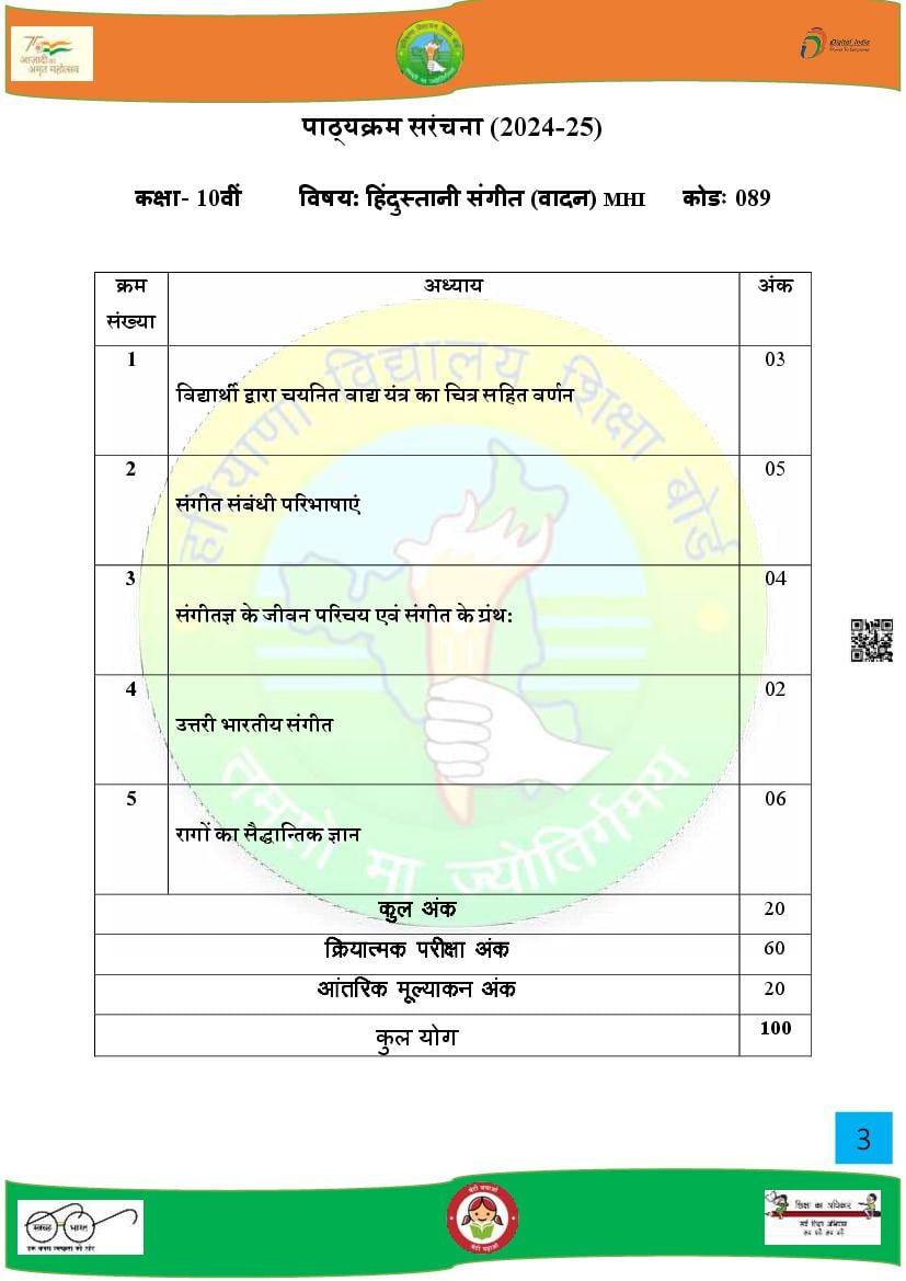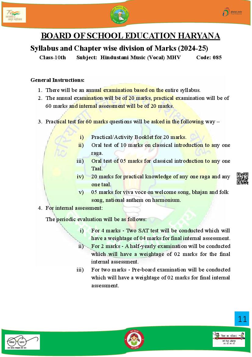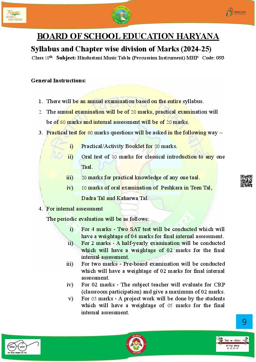 HBSE Class 10 Syllabus 2025 Music View Download