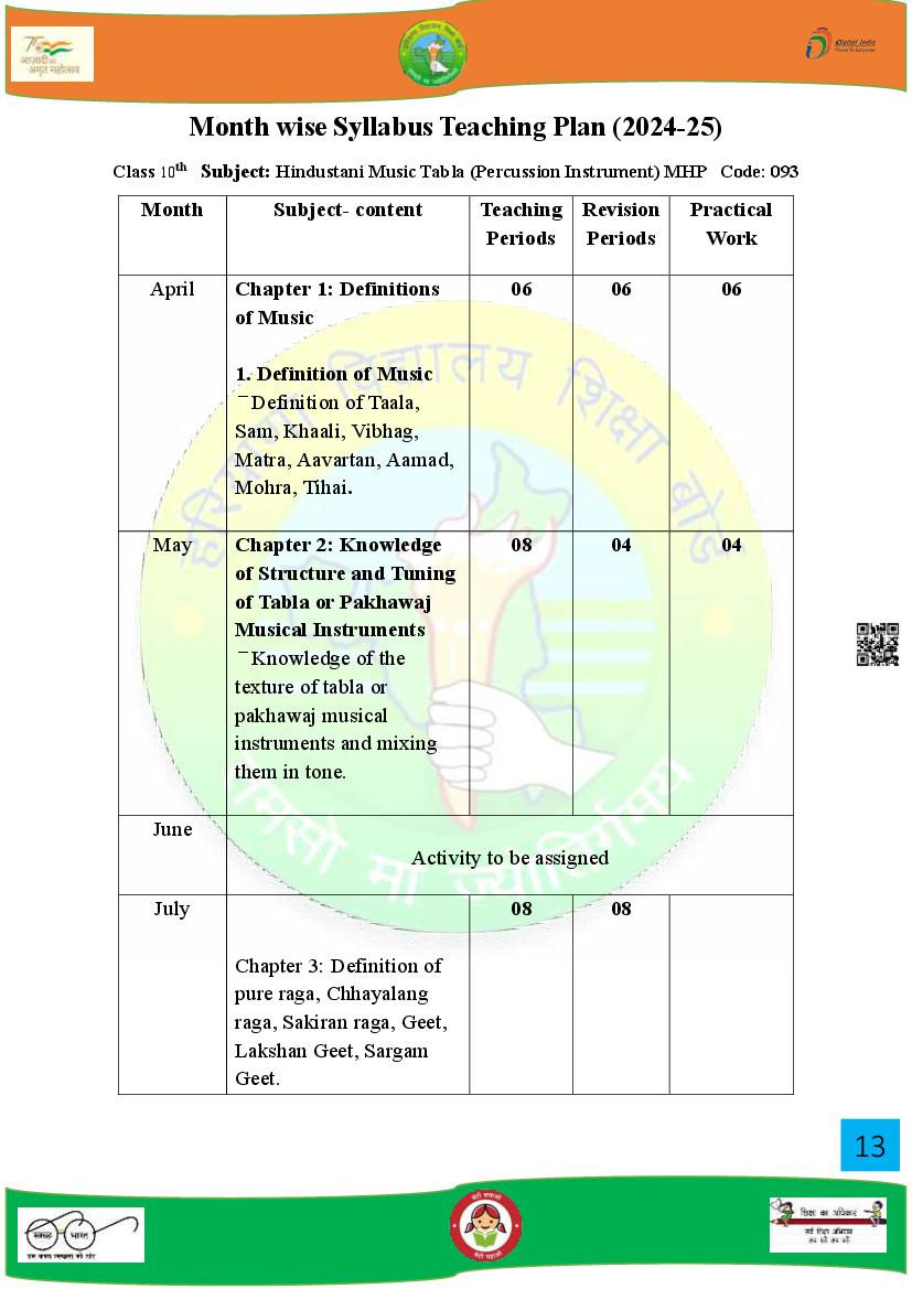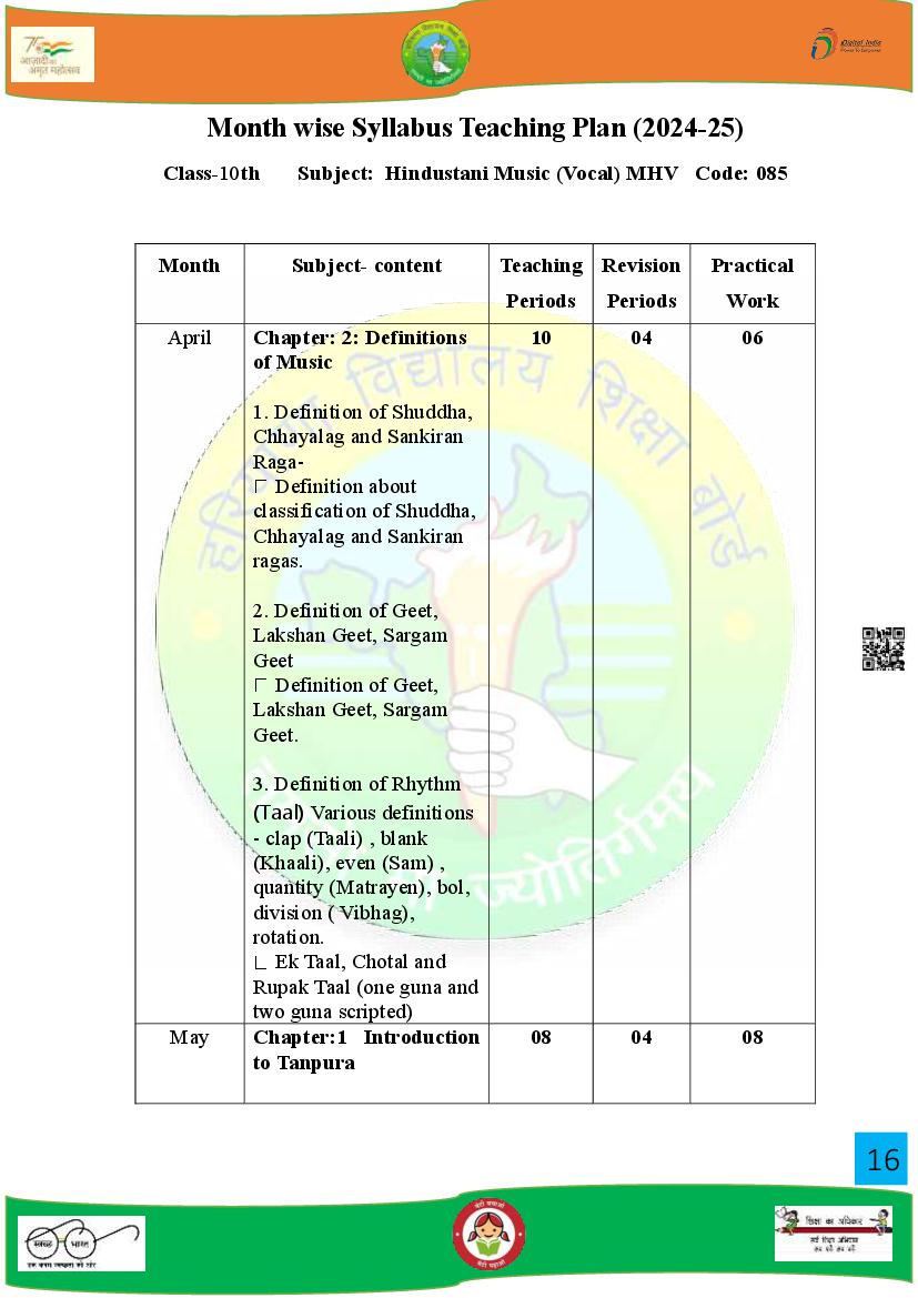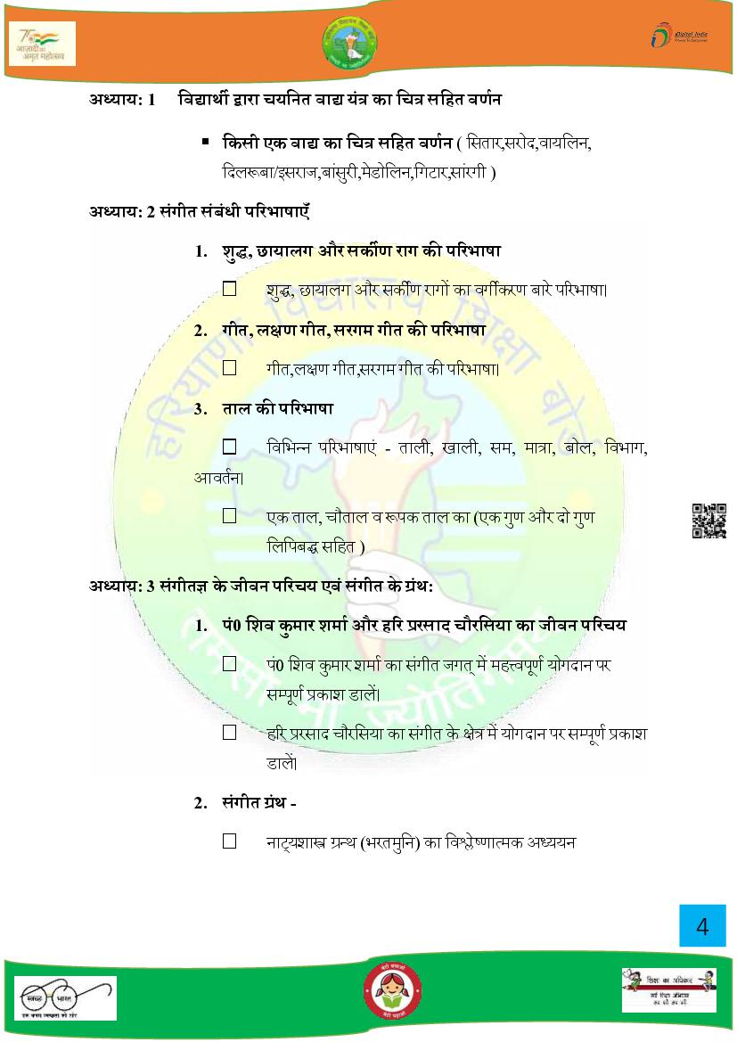 | Study Material Here | HBSE Syllabus for Class 10 Music |
