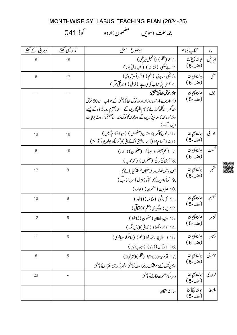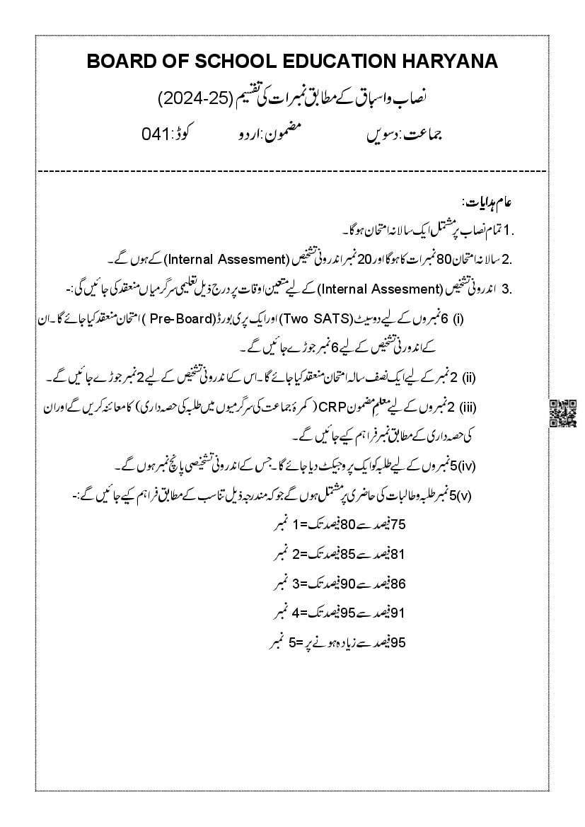 HBSE Class 10 Syllabus 2025 Urdu View Download