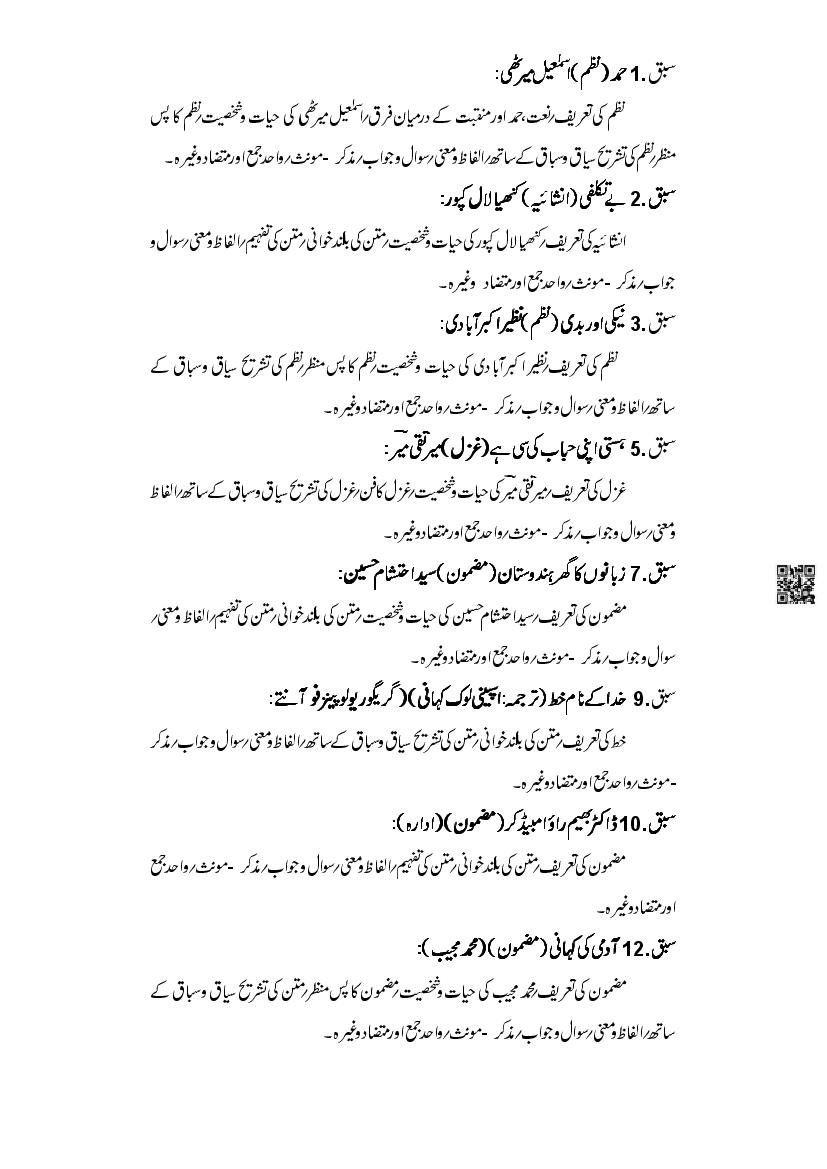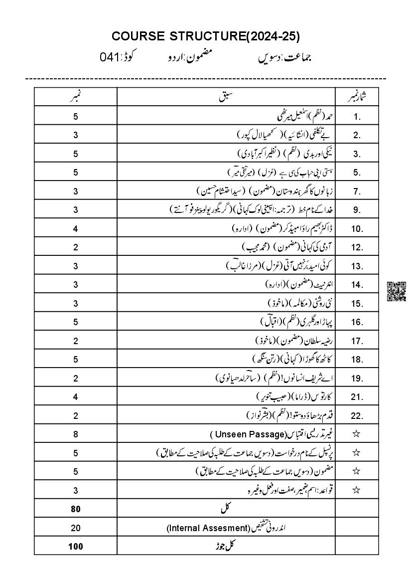 The complete class 10 Urdu curriculum along with blueprint is as follows.