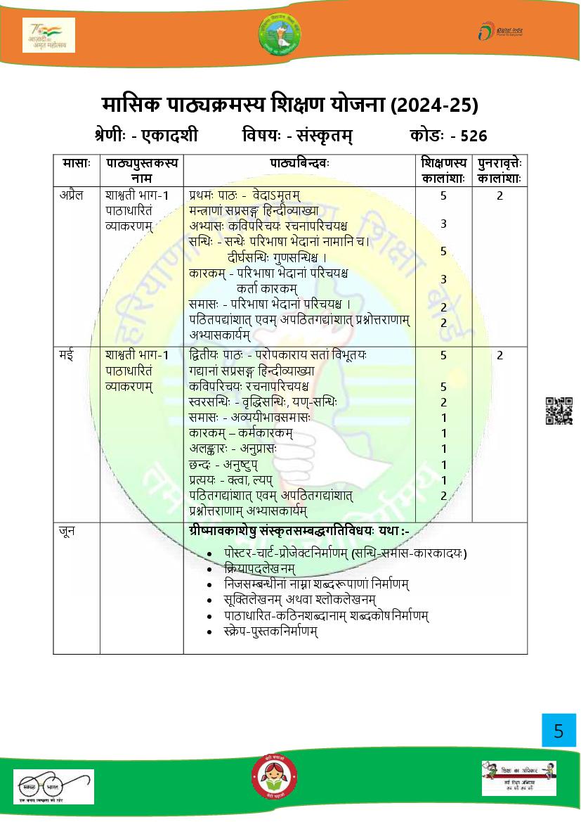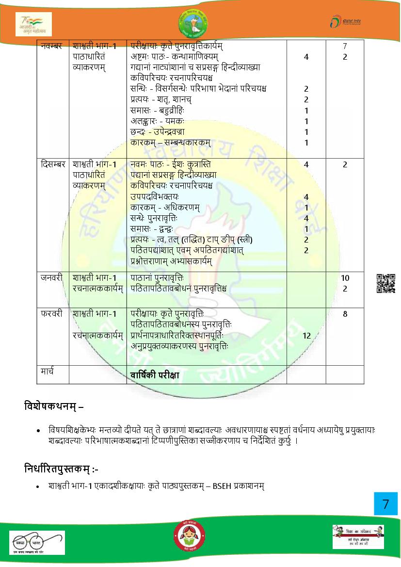 HBSE 11th Syllabus 2025 Sanskrit PDF Download Link – Click Here to Download Syllabus PDF