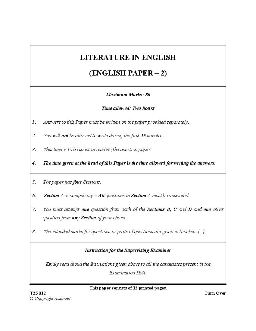 The complete English Literature question paper of last year is as follows. However you may find more ICSE question paper pdf download link below.