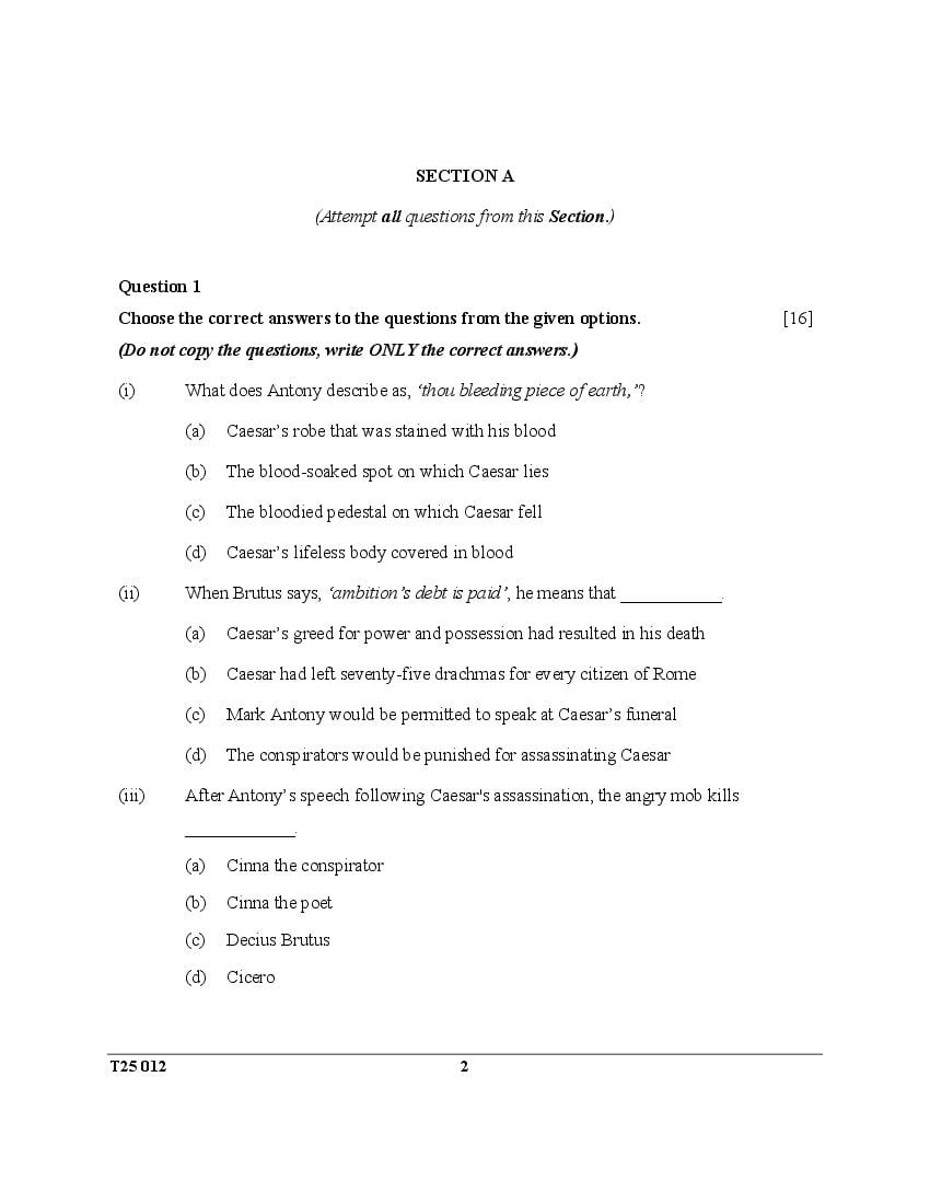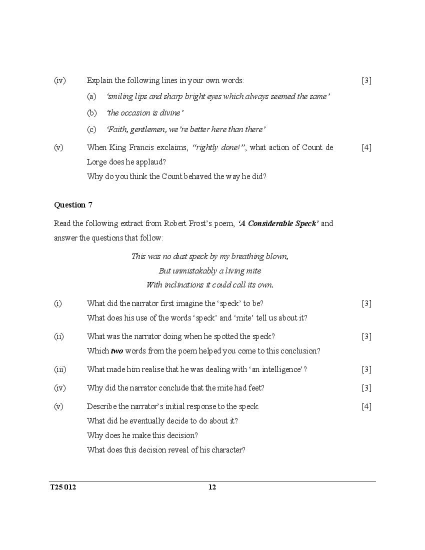The CISCE previous year question paper of ICSE Class 10 for English Literature are as follows.
