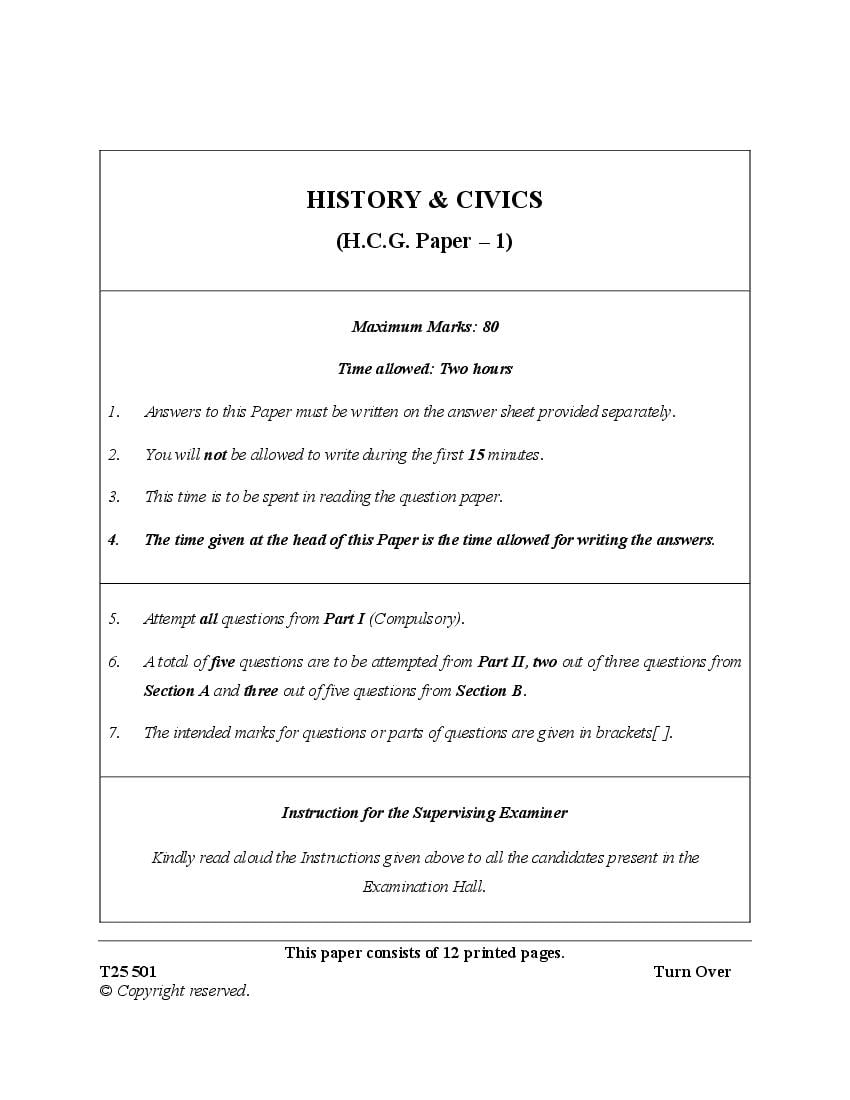 The complete History & Civics question paper of last year is as follows. However you may find more ICSE question paper pdf download link below.