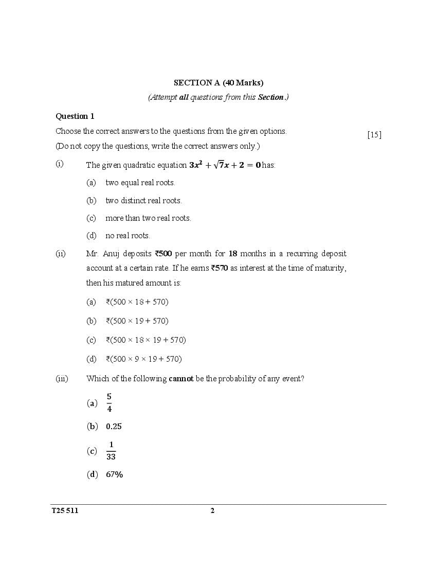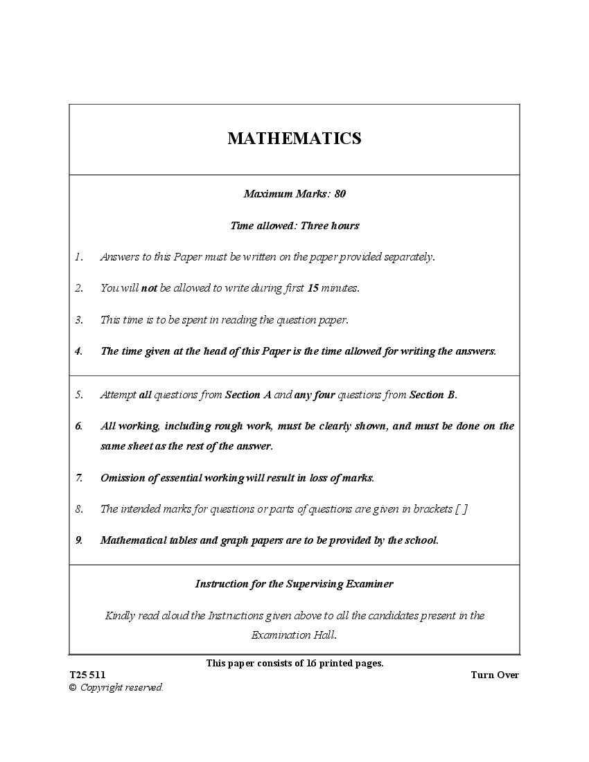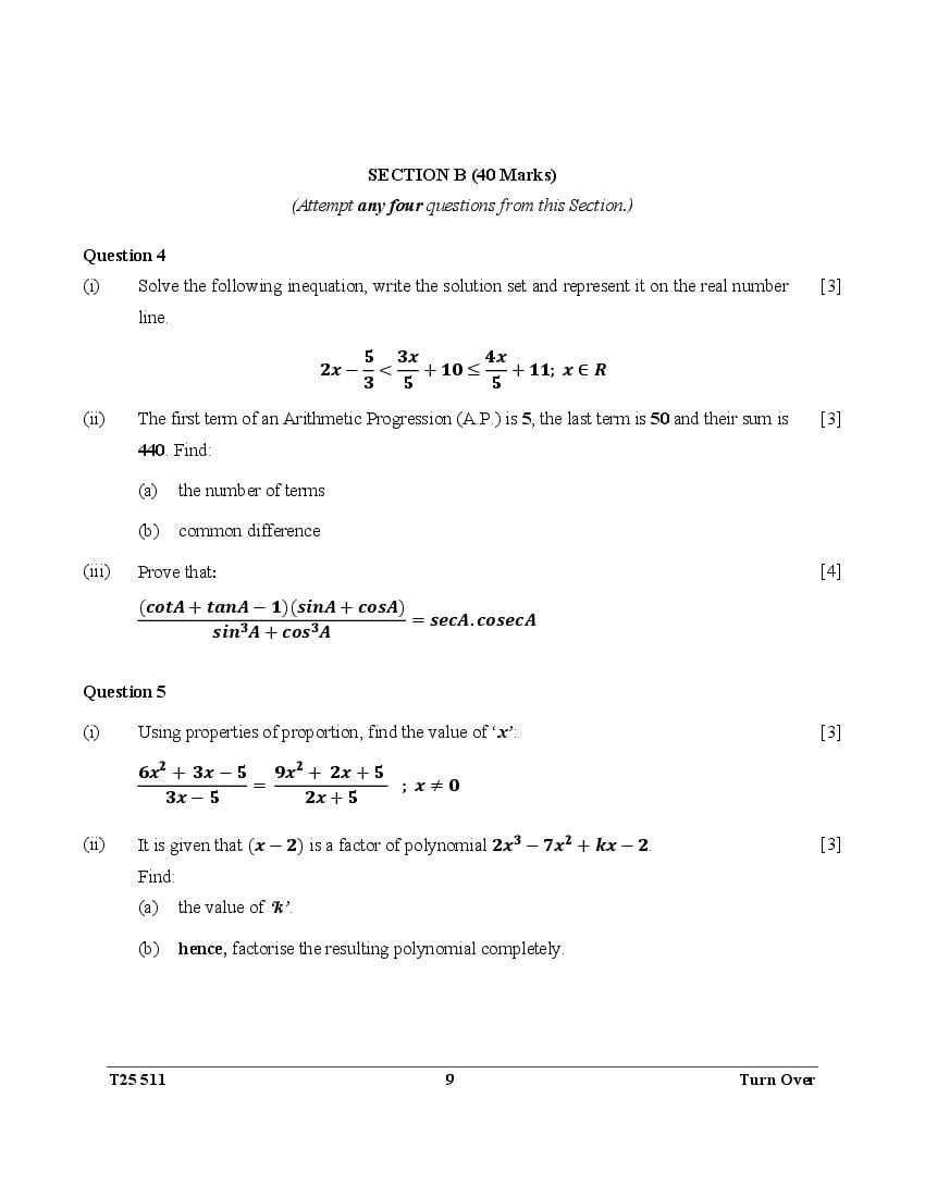 ICSE Class 10 Question Paper 2025 Maths View Download