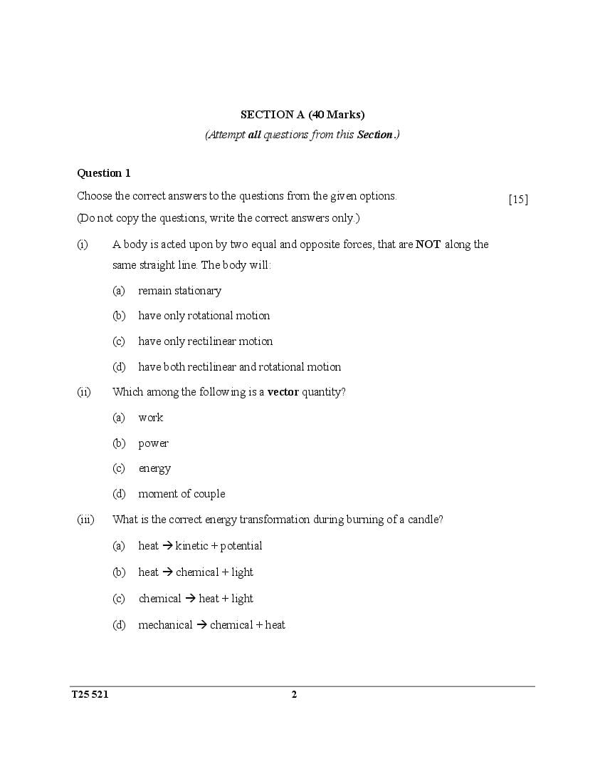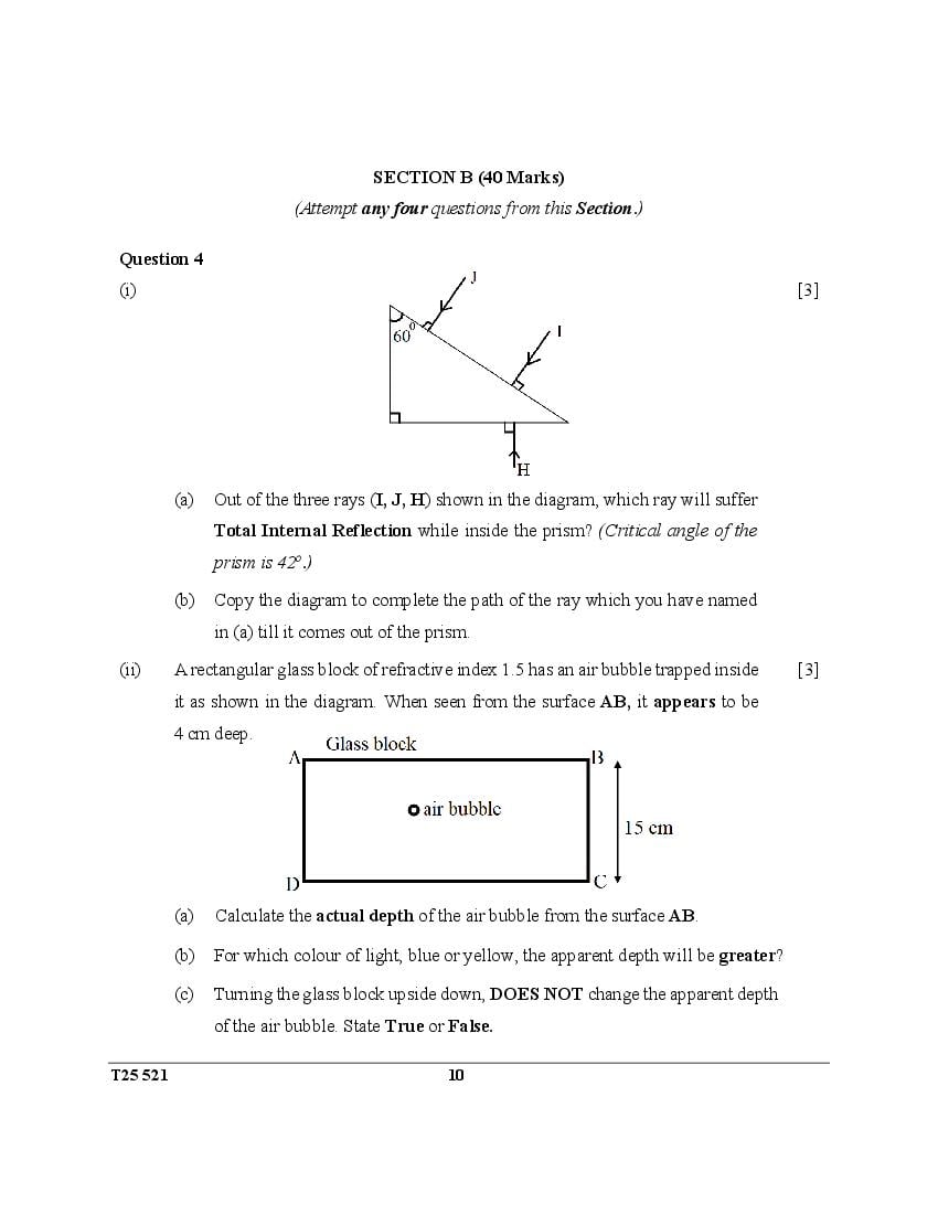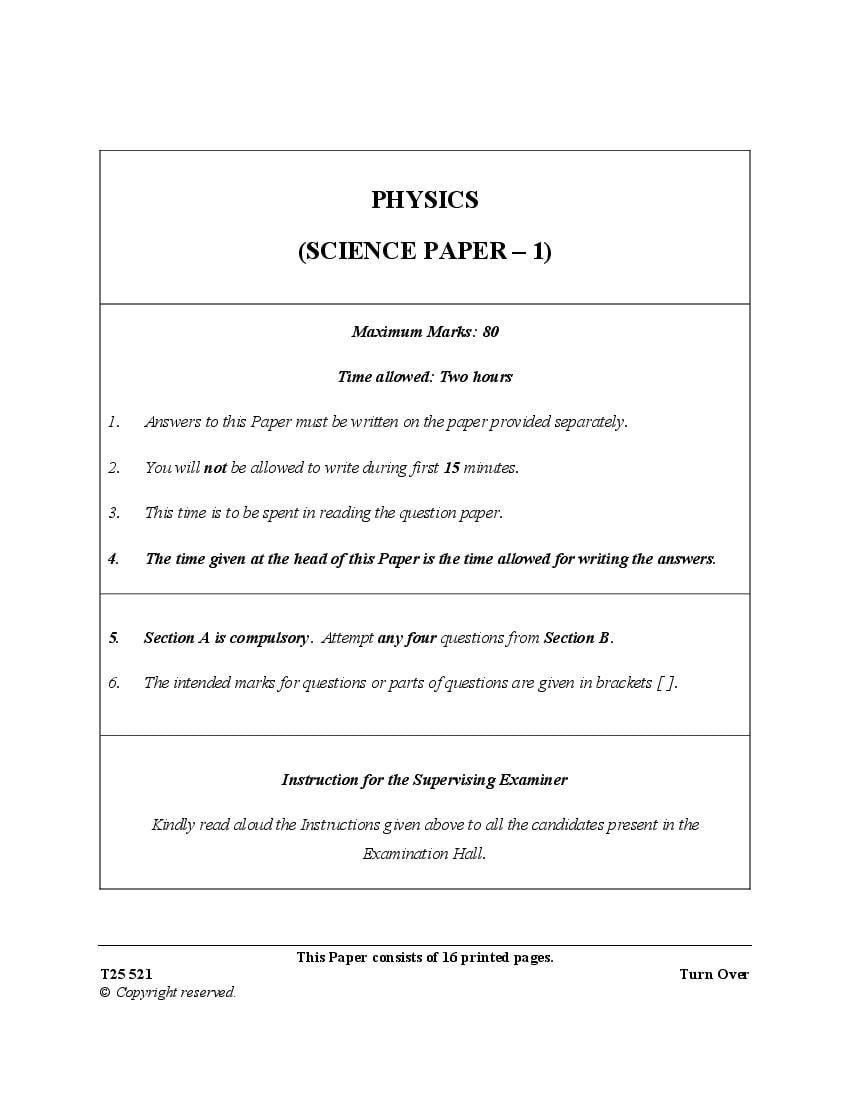 ICSE Class 10 Question Paper 2025 Physics View Download