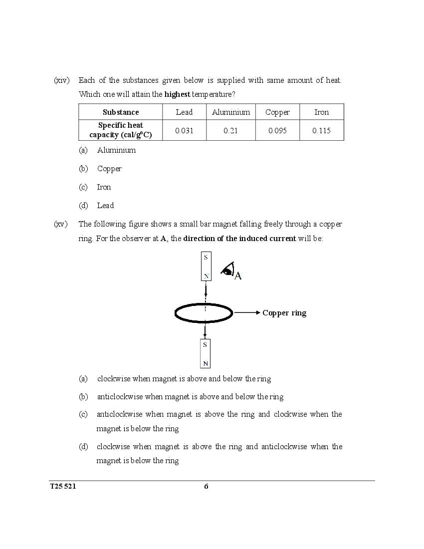 The CISCE previous year question paper of ICSE Class 10 for Physics are as follows.