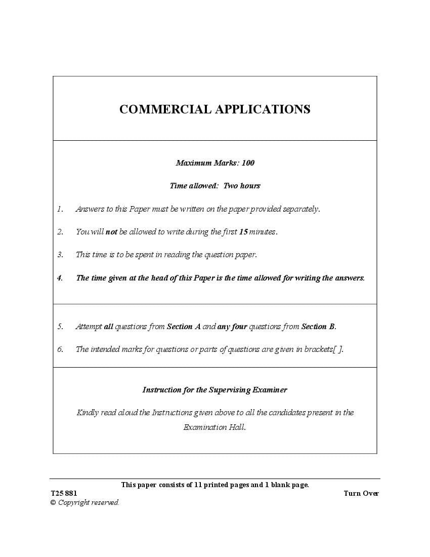 The CISCE previous year question paper of ICSE Class 10 for Commercial Applications are as follows.