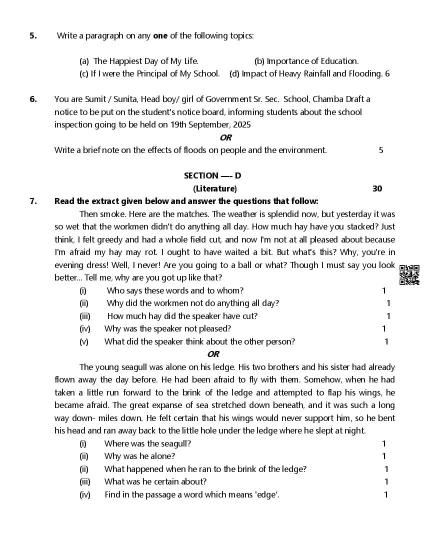 The latest available portable document format of the HPBOSE 10th Class Sample Test Paper of English is as follows.