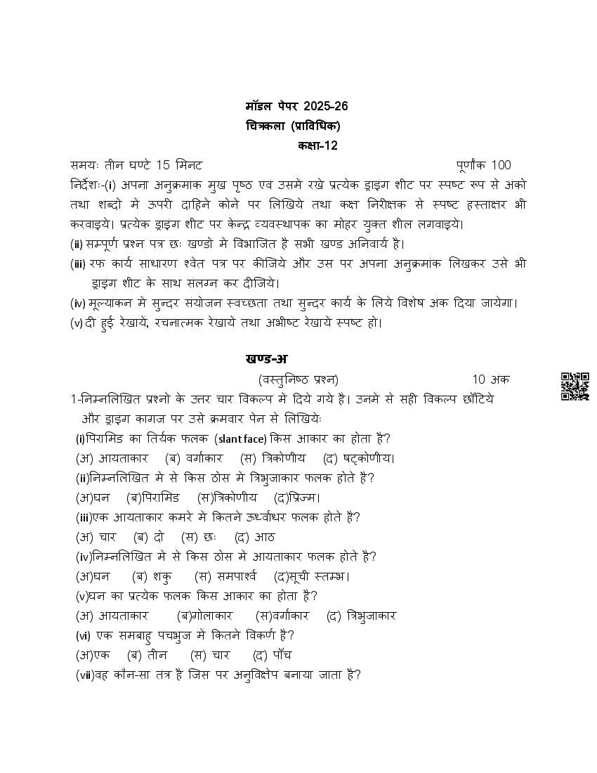 UP Board Class 12th Model Paper 2026 Chittrakala Pravidhik (Technical) View Download