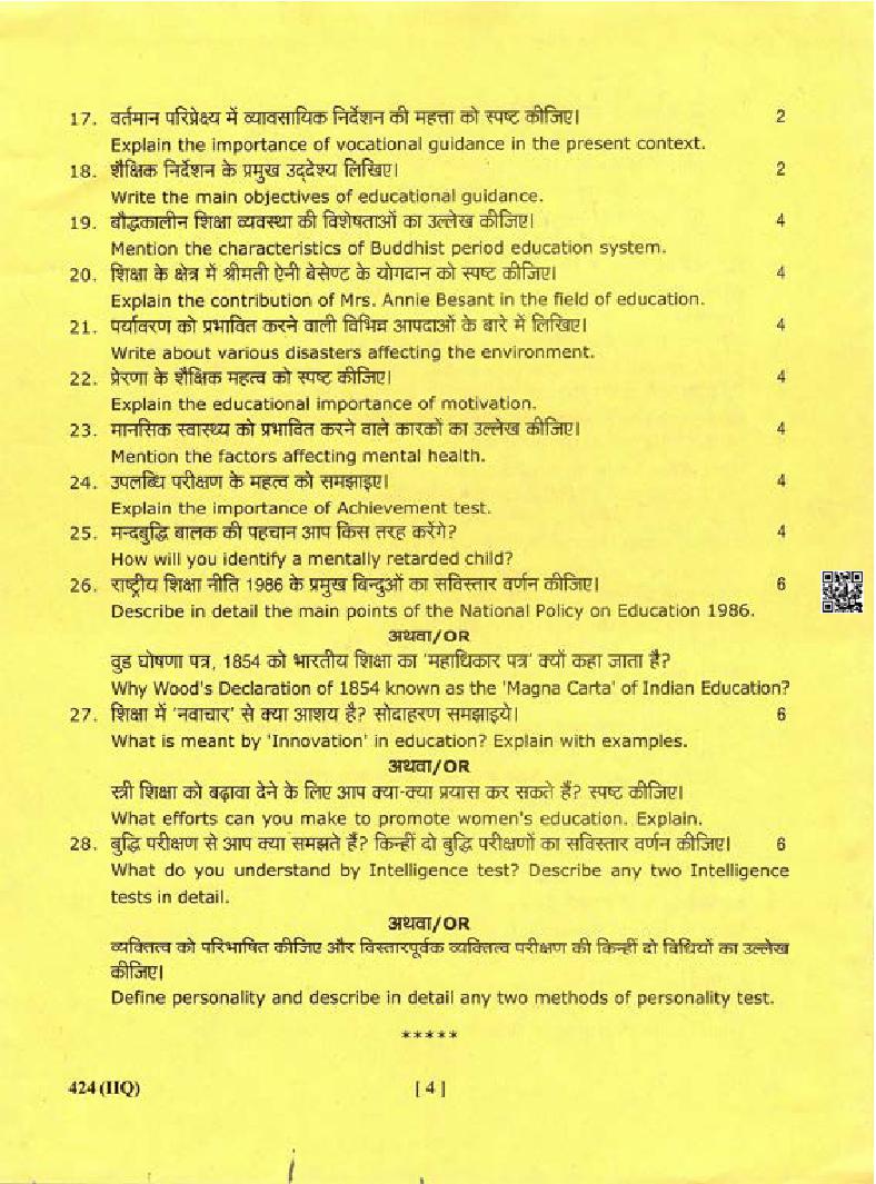 The Uttarakhand Board question paper of class 12 for Education is as follows.