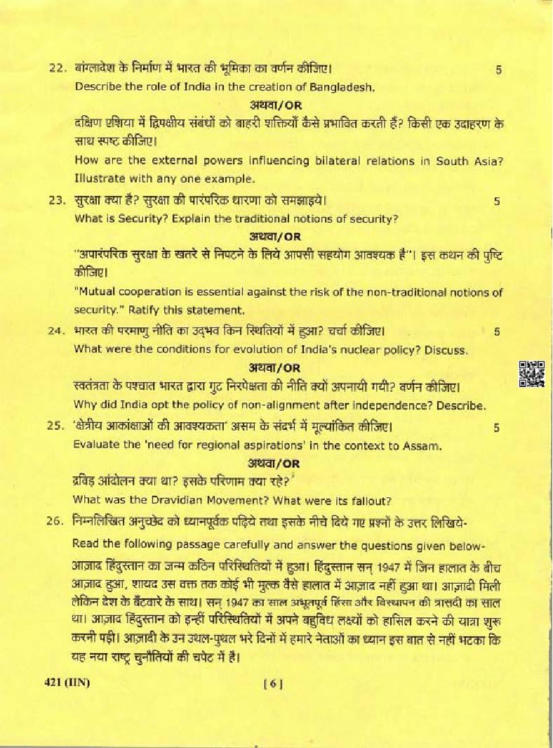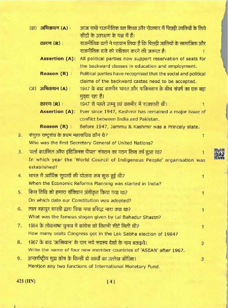 The complete class 12 Political Science question paper is as follows.