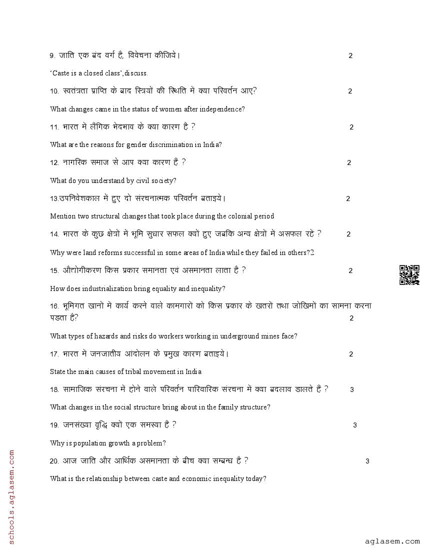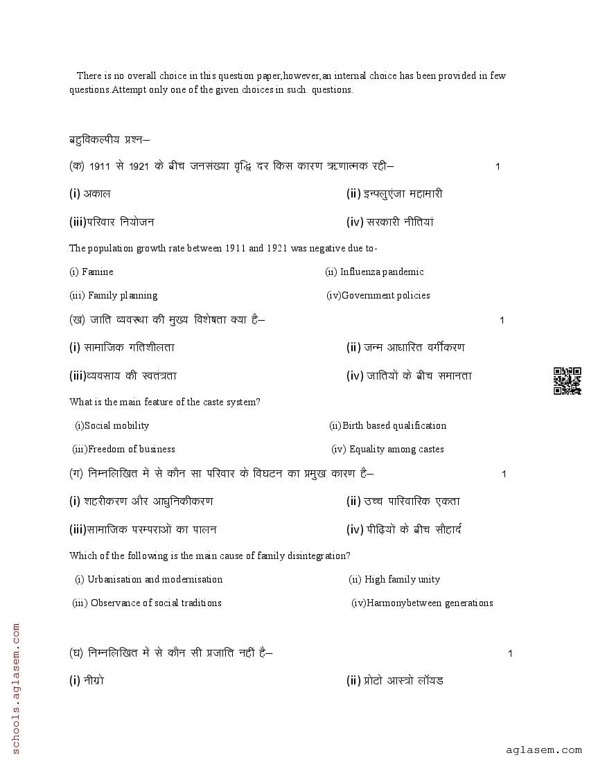 The UK Board Class 12 Sample Paper for Sociology is as follows. Uttarakhand Board of School Education (UBSE) has published this with other UK board sample papers.