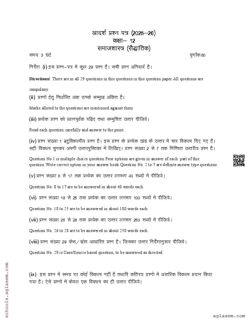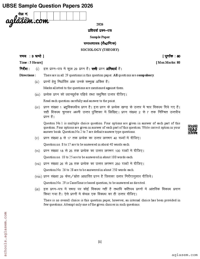 Uttarakhand Board Class 12th Sociology Sample Paper 2026 has been released by UBSE. Therefore you can now download the UK Board 12th Model Paper for Sociology PDF from here on aglasem. This UK Board class 12 model paper contains sample questions for Sociology based on the latest syllabus. Moreover the class 12 sample paper has Sociology questions in the same pattern as you will get in UK Board 12th Sociology exam that will be held by Uttarakhand Board of School Education. Therefore solving this Sociology model question paper increases your chances of getting 100% in UK Board exam.