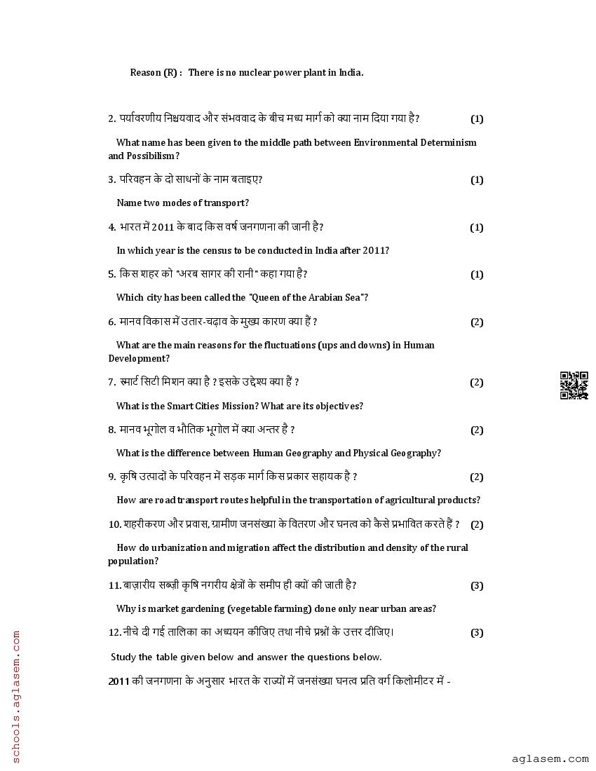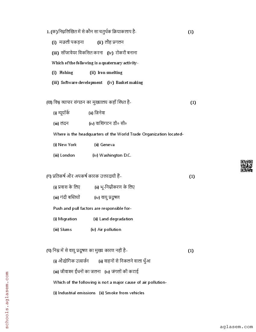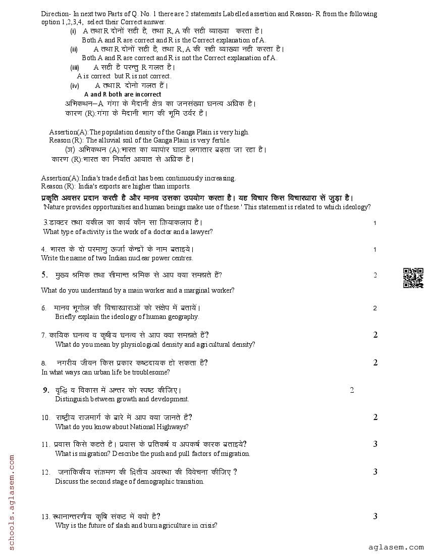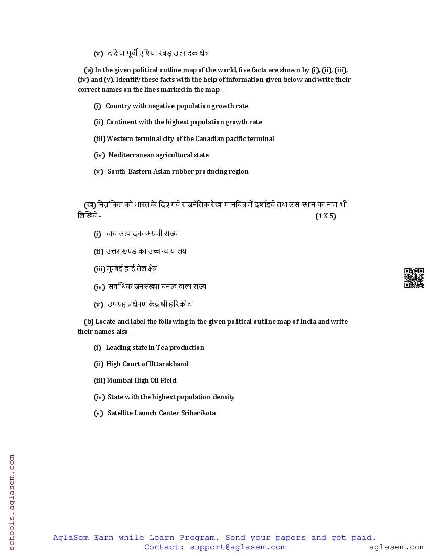 The UK Board Class 12 Sample Paper for Geography is as follows. Uttarakhand Board of School Education (UBSE) has published this with other UK board sample papers.