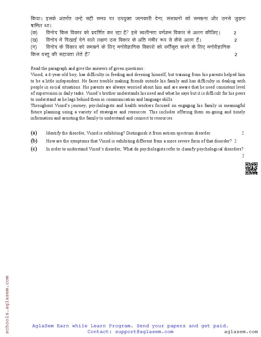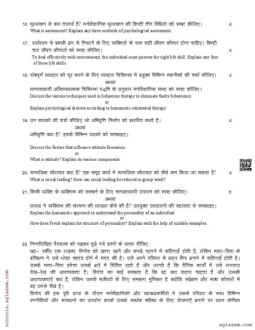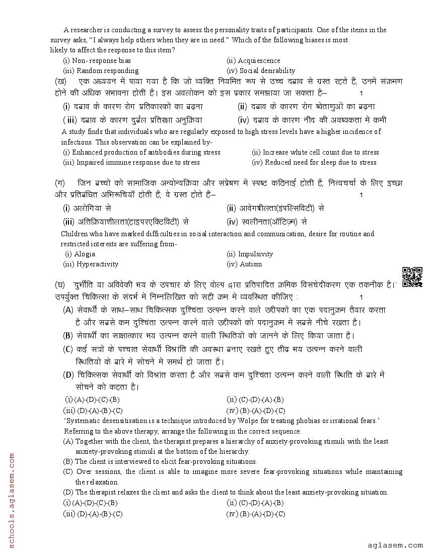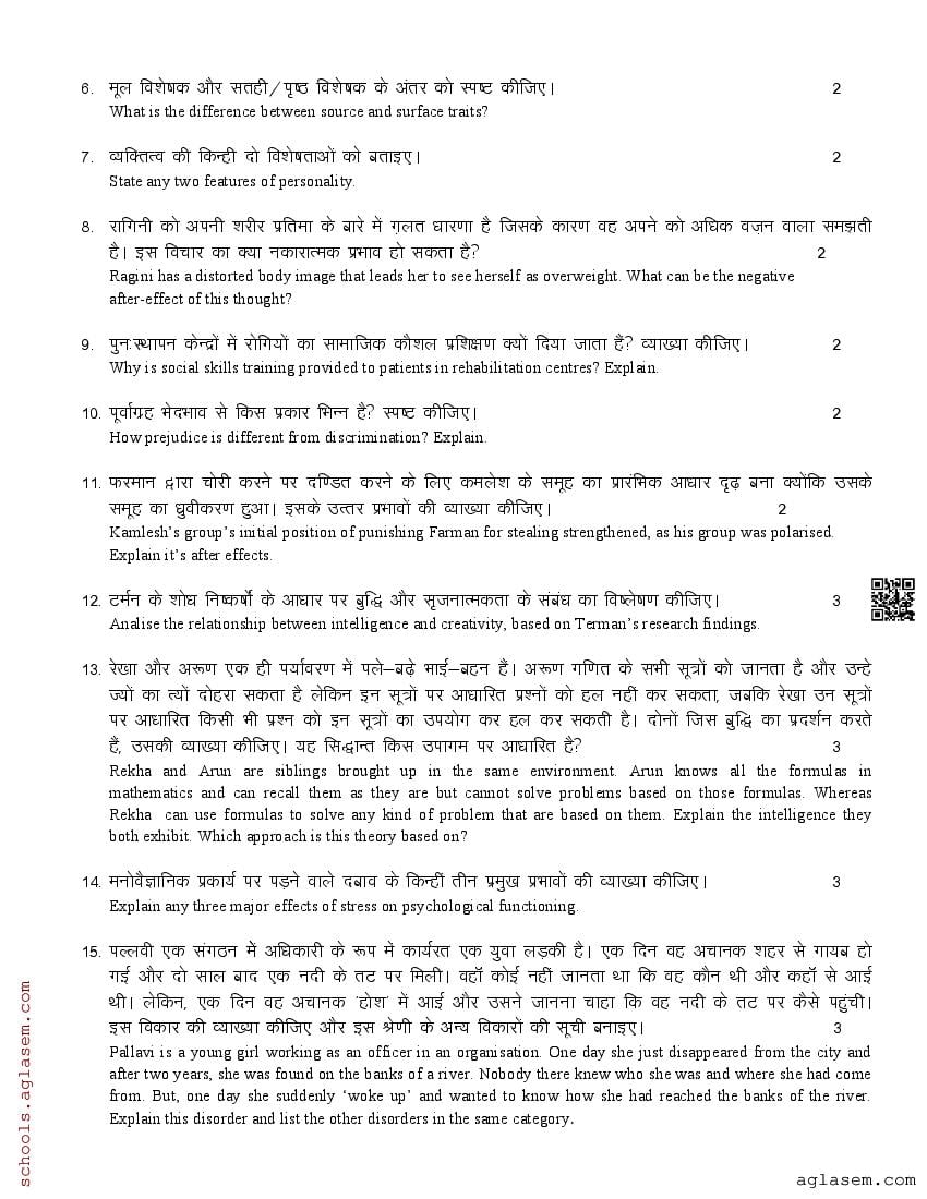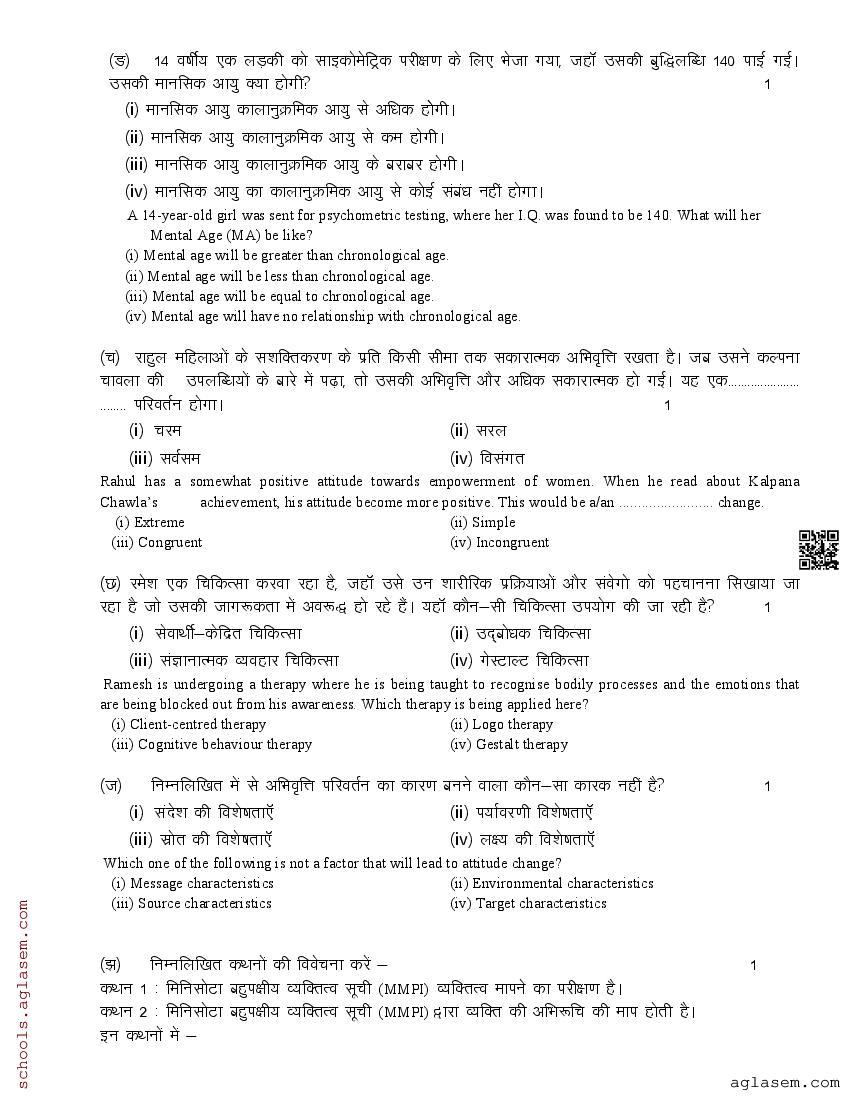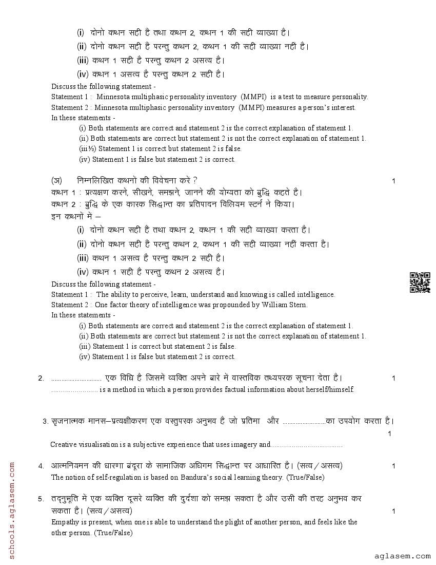 The UK Board Class 12 Sample Paper for Psychology is as follows. Uttarakhand Board of School Education (UBSE) has published this with other UK board sample papers.