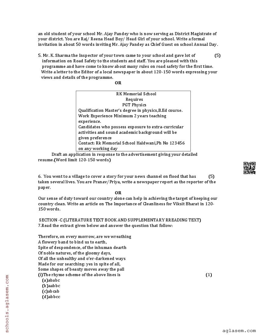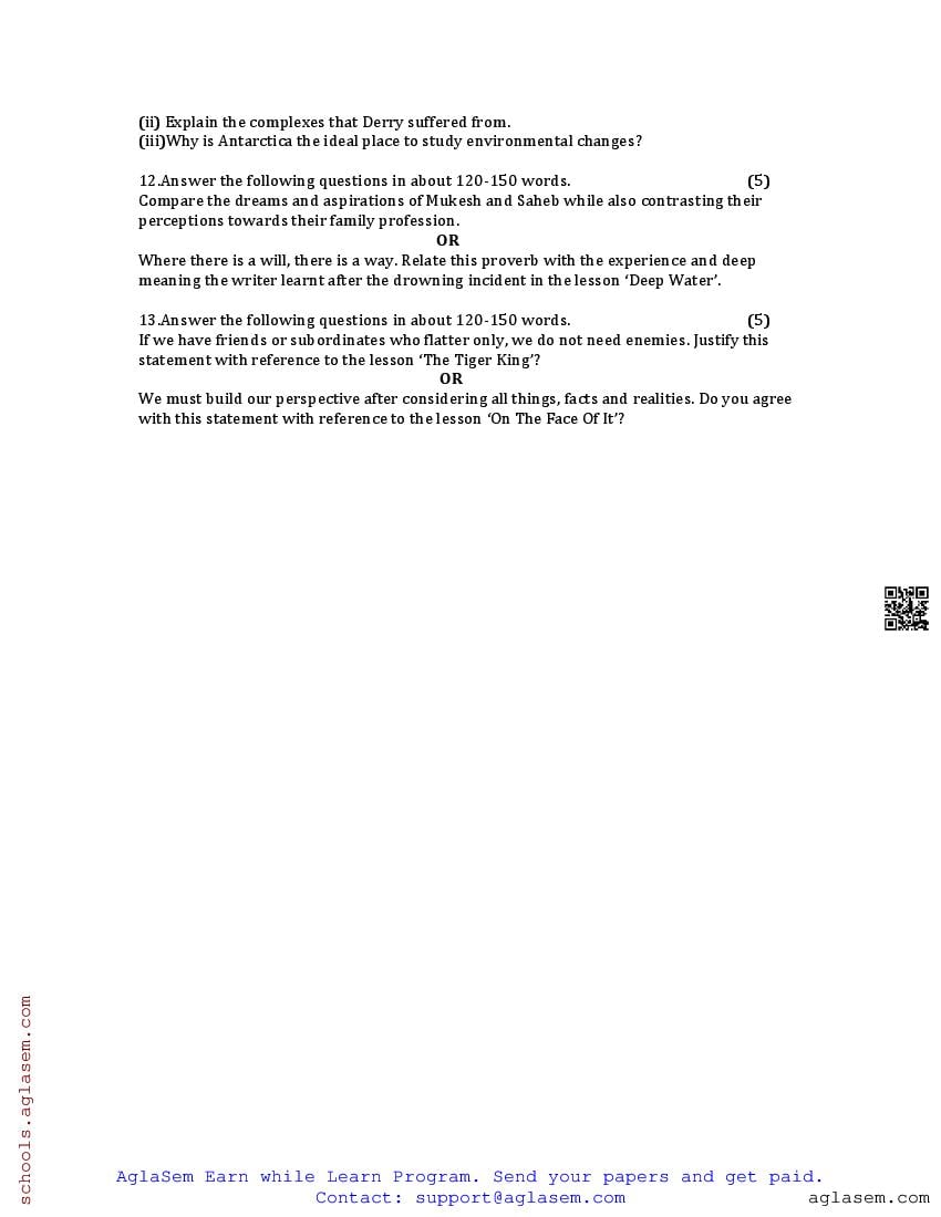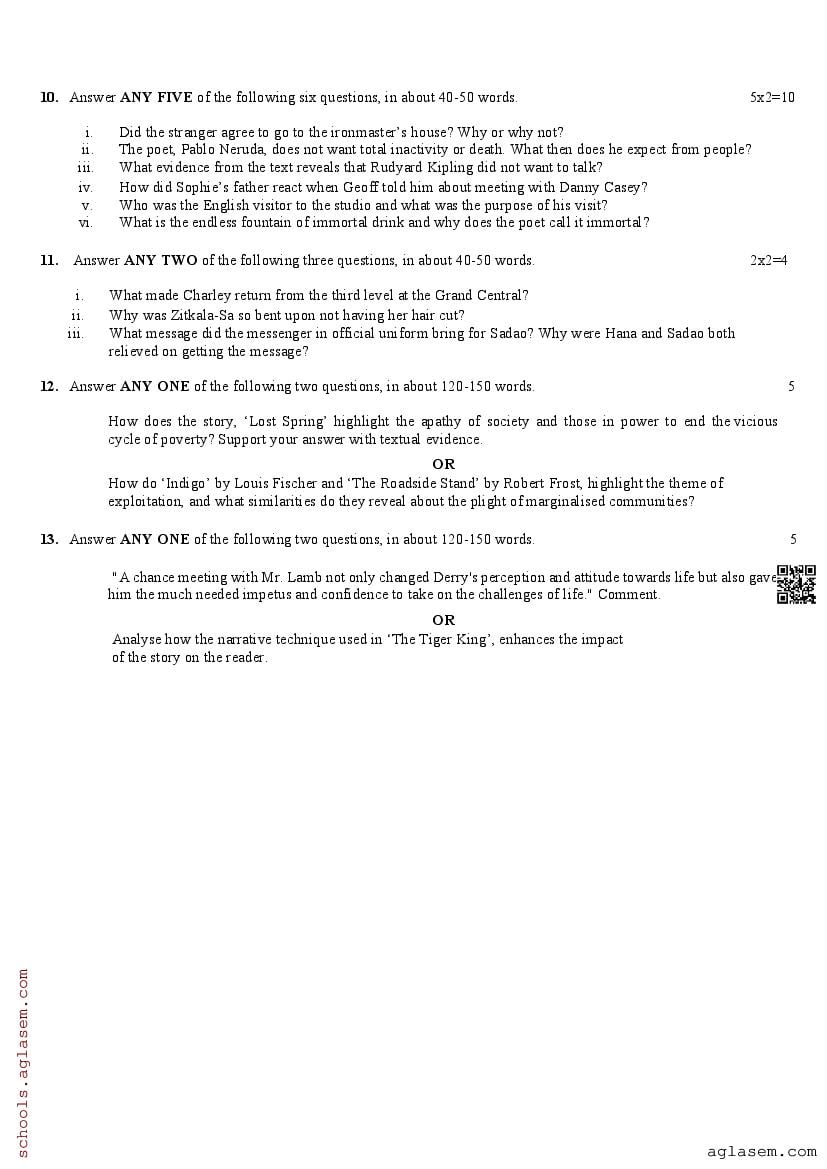 The UK Board Class 12 Sample Paper for English is as follows. Uttarakhand Board of School Education (UBSE) has published this with other UK board sample papers.