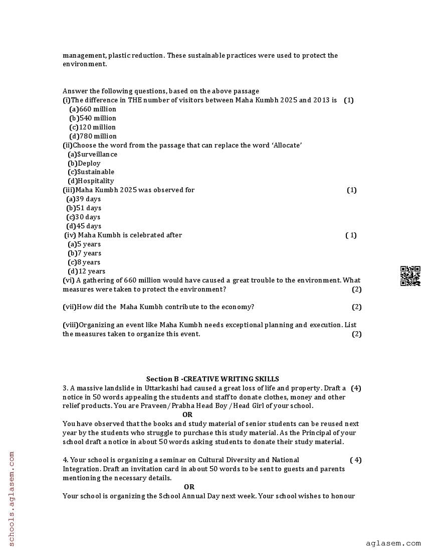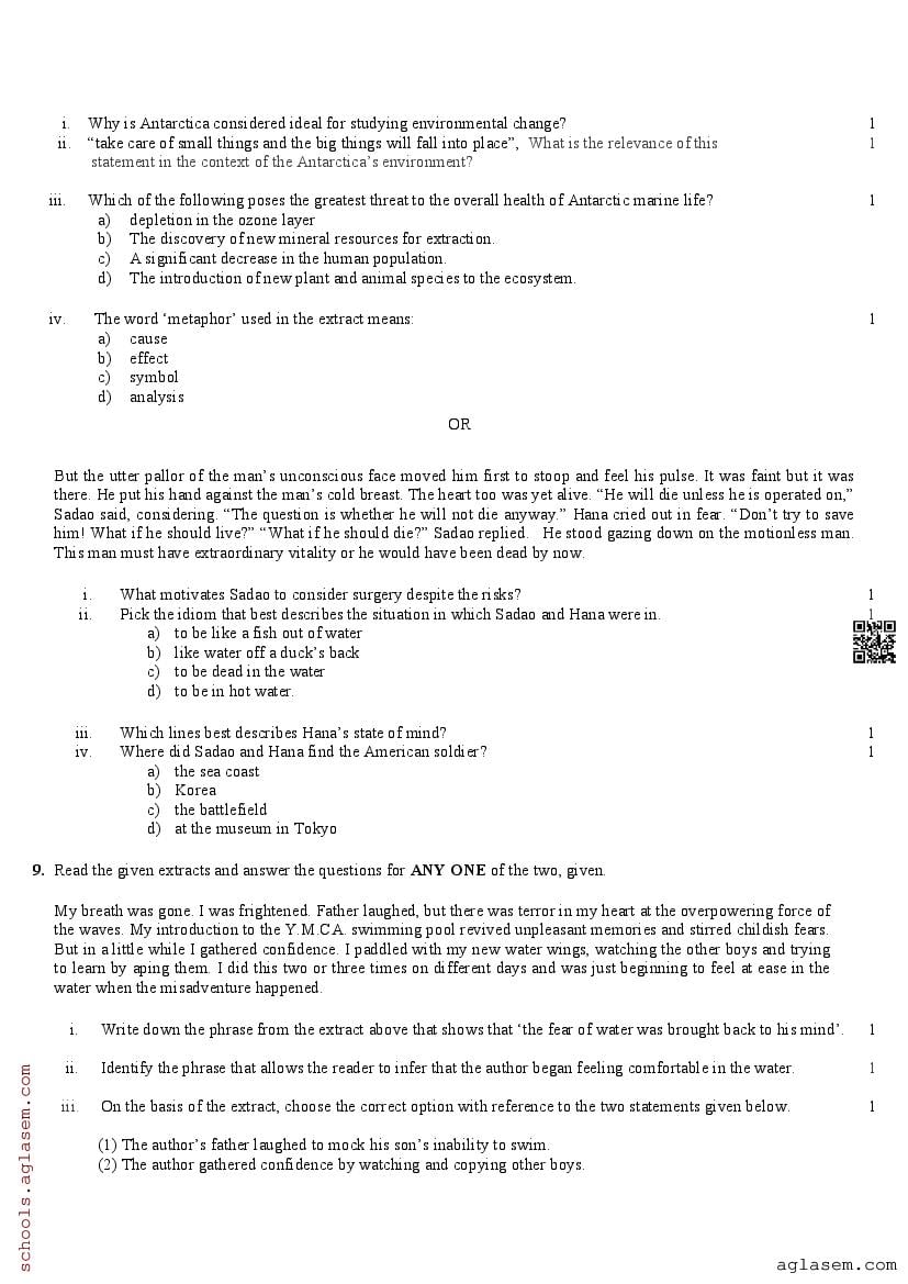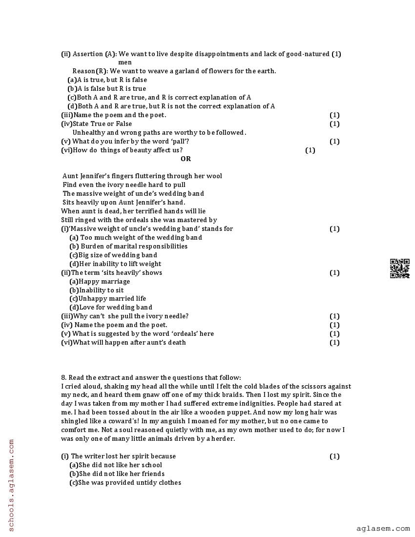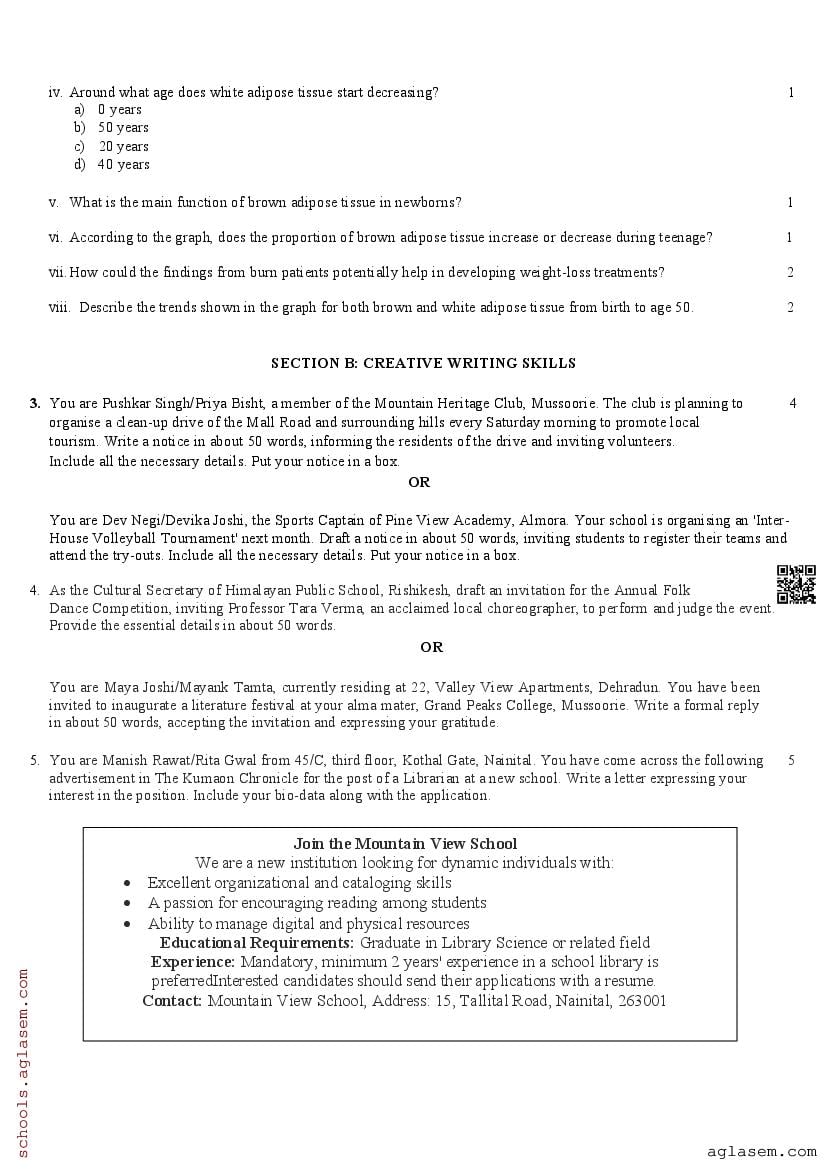 The UK Board Class 12 Sample Paper for English is as follows. Uttarakhand Board of School Education (UBSE) has published this with other UK board sample papers.