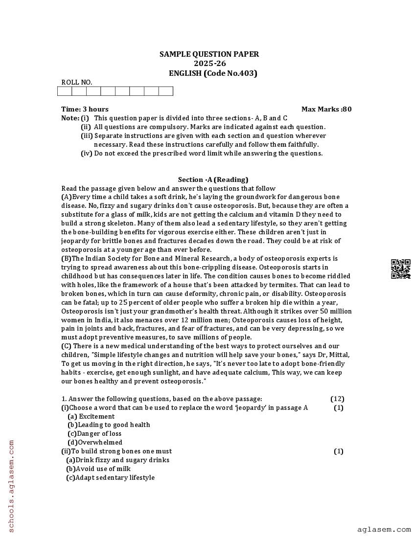 Uttarakhand Board Class 12th English Sample Paper 2026 has been released by UBSE. Therefore you can now download the UK Board 12th Model Paper for English PDF from here on aglasem. This UK Board class 12 model paper contains sample questions for English based on the latest syllabus. Moreover the class 12 sample paper has English questions in the same pattern as you will get in UK Board 12th English exam that will be held by Uttarakhand Board of School Education. Therefore solving this English model question paper increases your chances of getting 100% in UK Board exam.