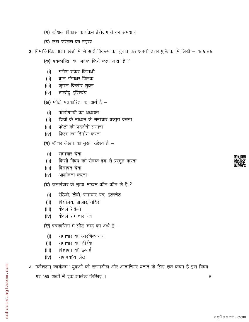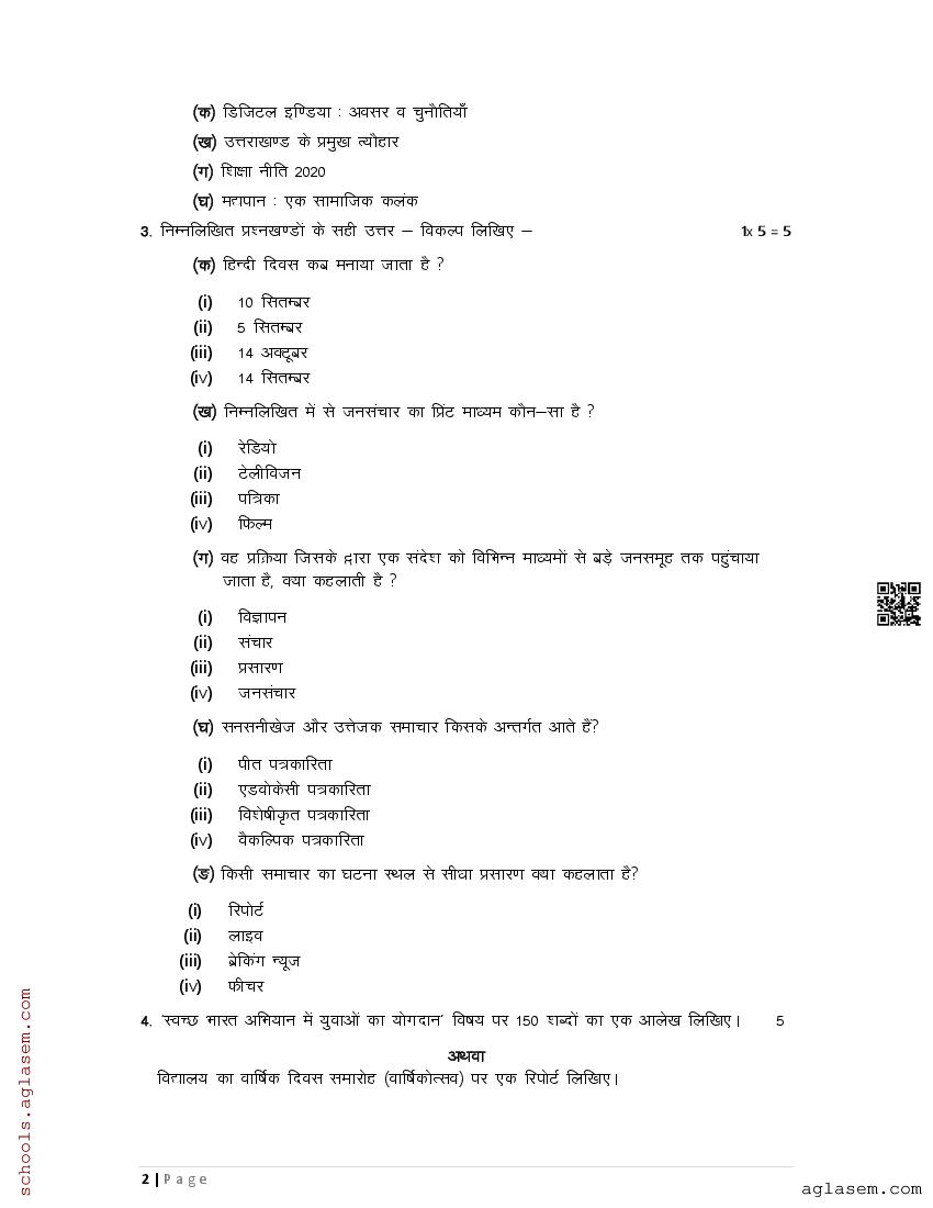 The UK Board Class 12 Sample Paper for Hindi is as follows. Uttarakhand Board of School Education (UBSE) has published this with other UK board sample papers.
