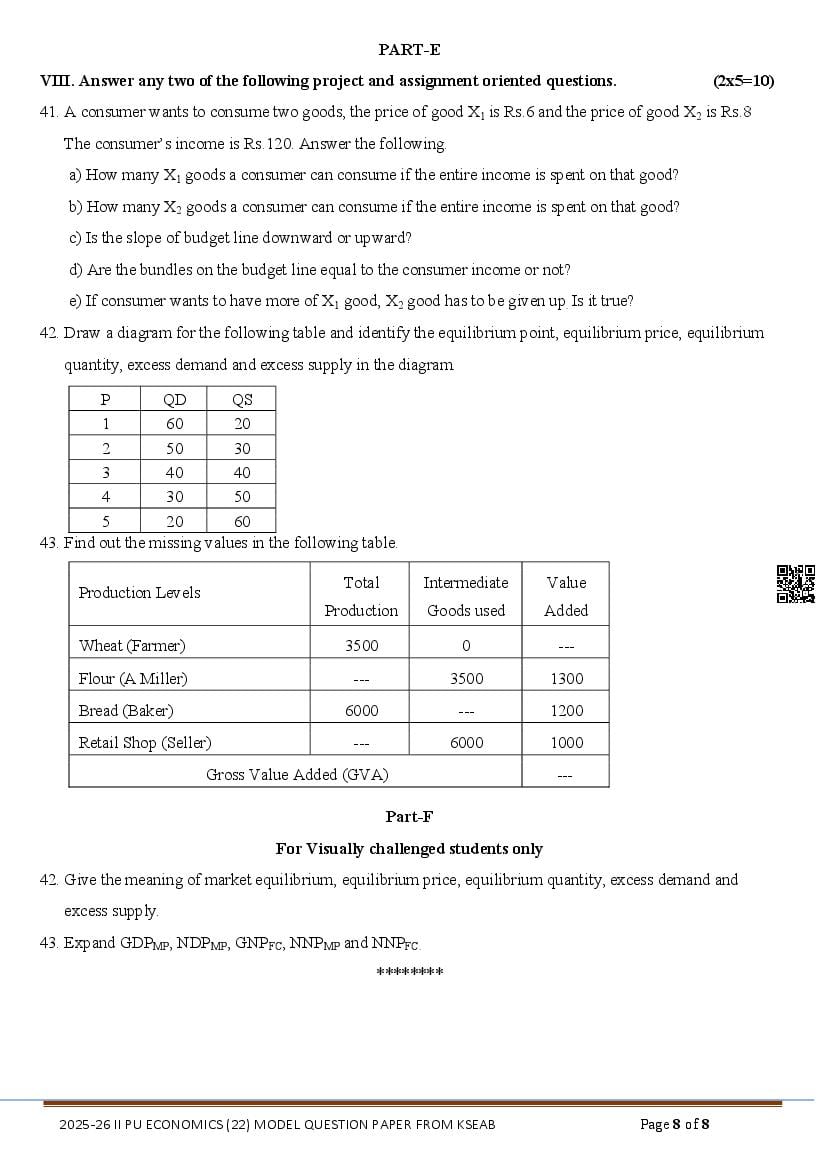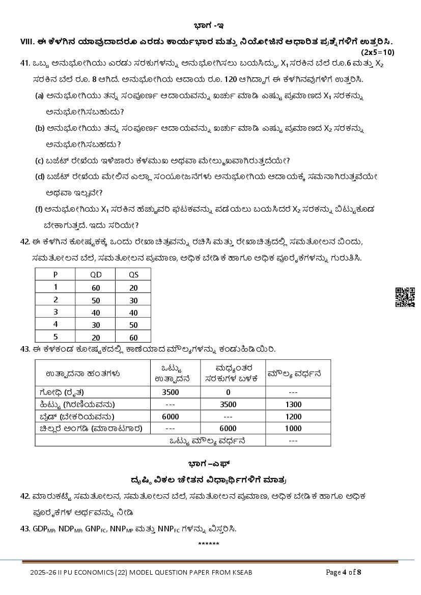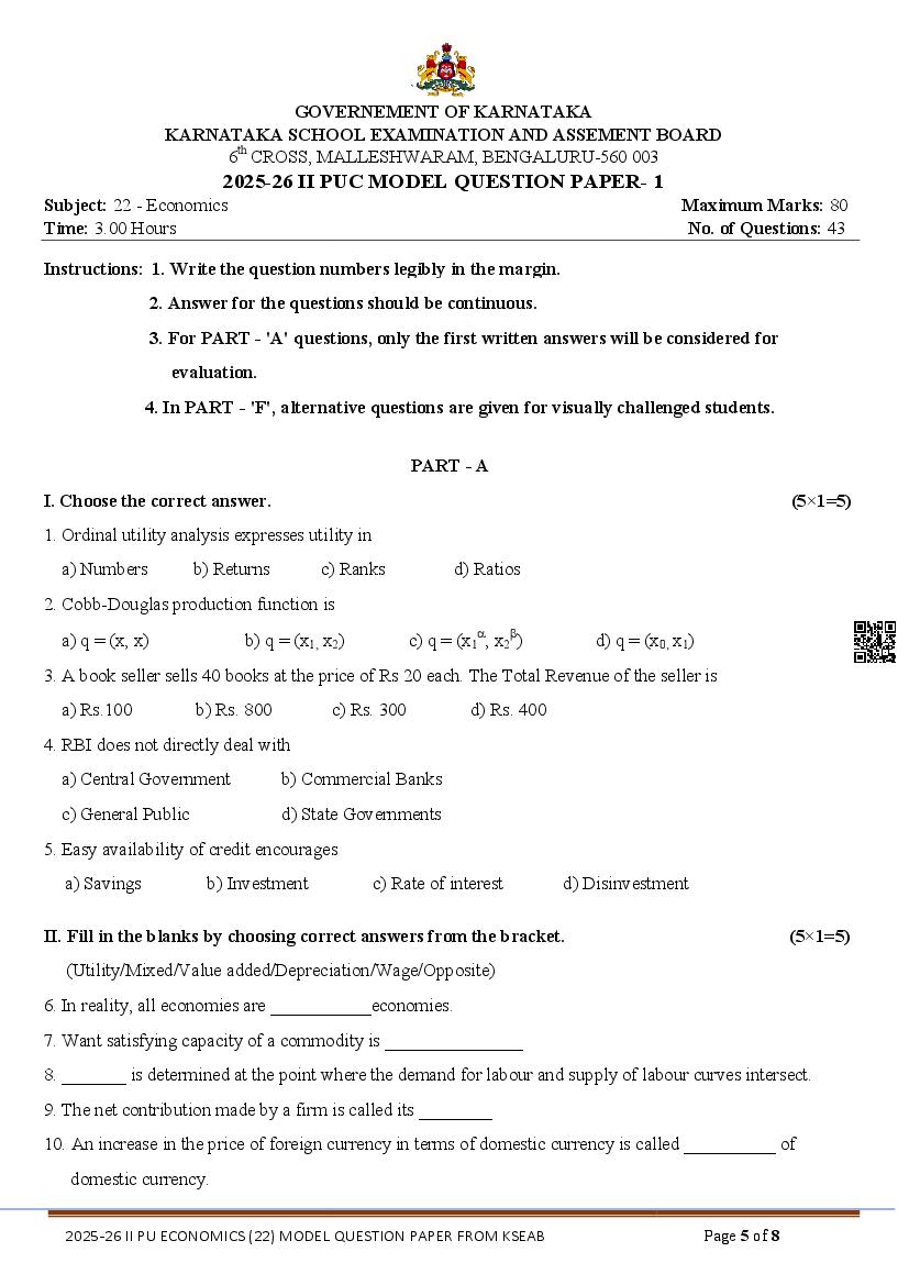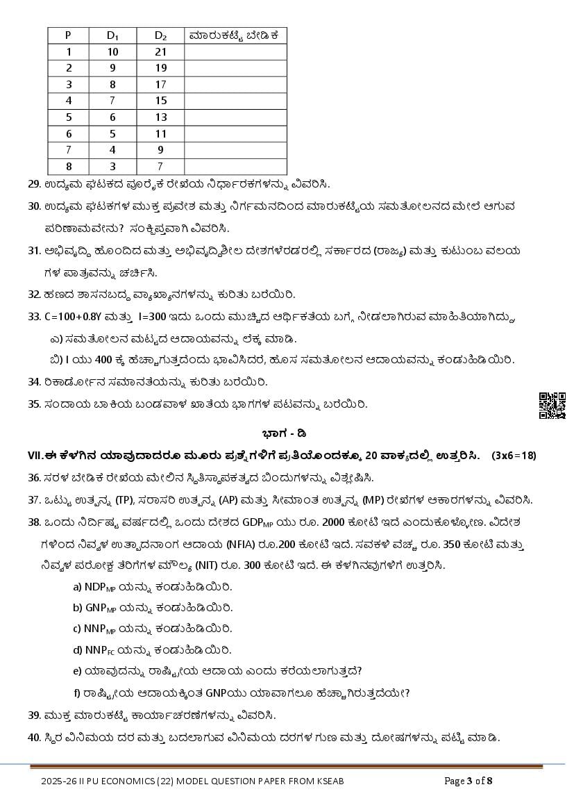 Karnataka 2nd PUC Economics Model Question Paper 2025 PDF Download Link – Click Here to Download Model Paper PDF
