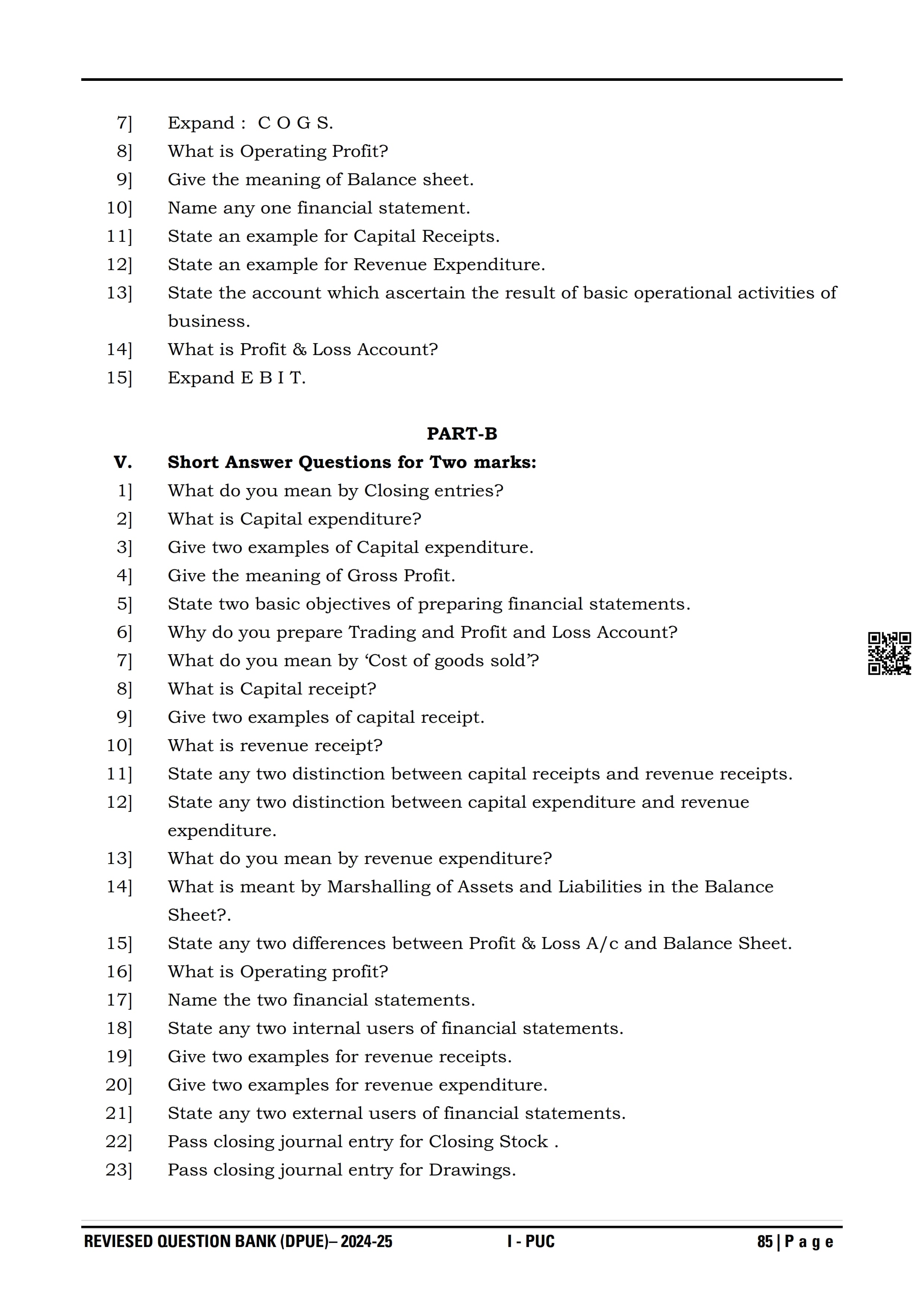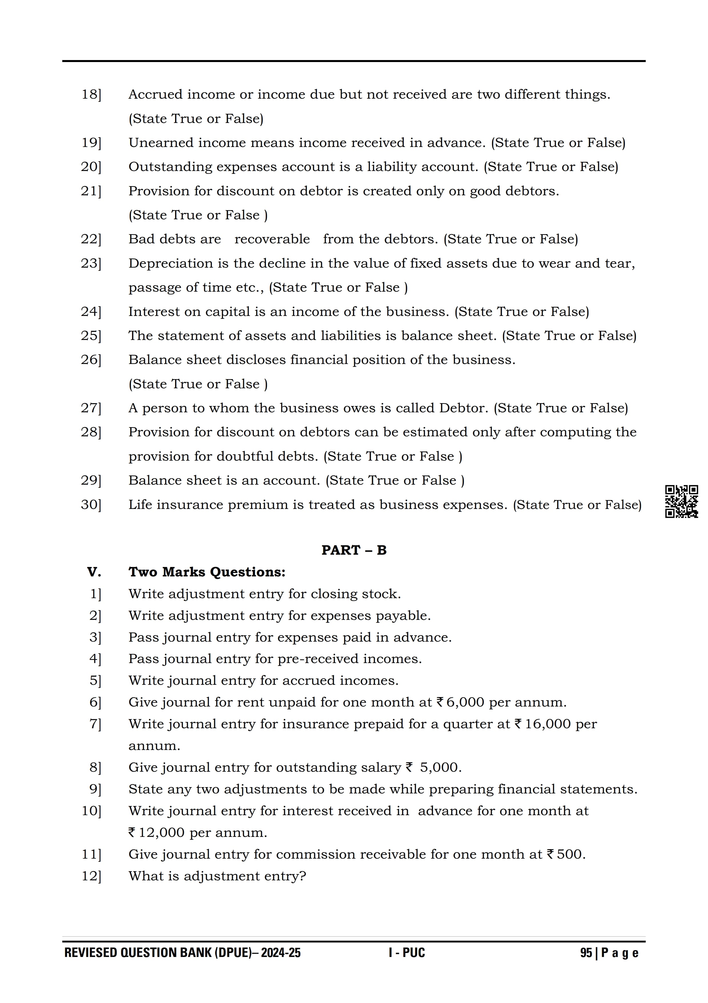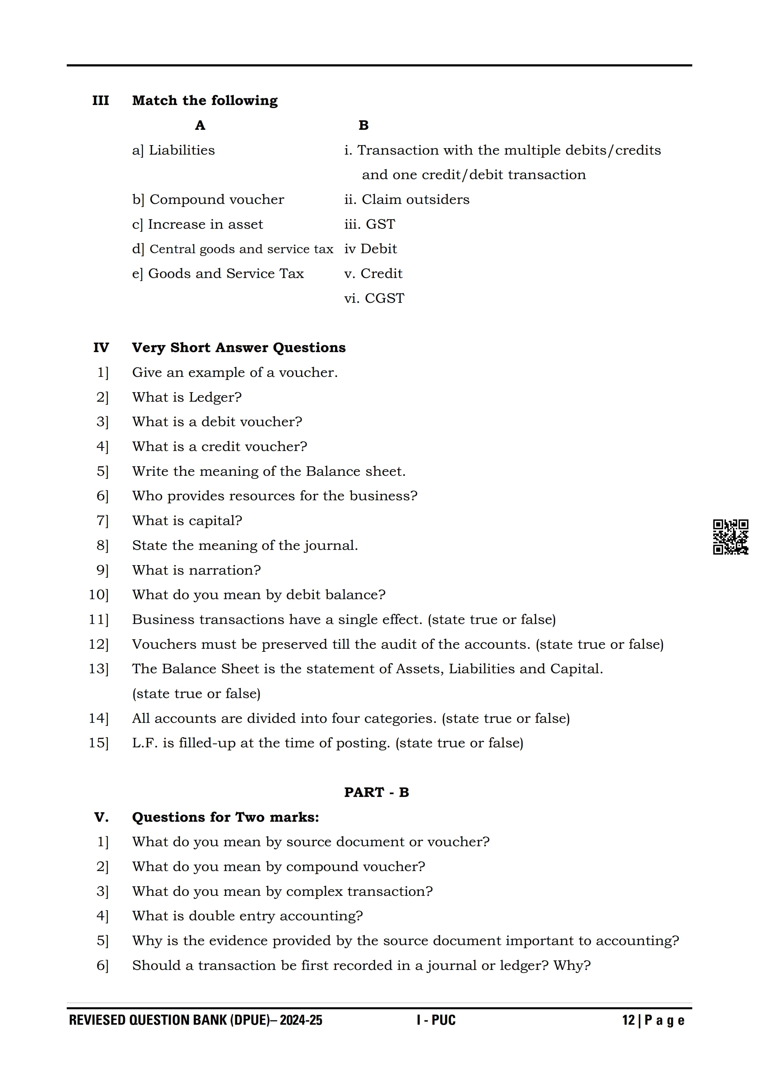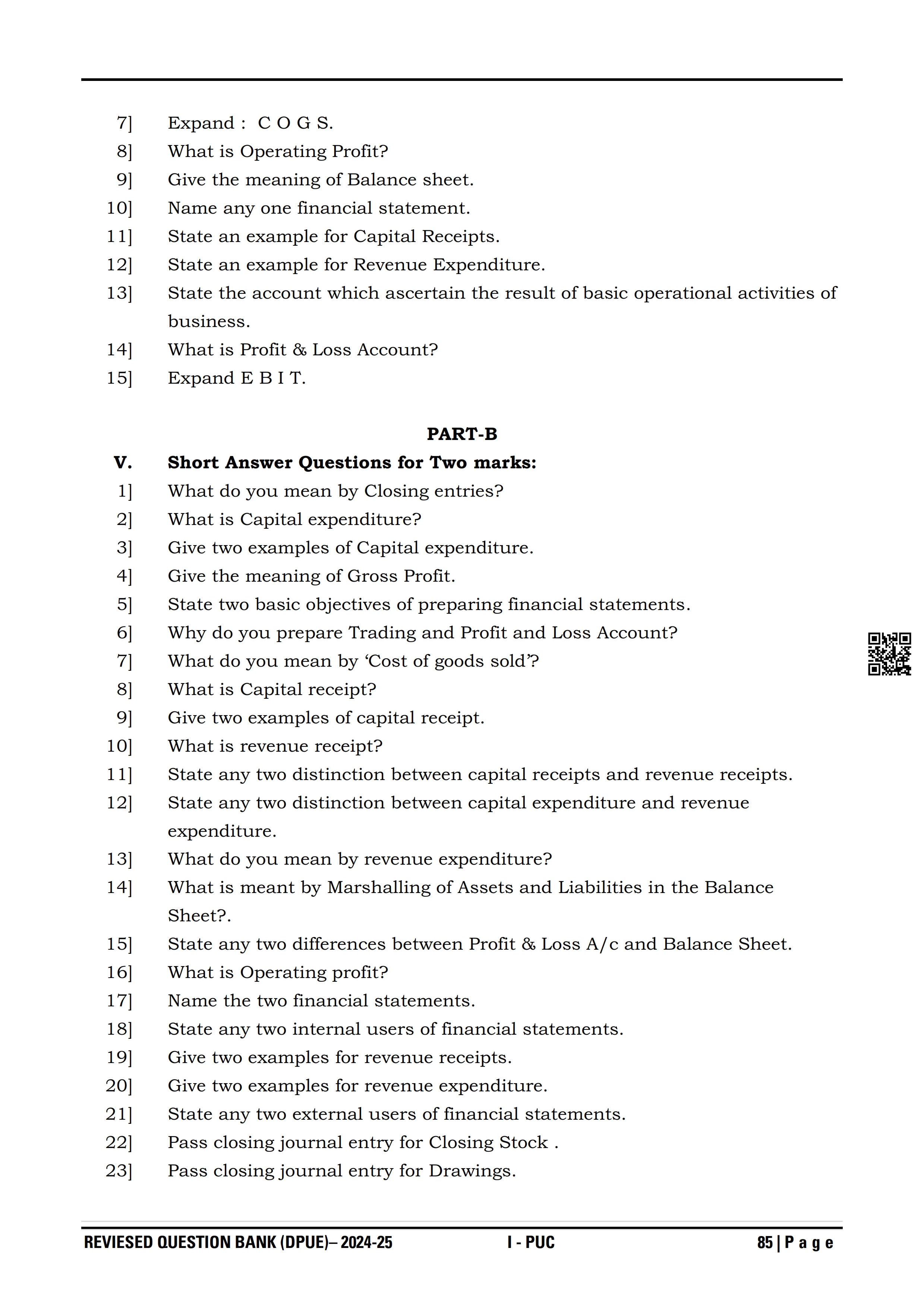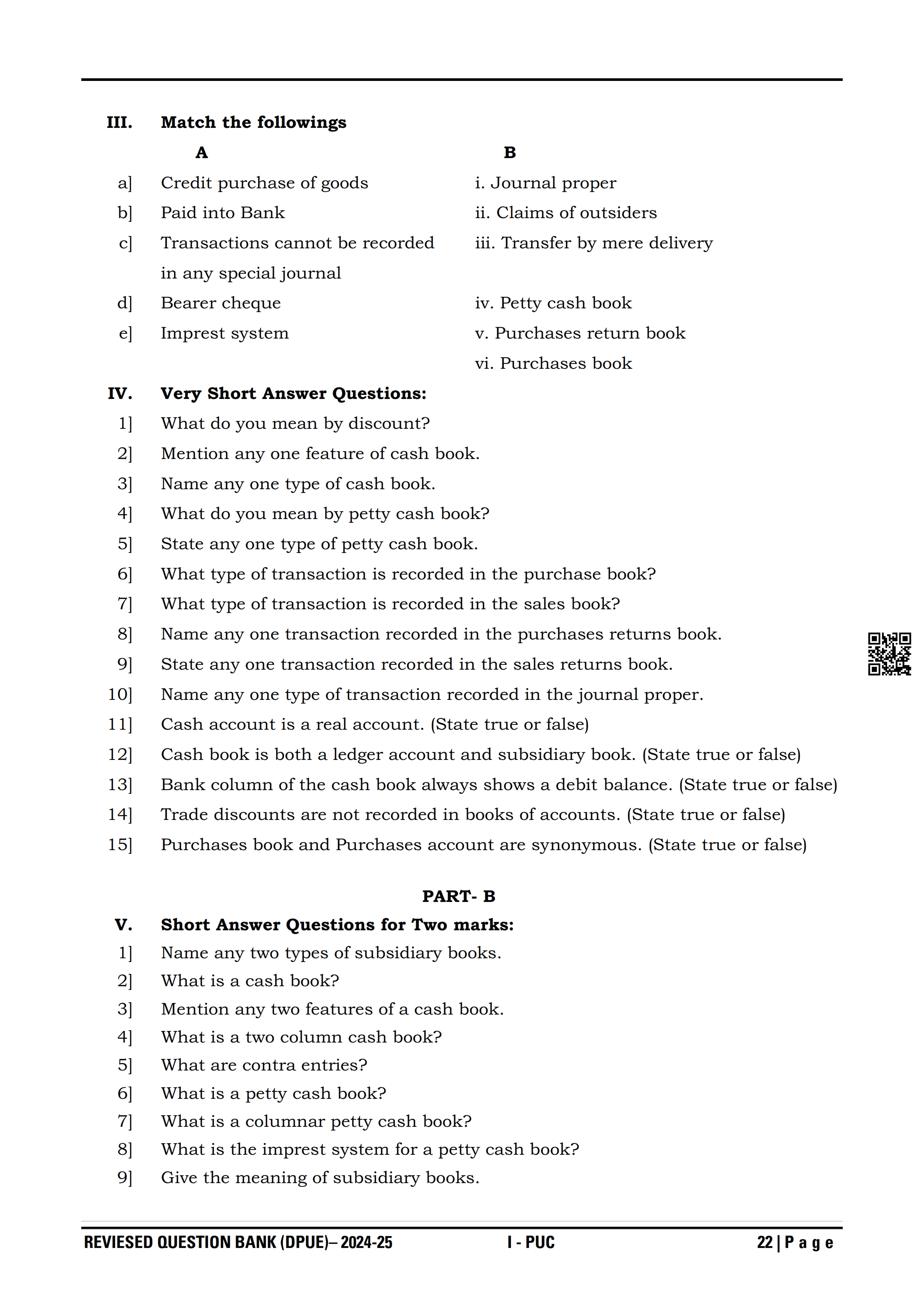 Karnataka I PUC Accountancy Question Bank