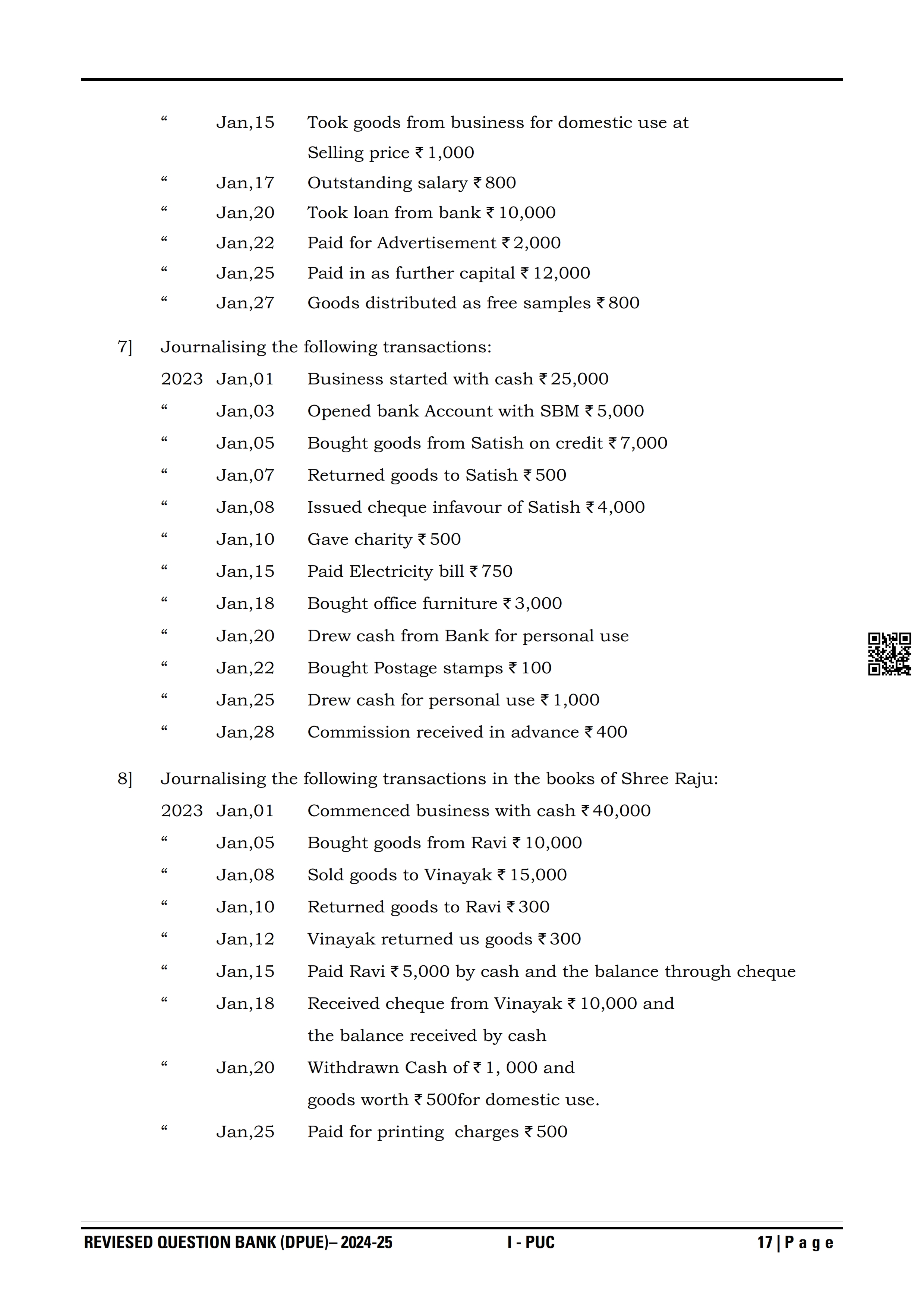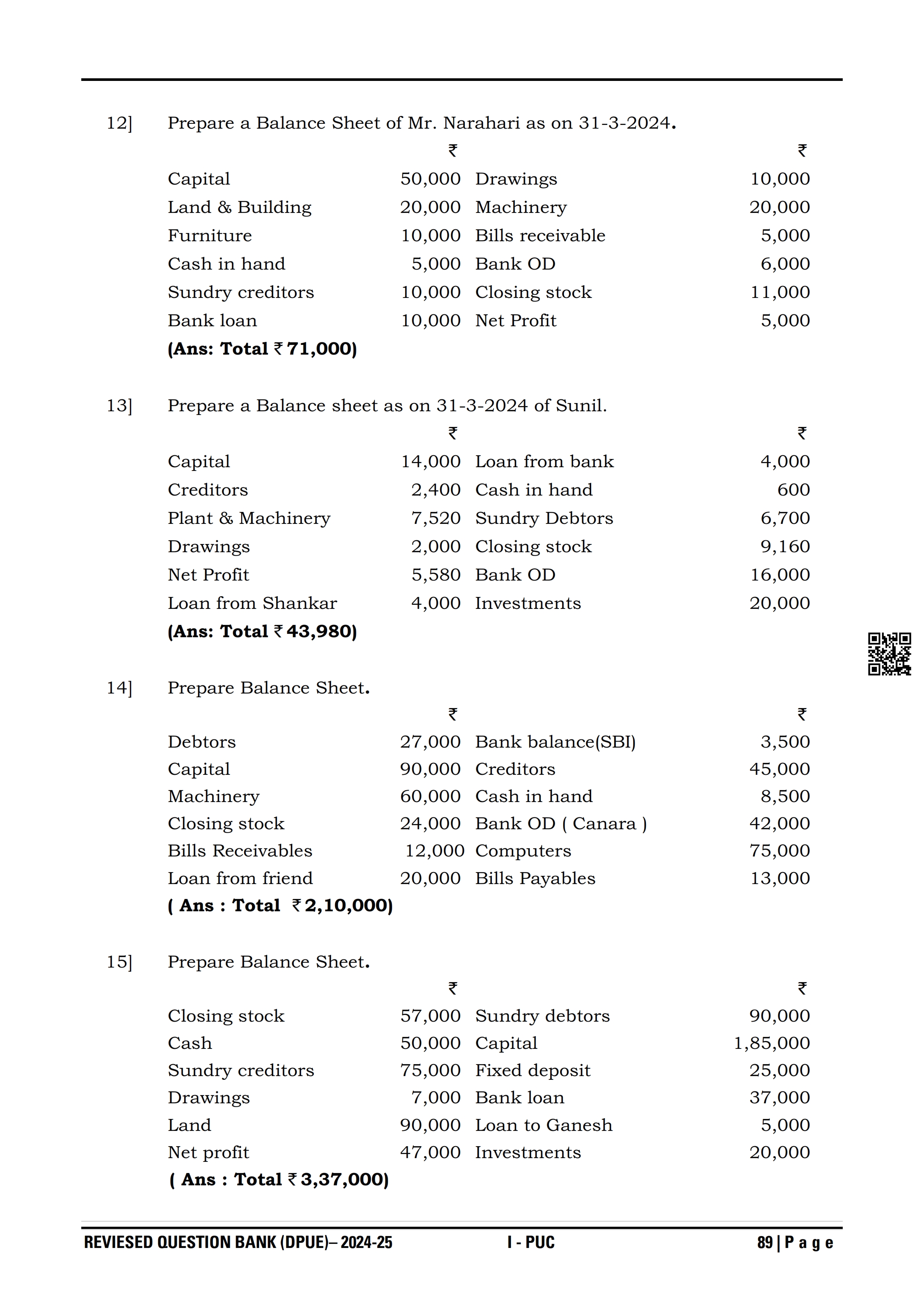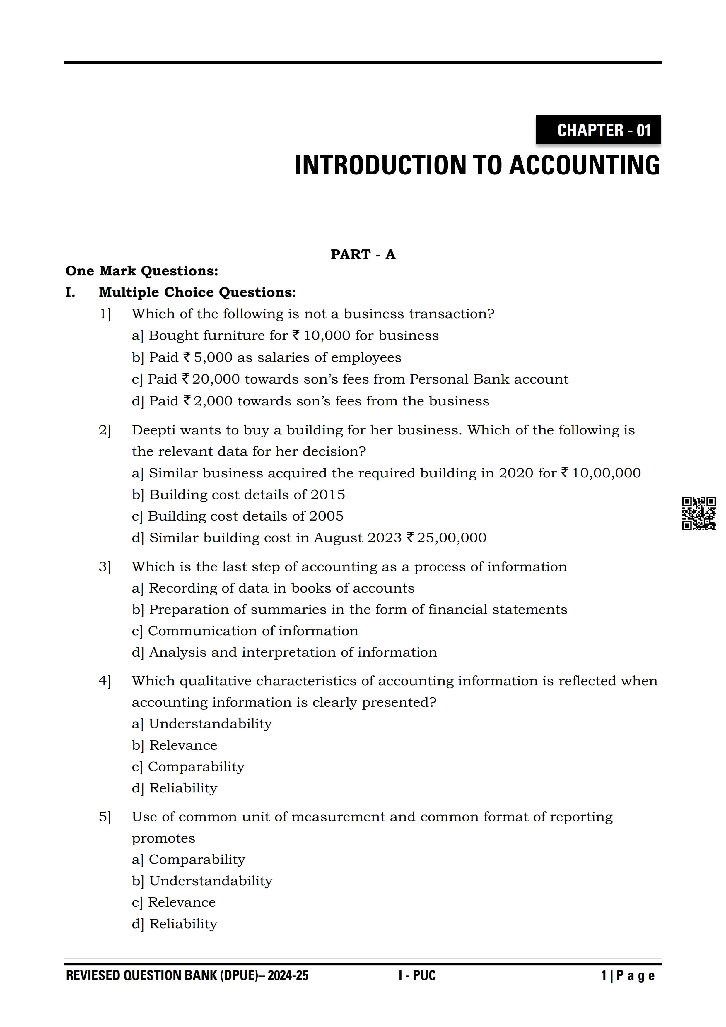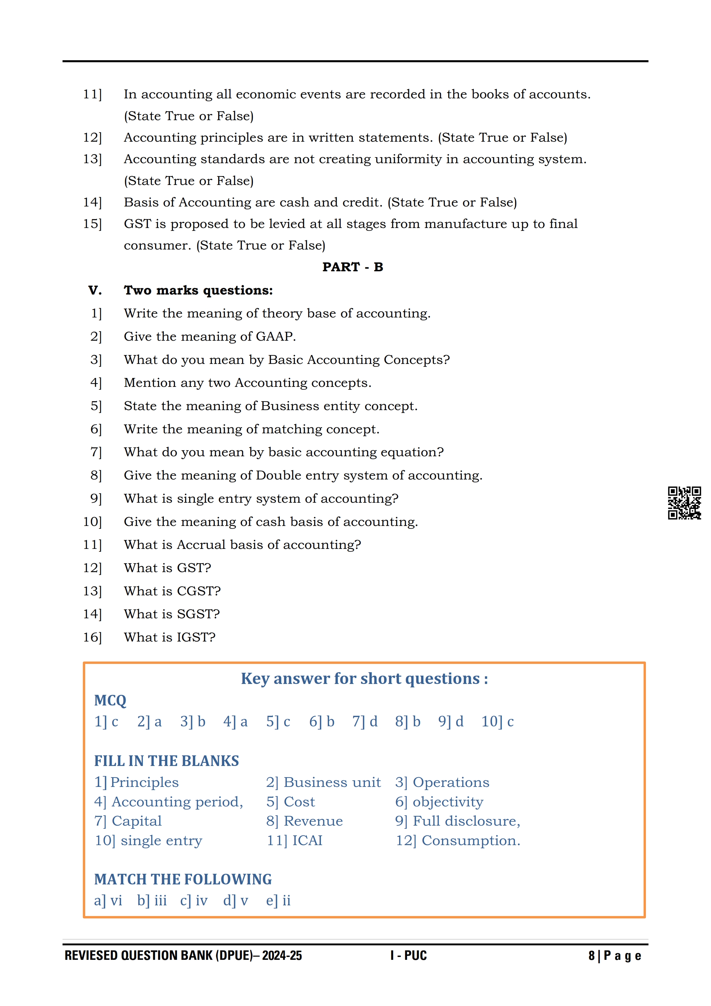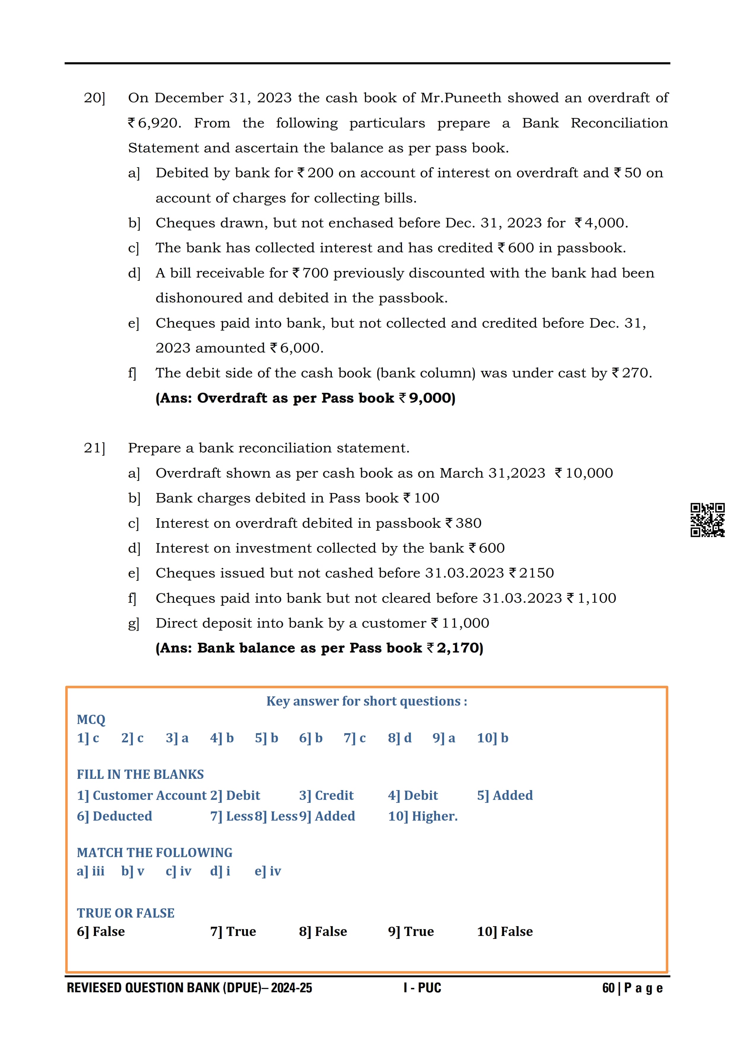 Karnataka I PUC Accountancy Question Bank