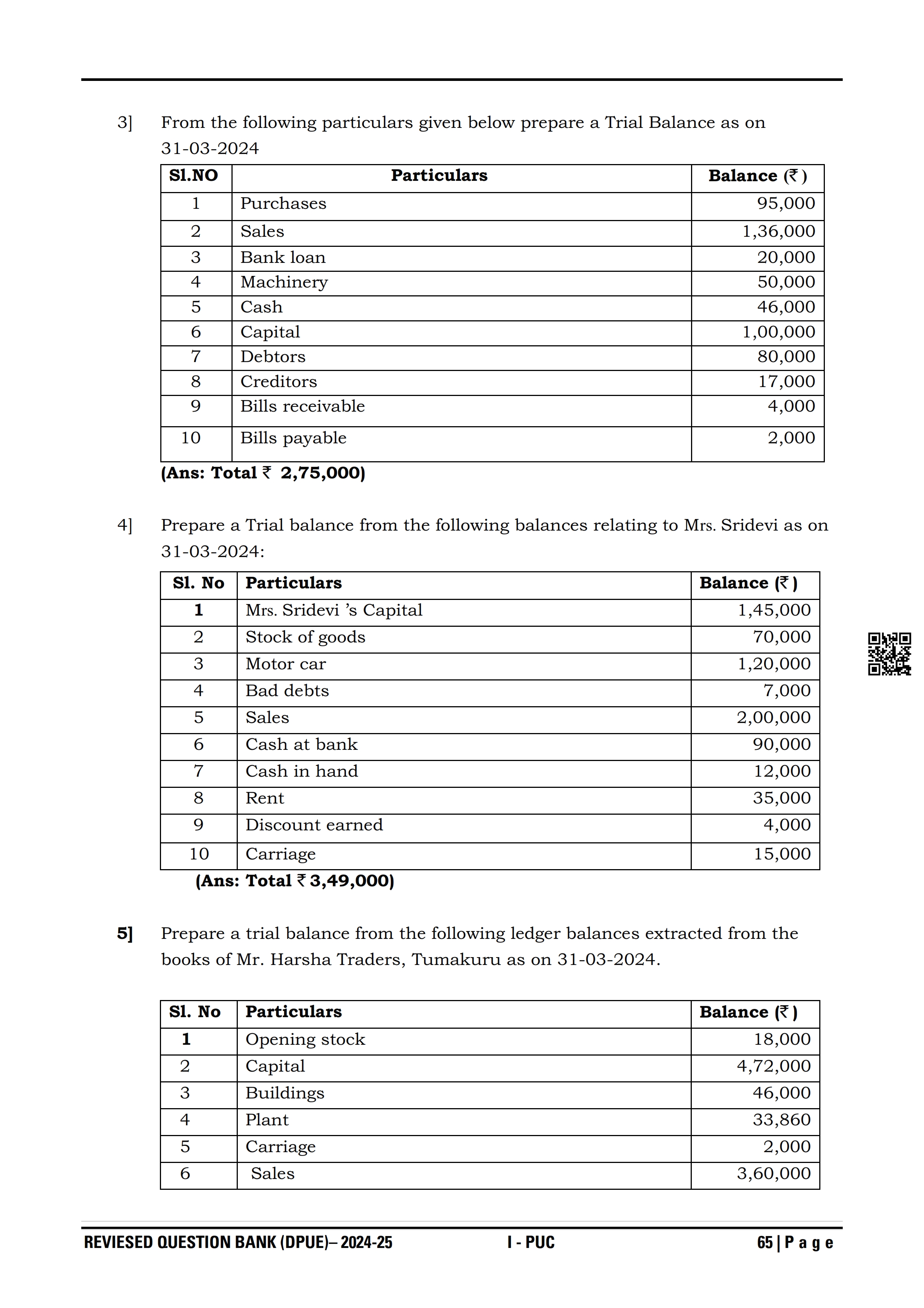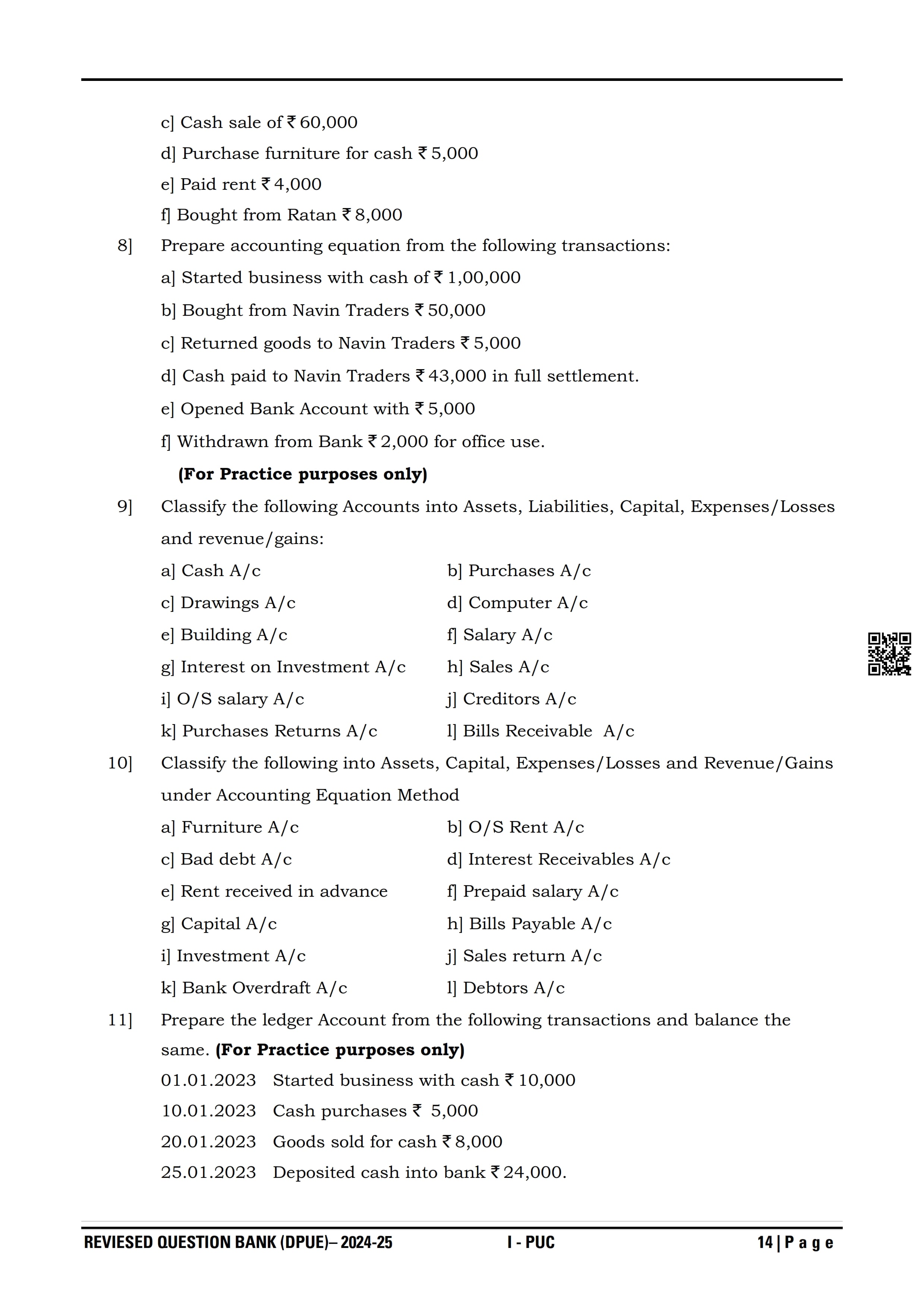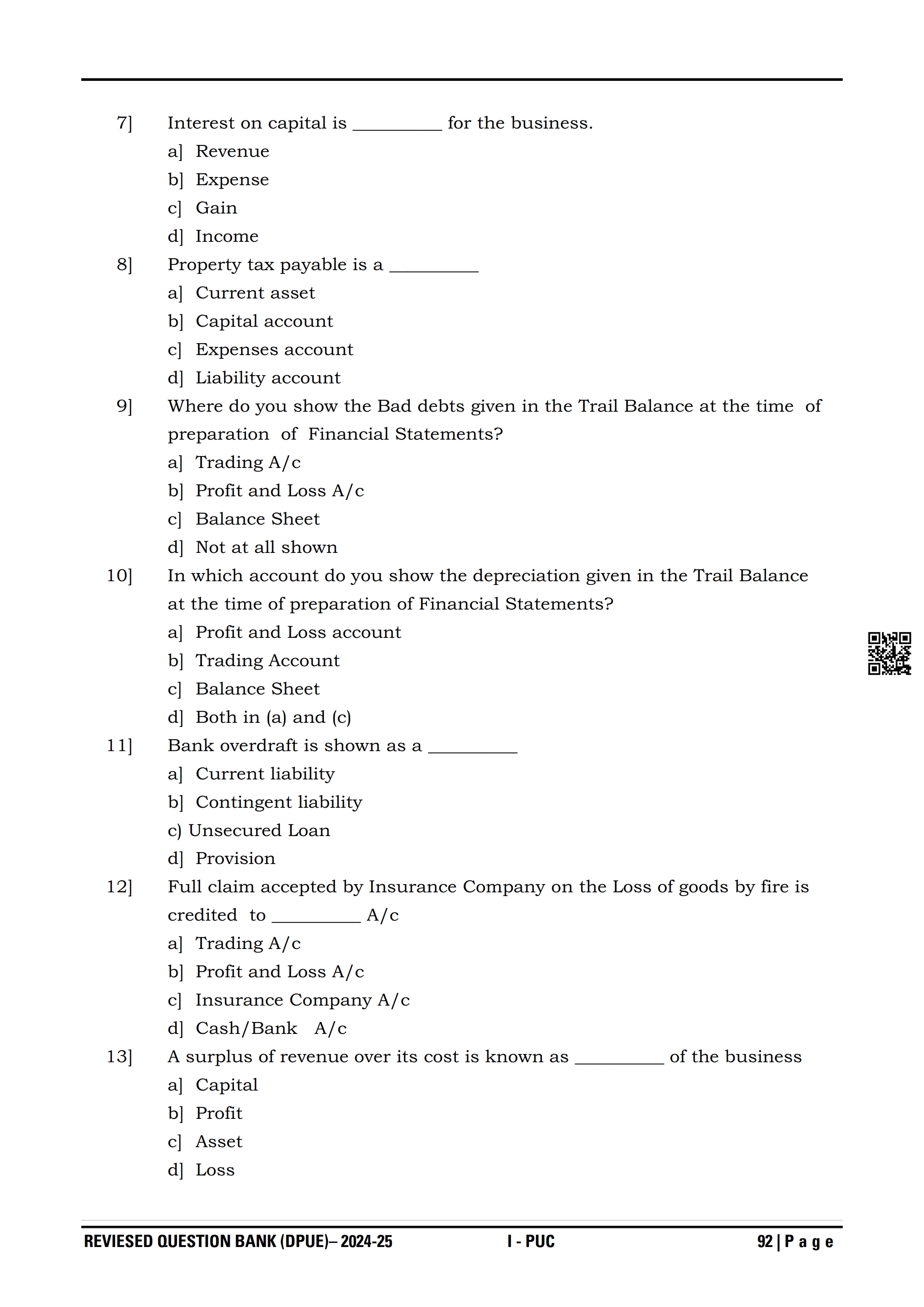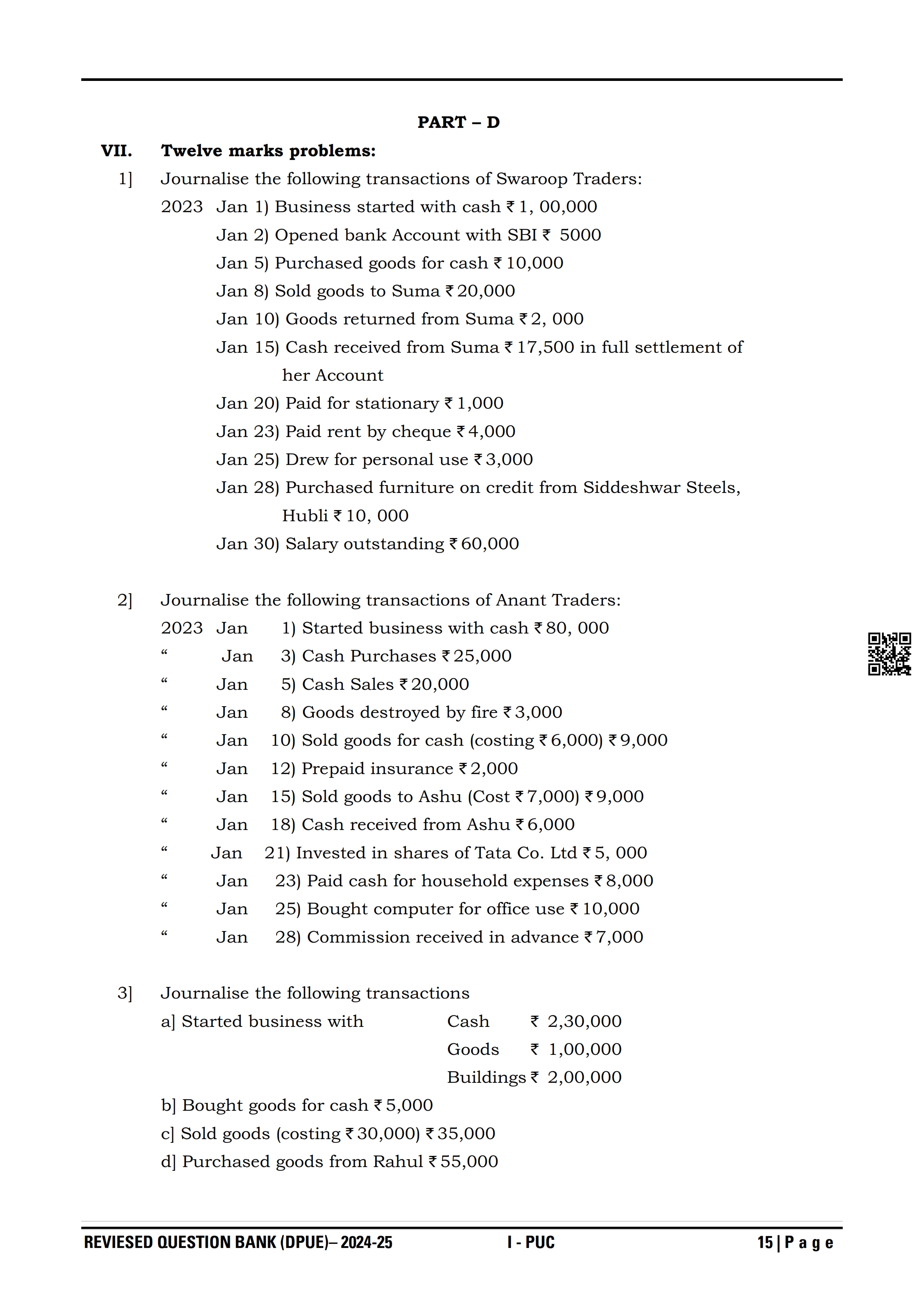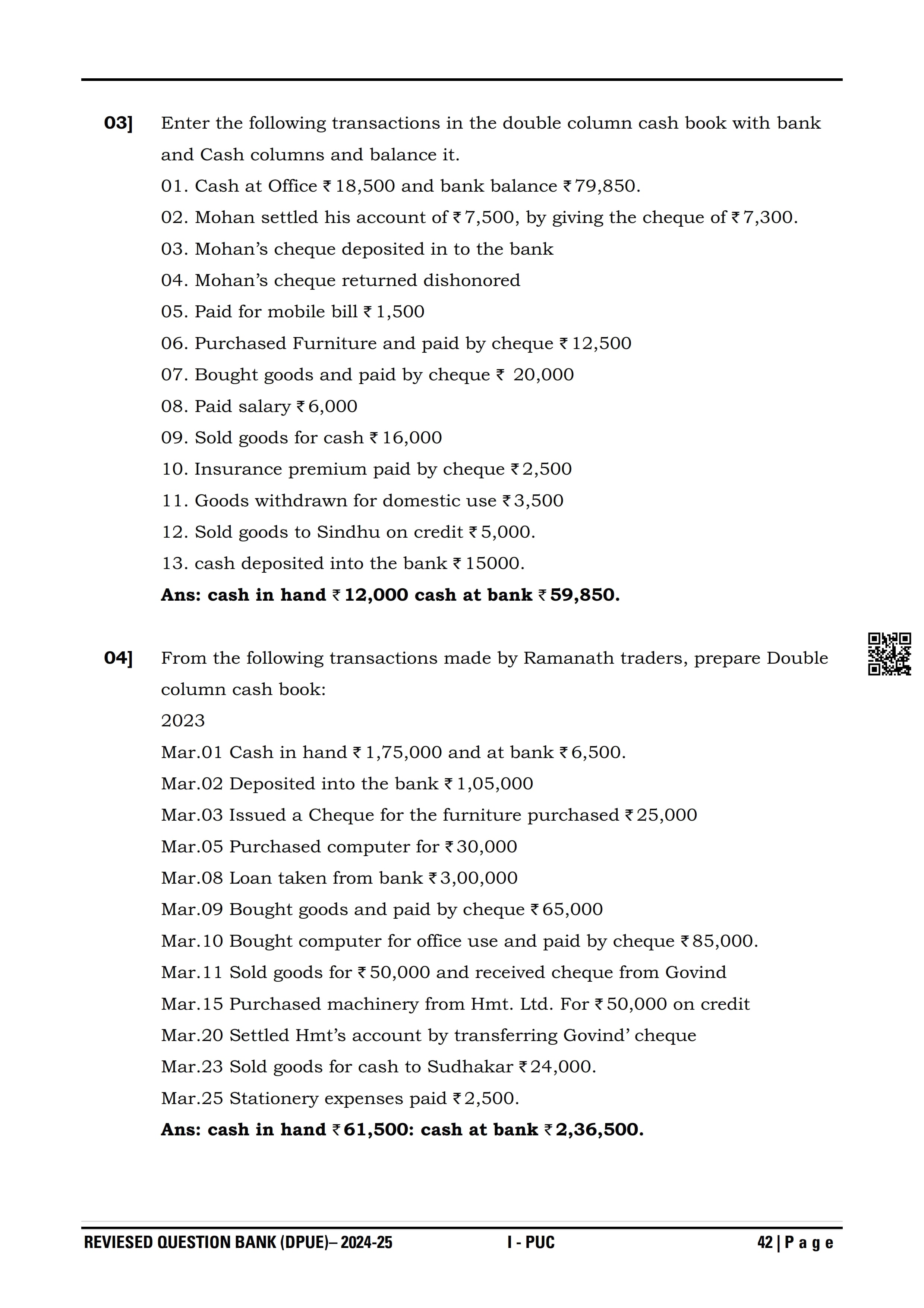 Karnataka I PUC Accountancy Question Bank