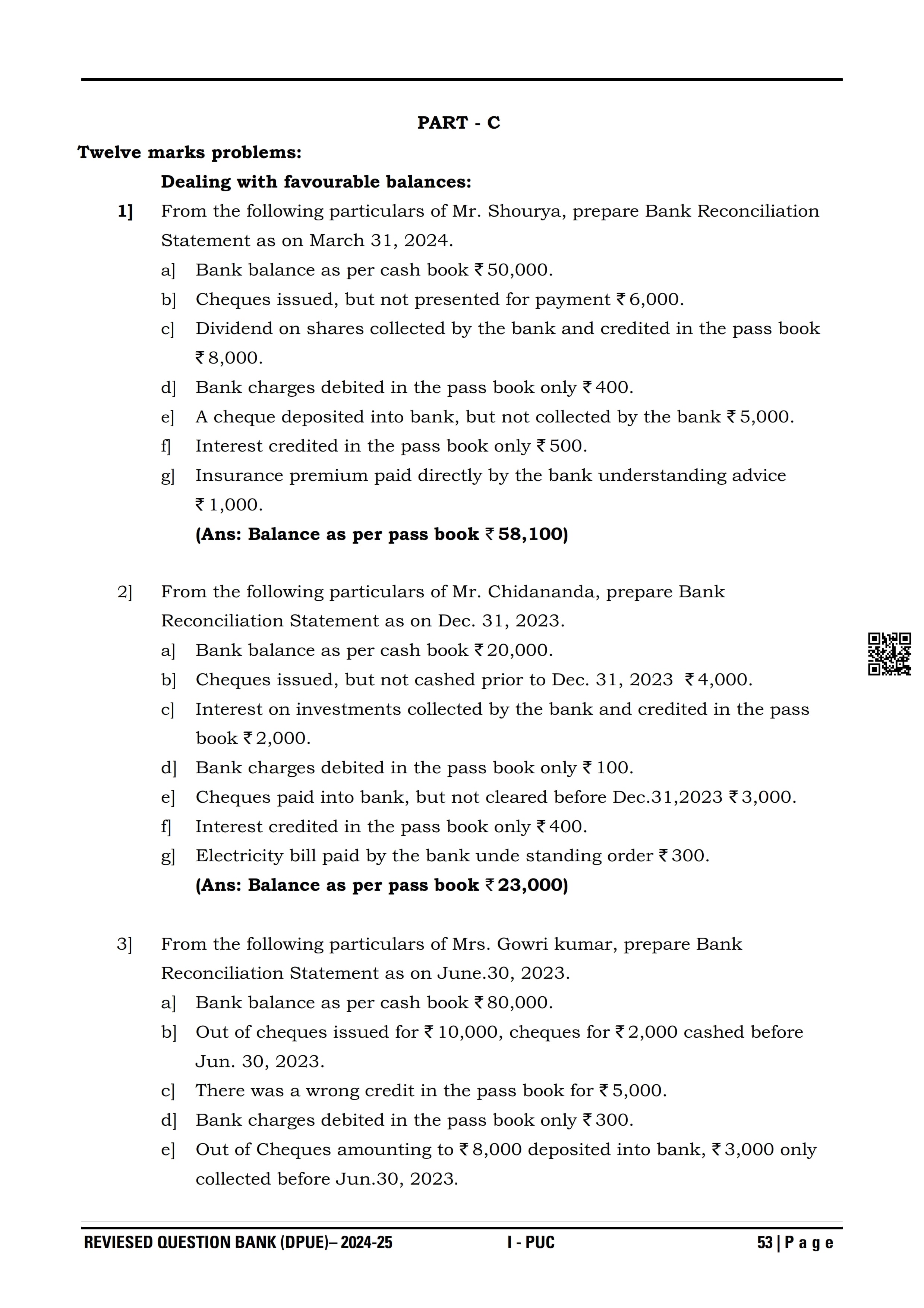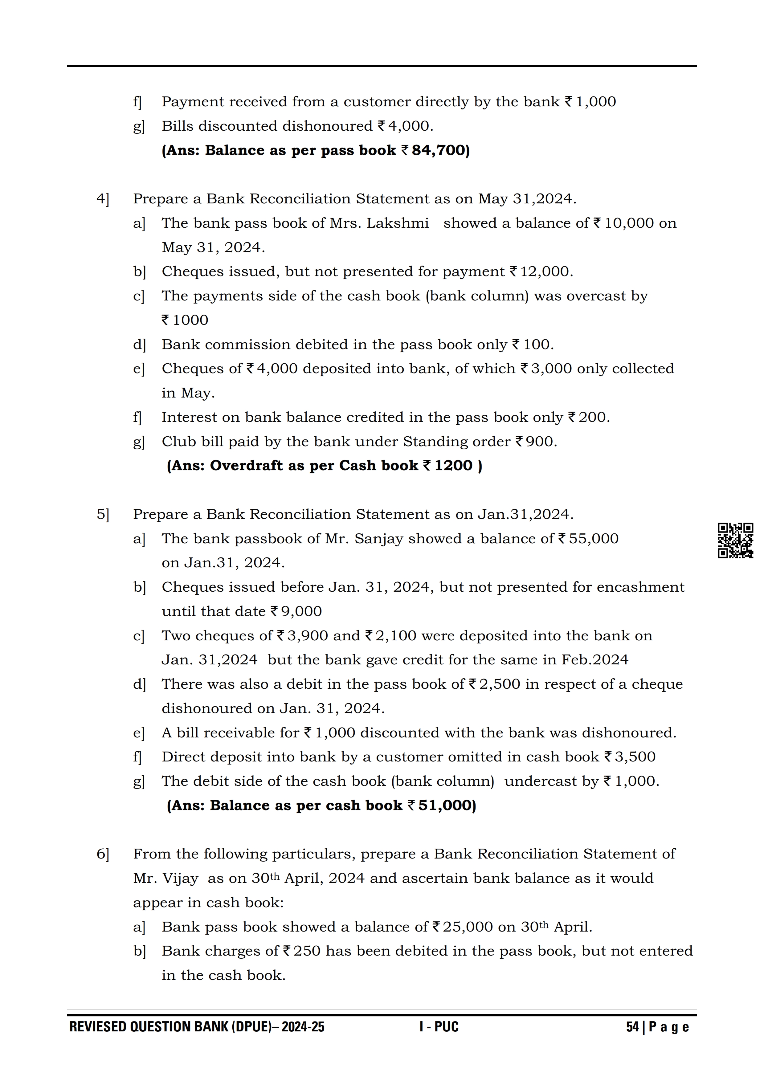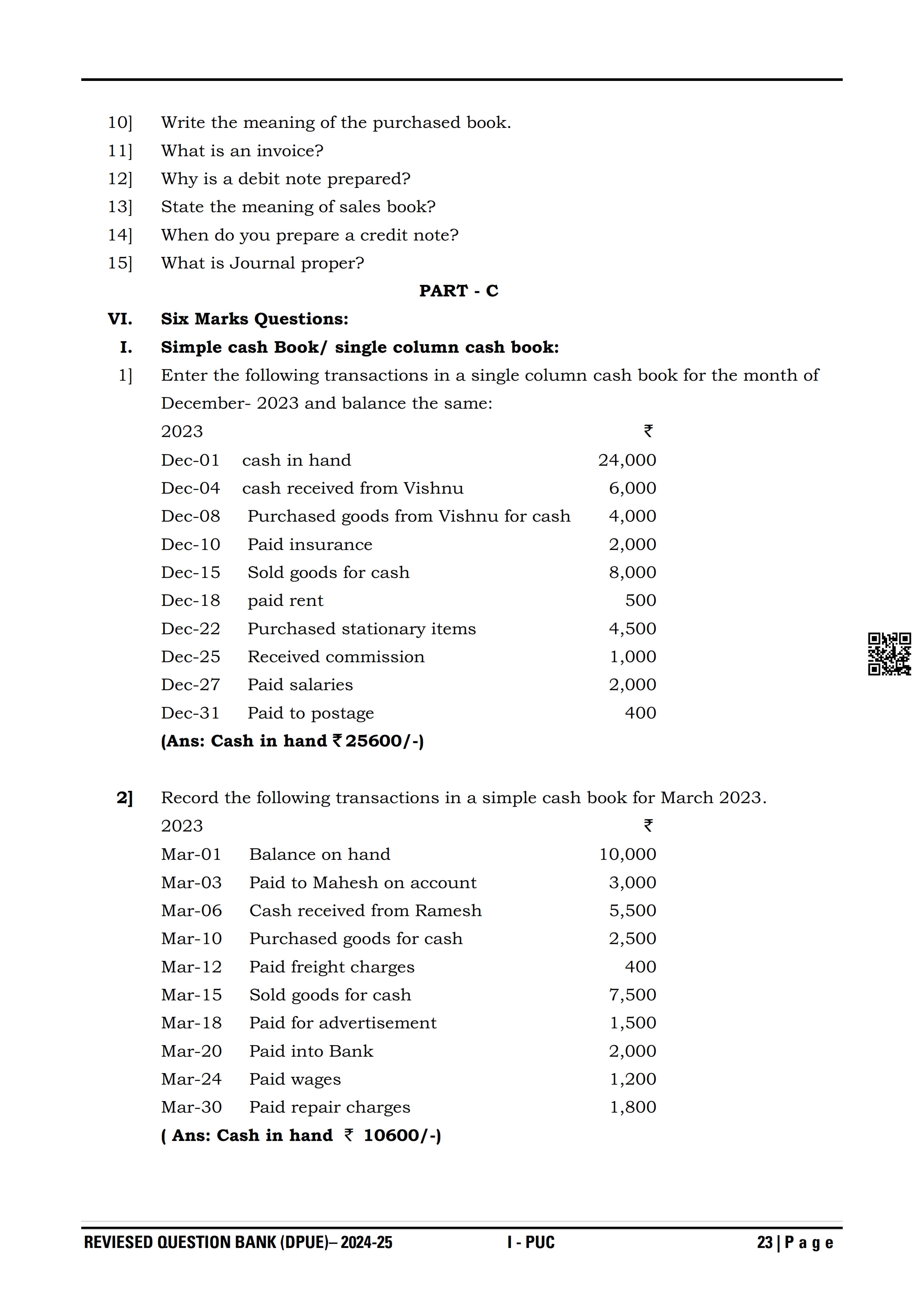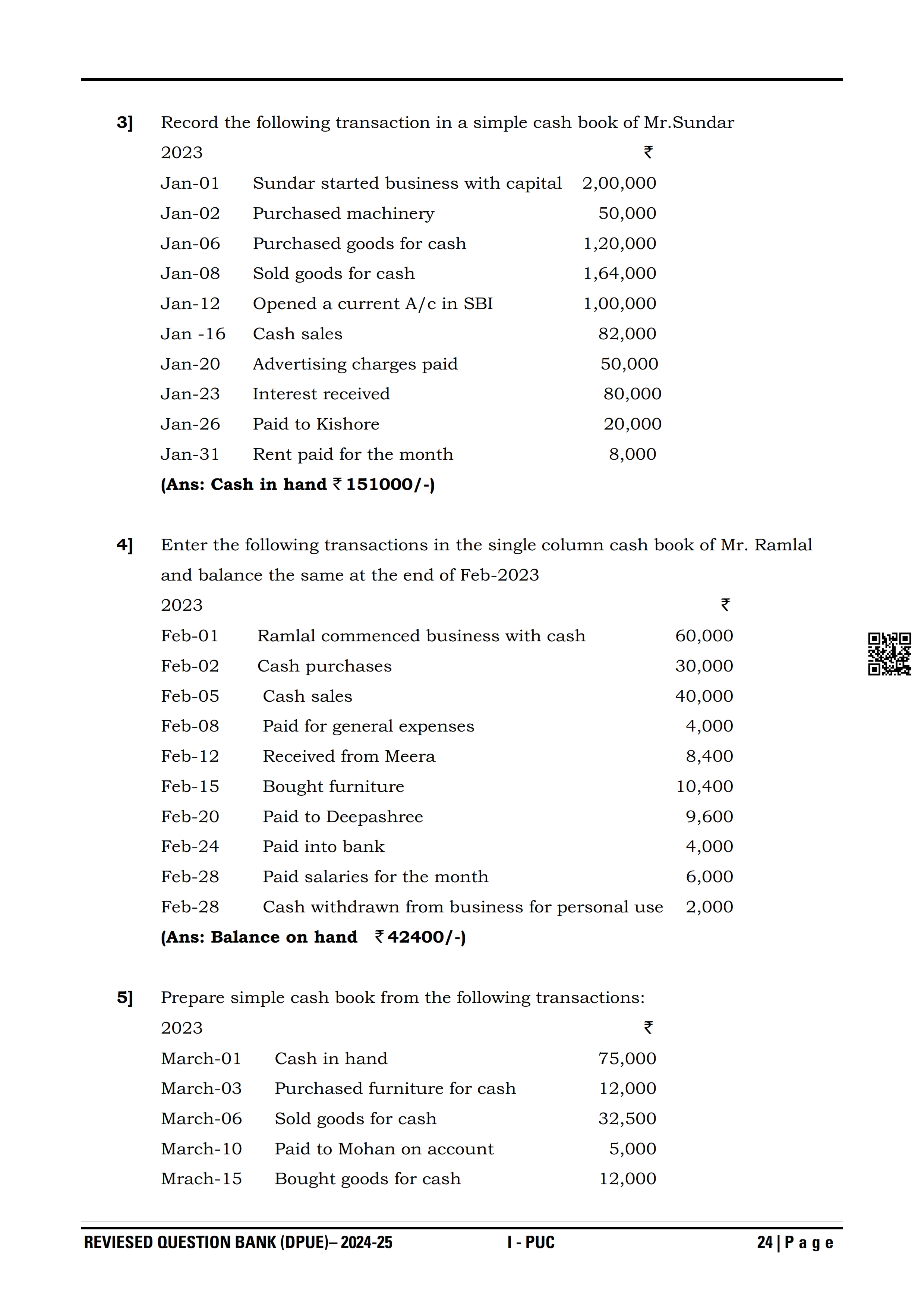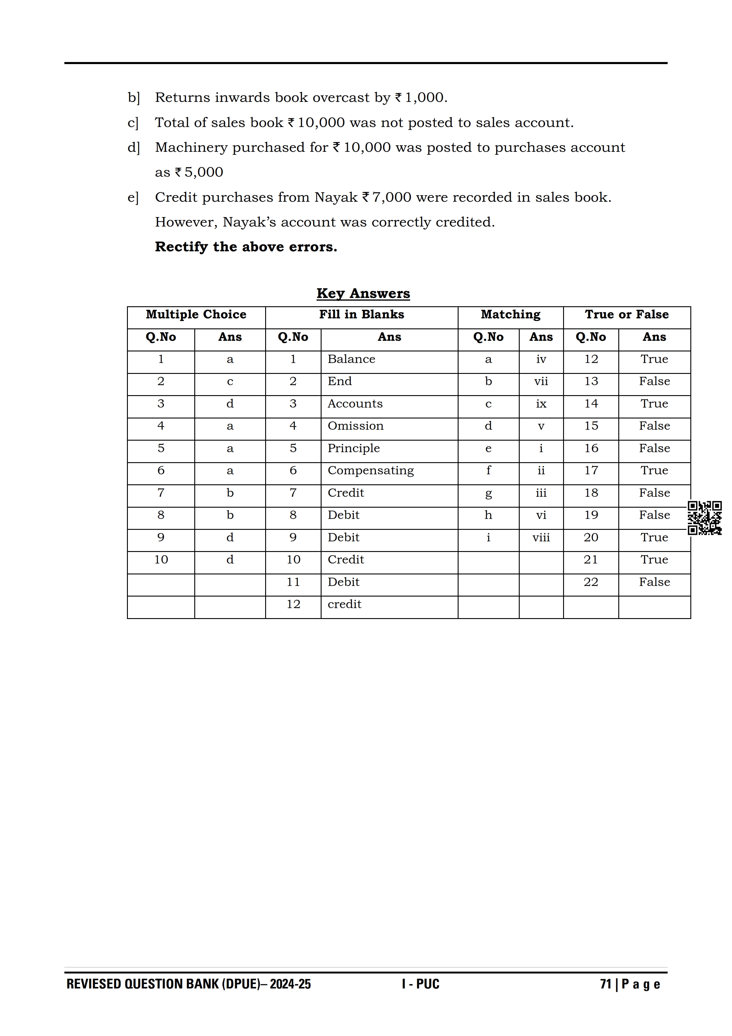 Karnataka I PUC Accountancy Question Bank