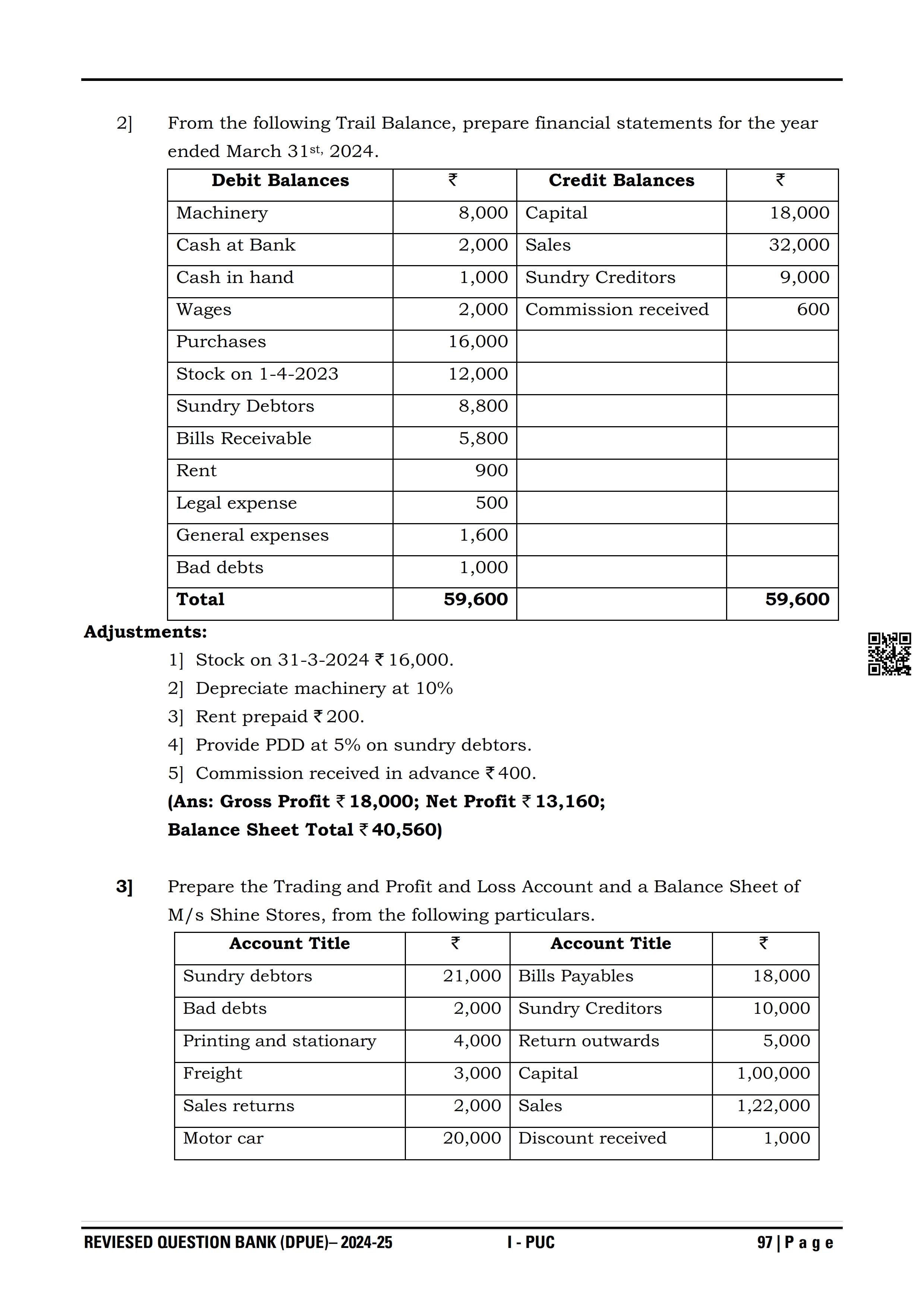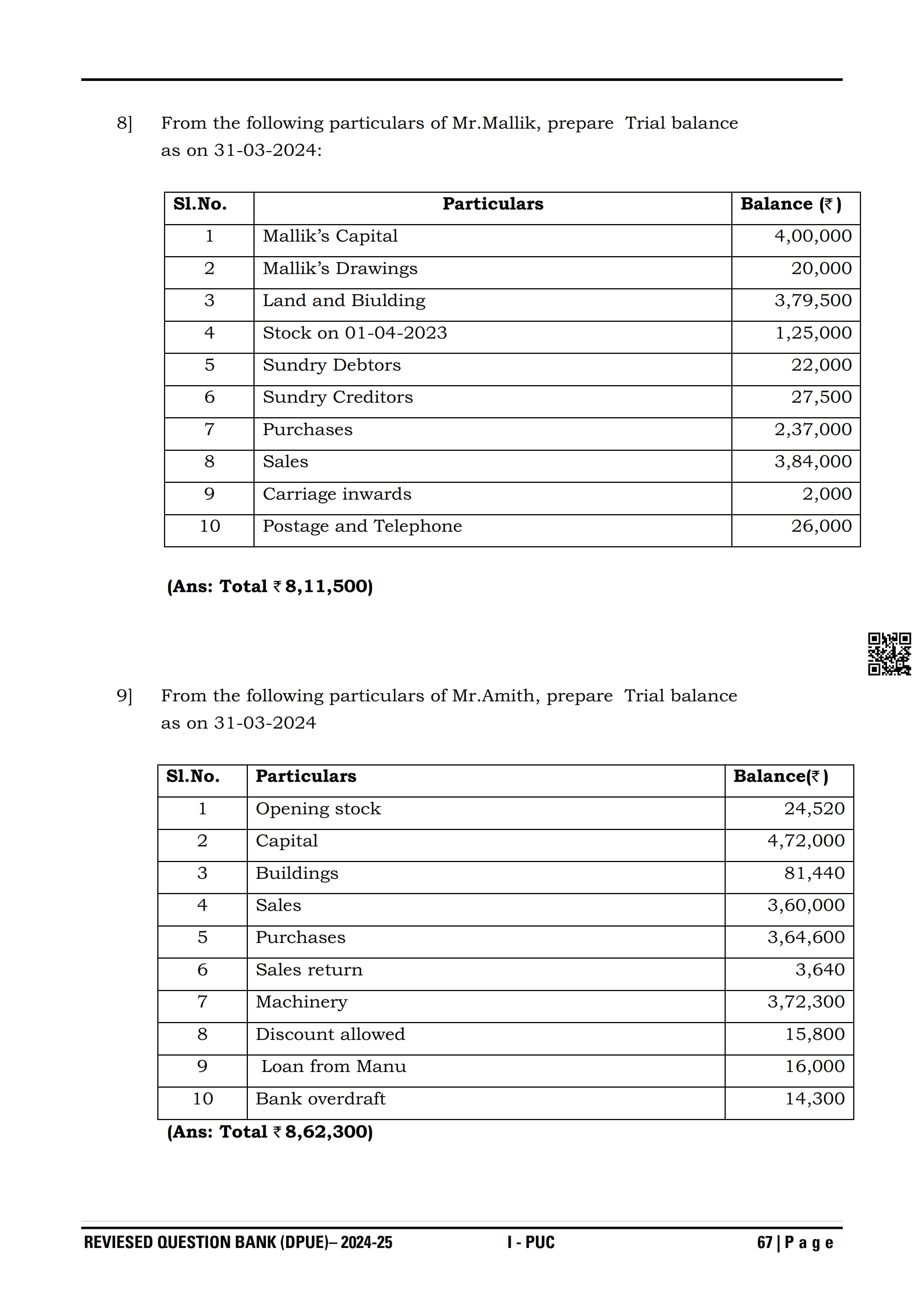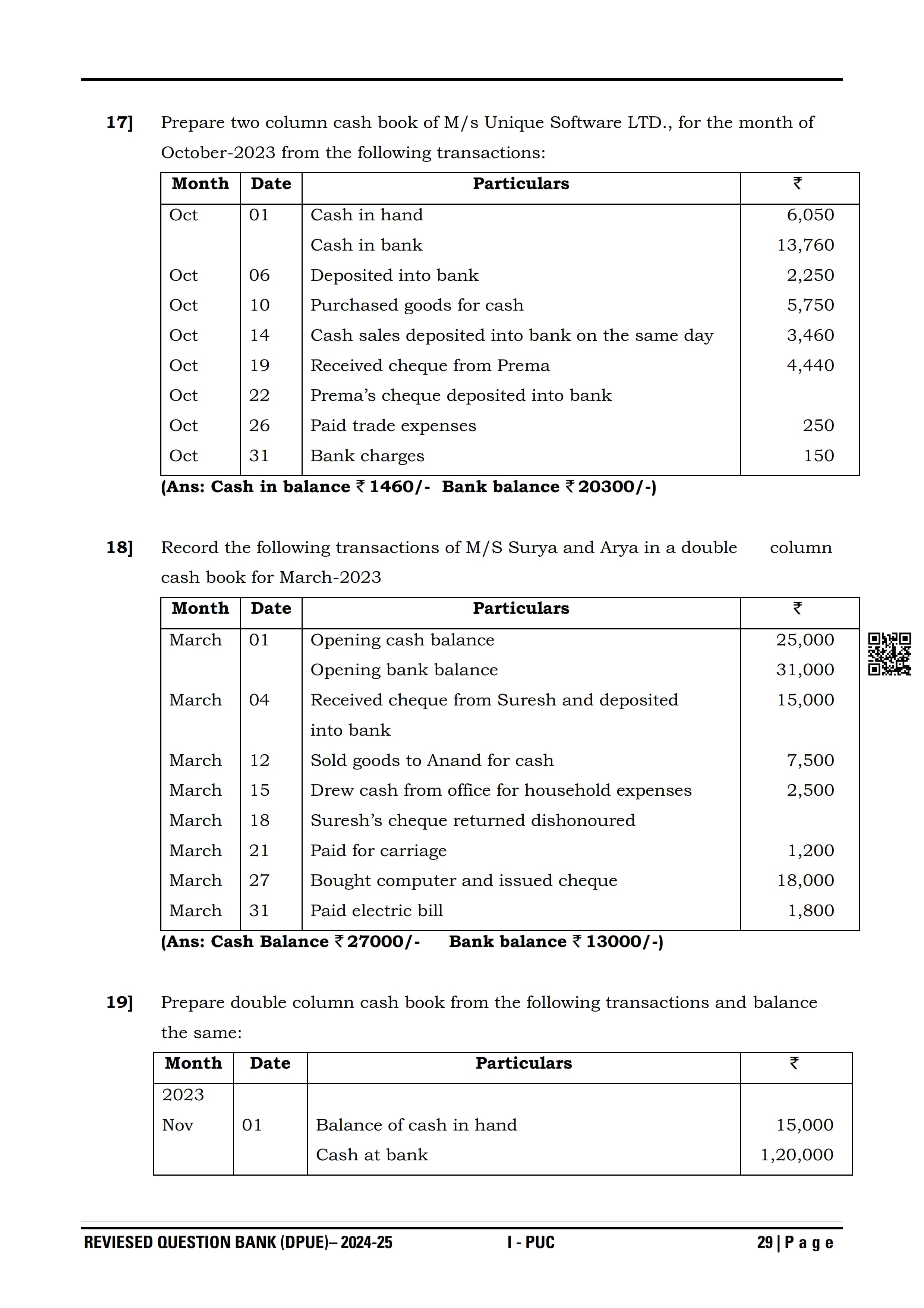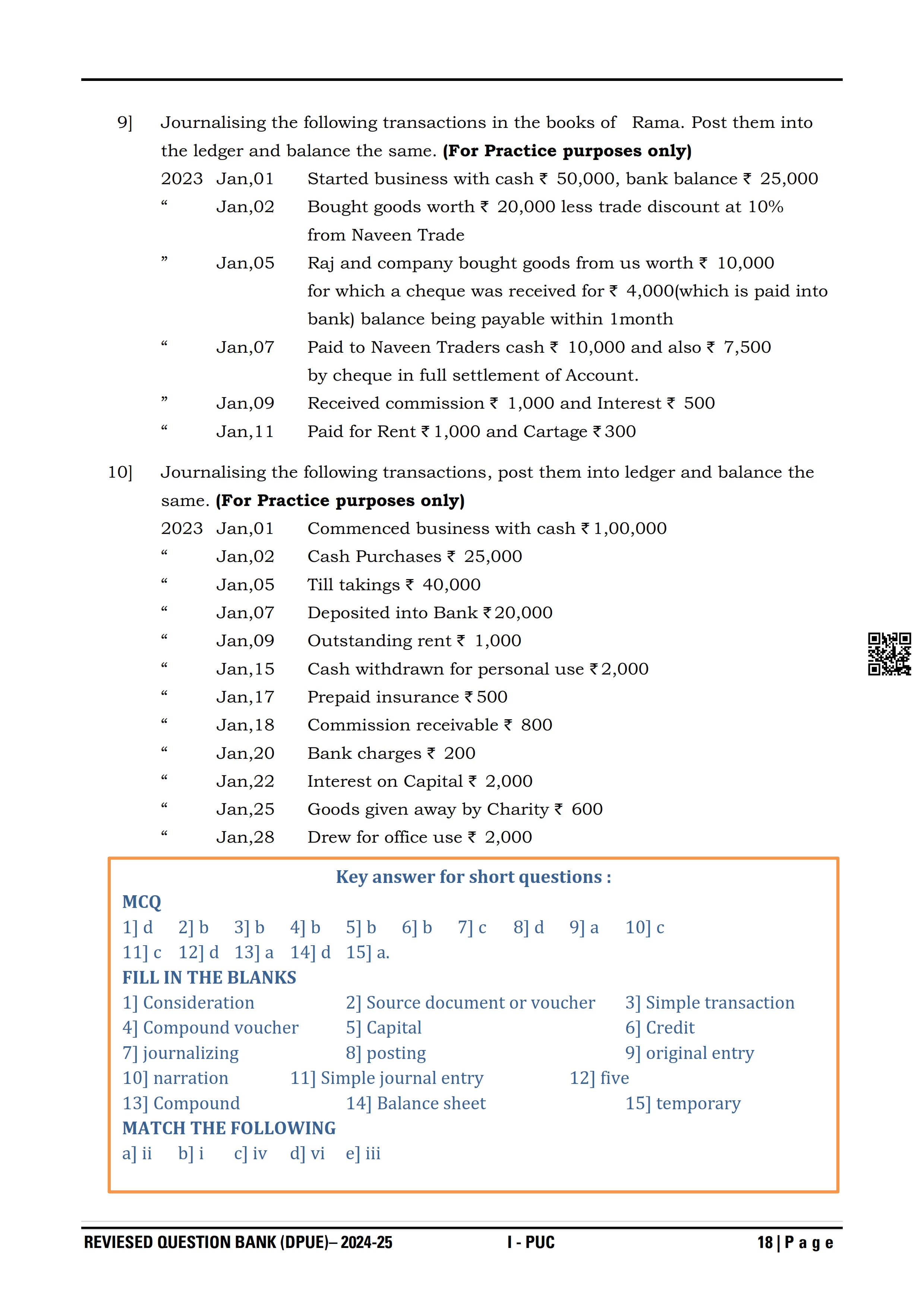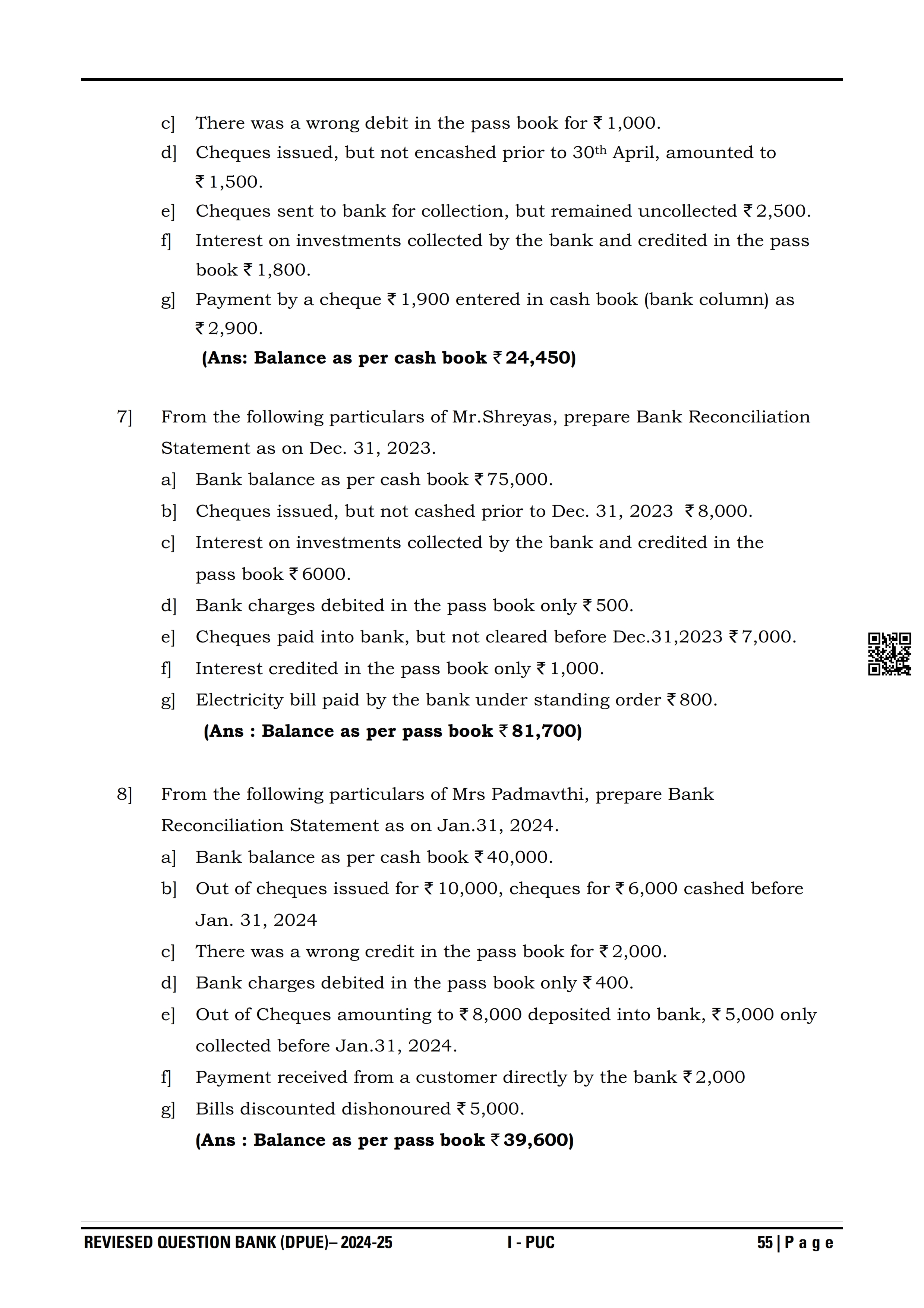 Karnataka I PUC Accountancy Question Bank