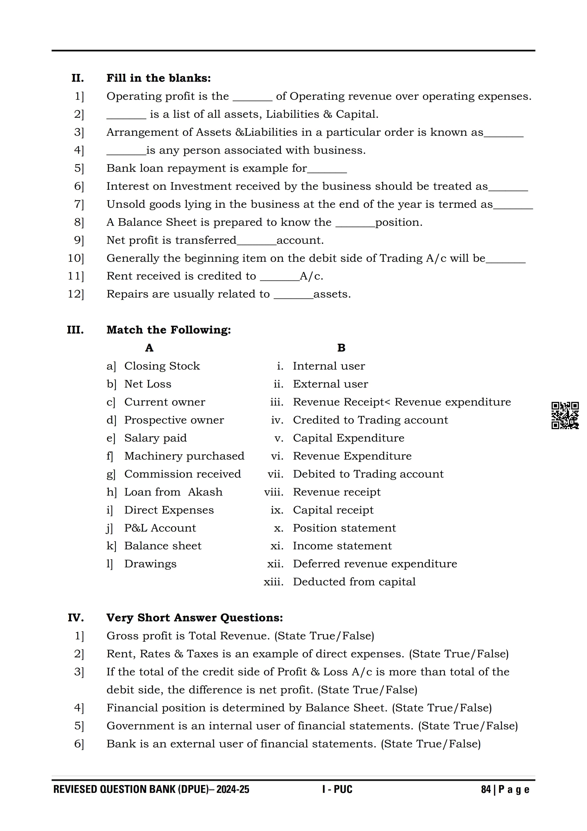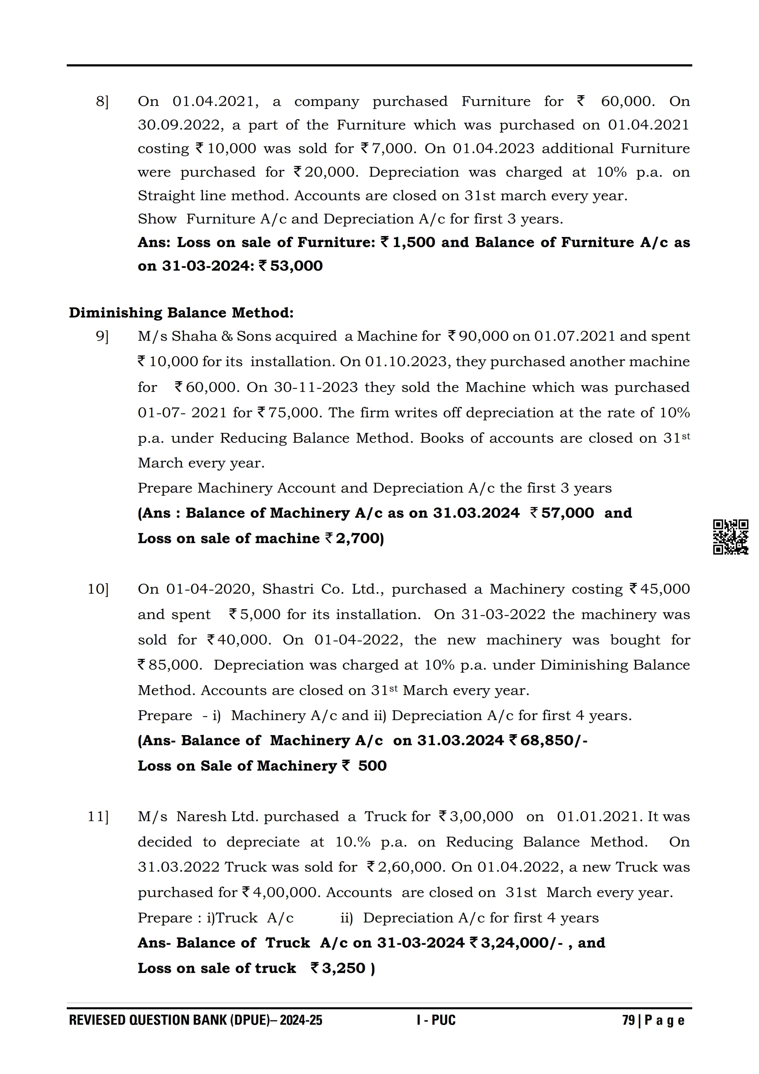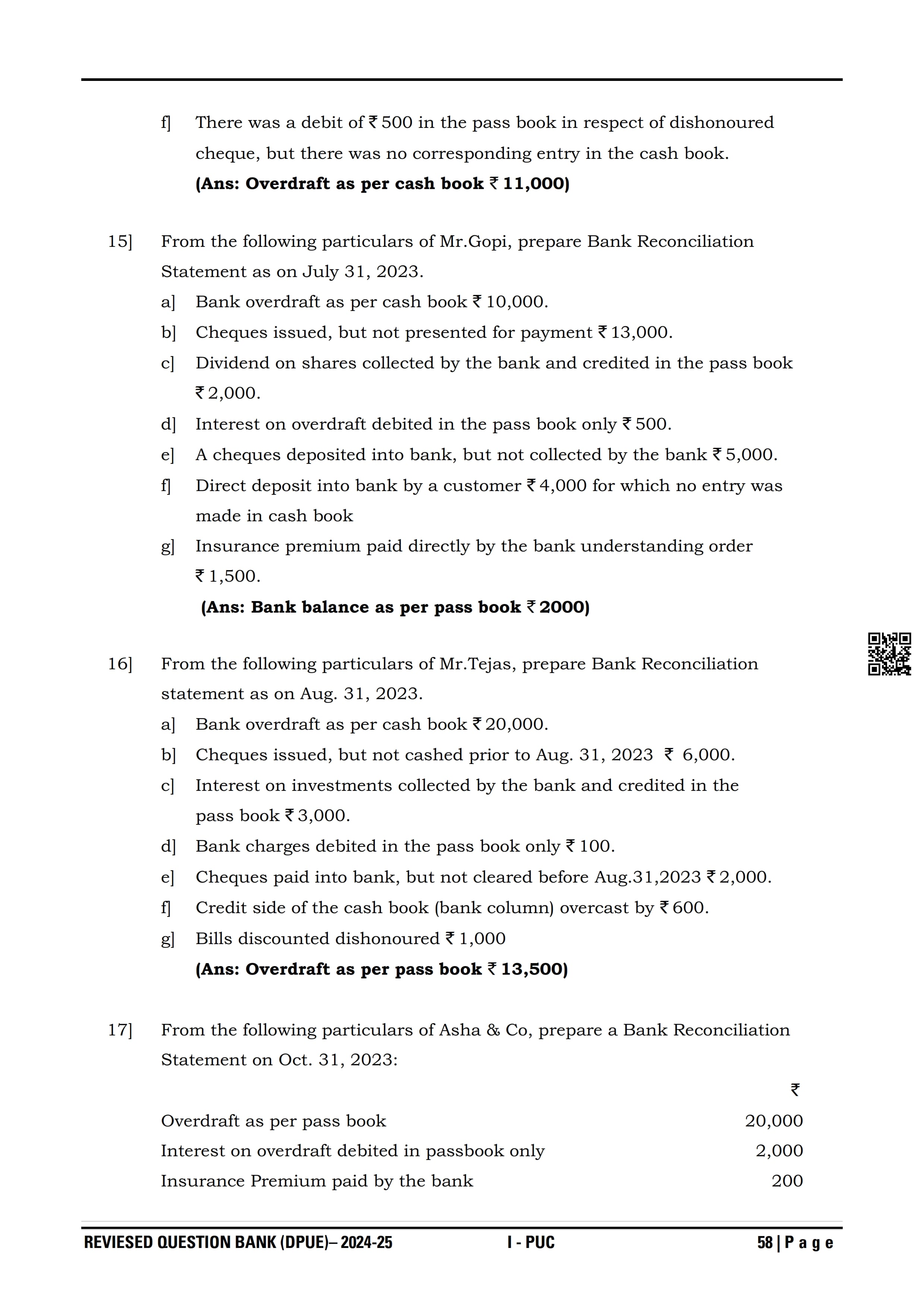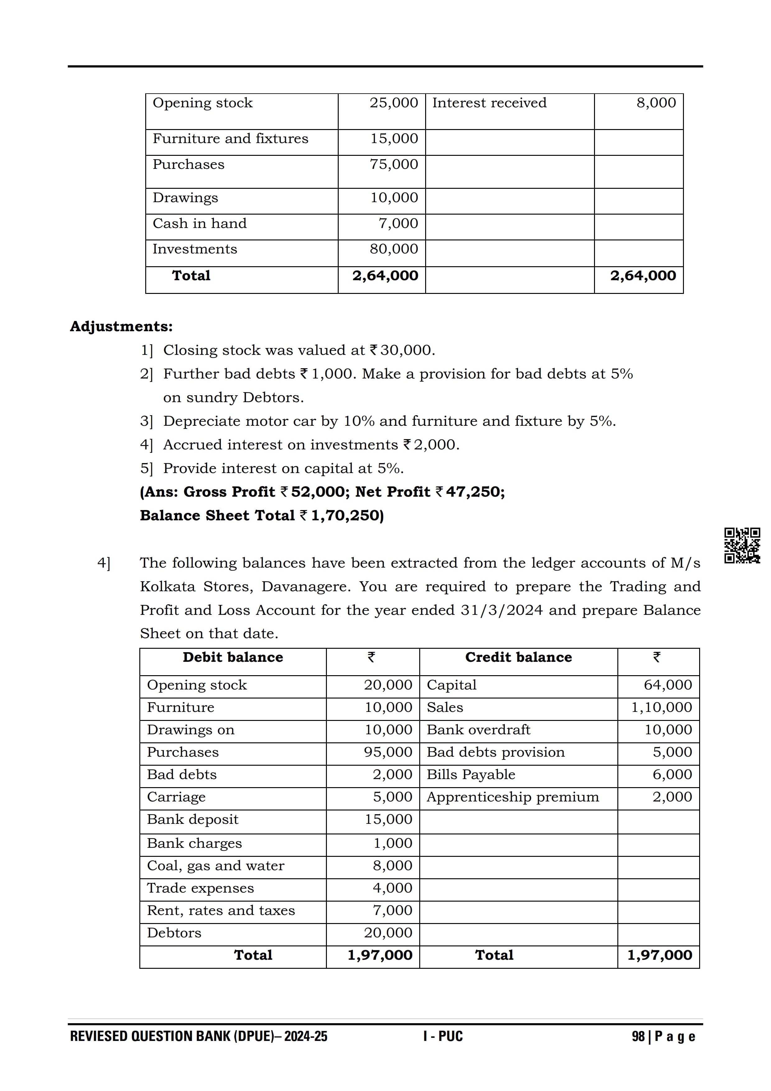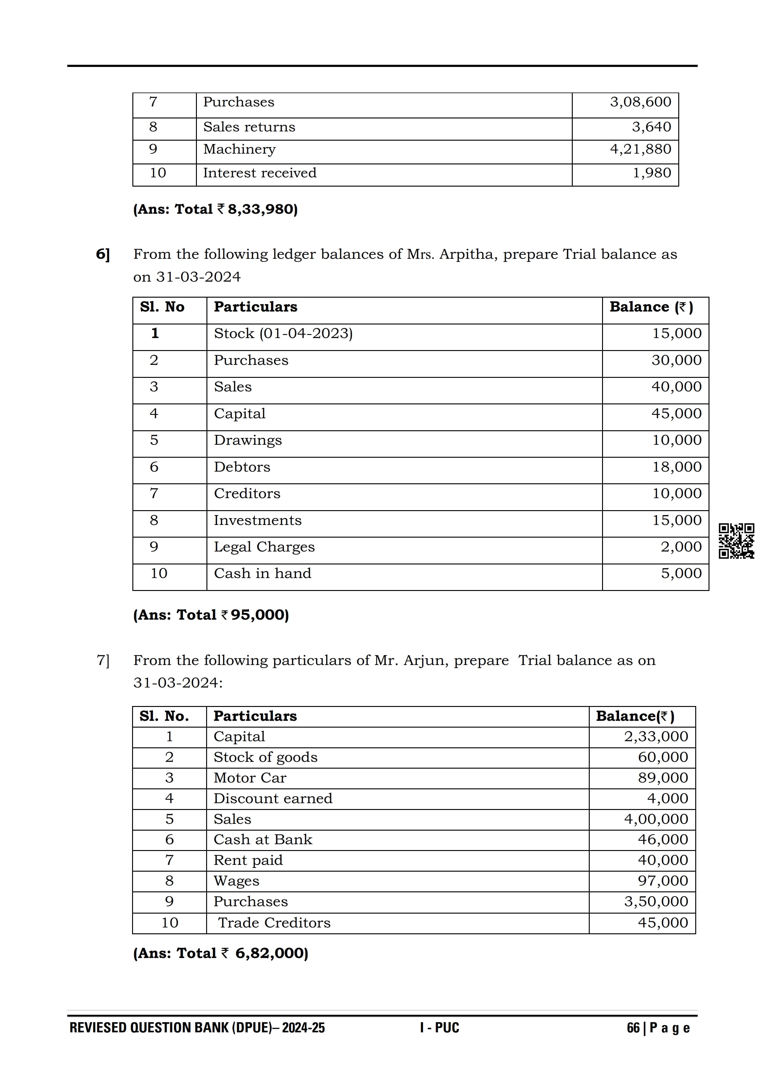 Karnataka I PUC Accountancy Question Bank