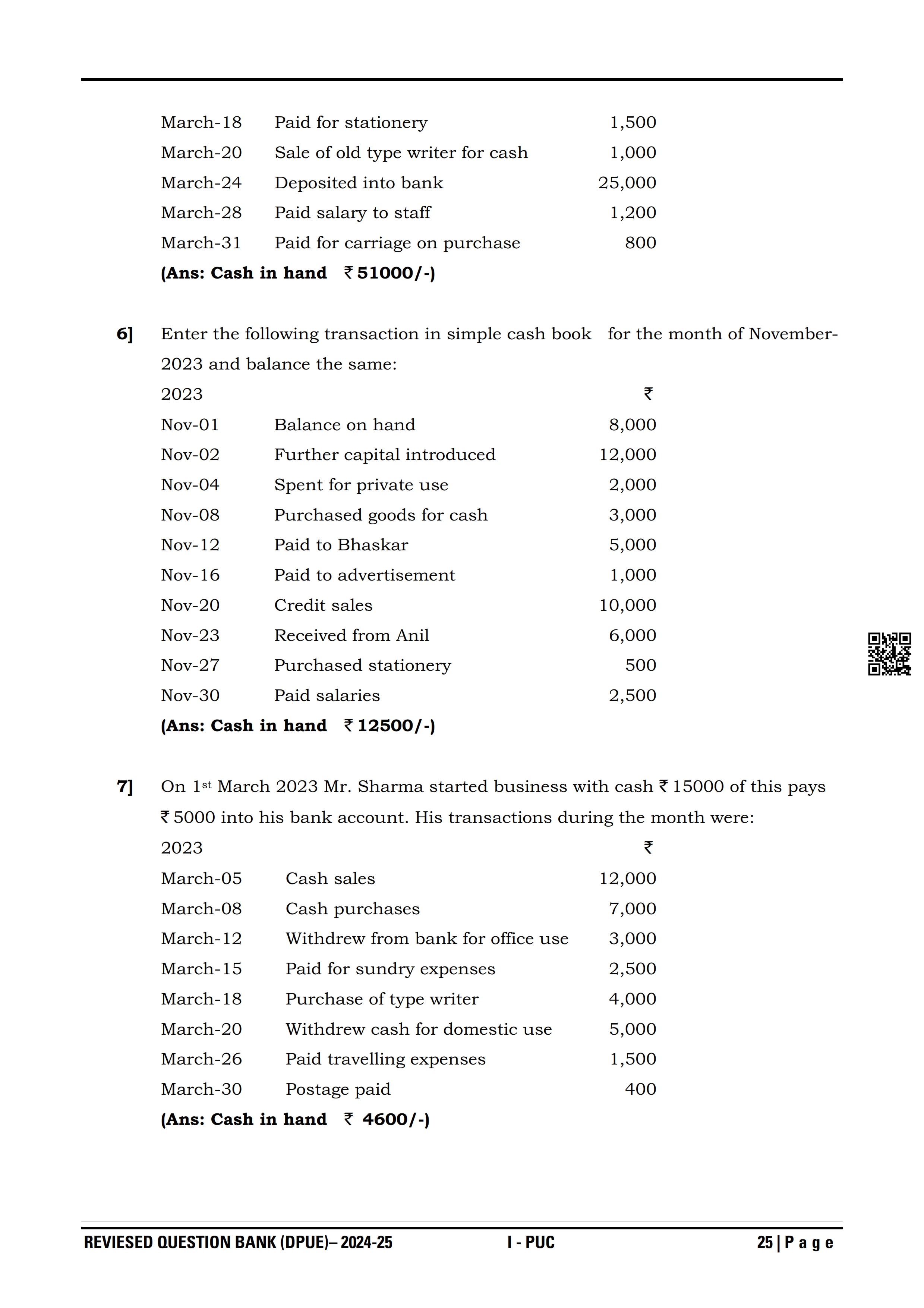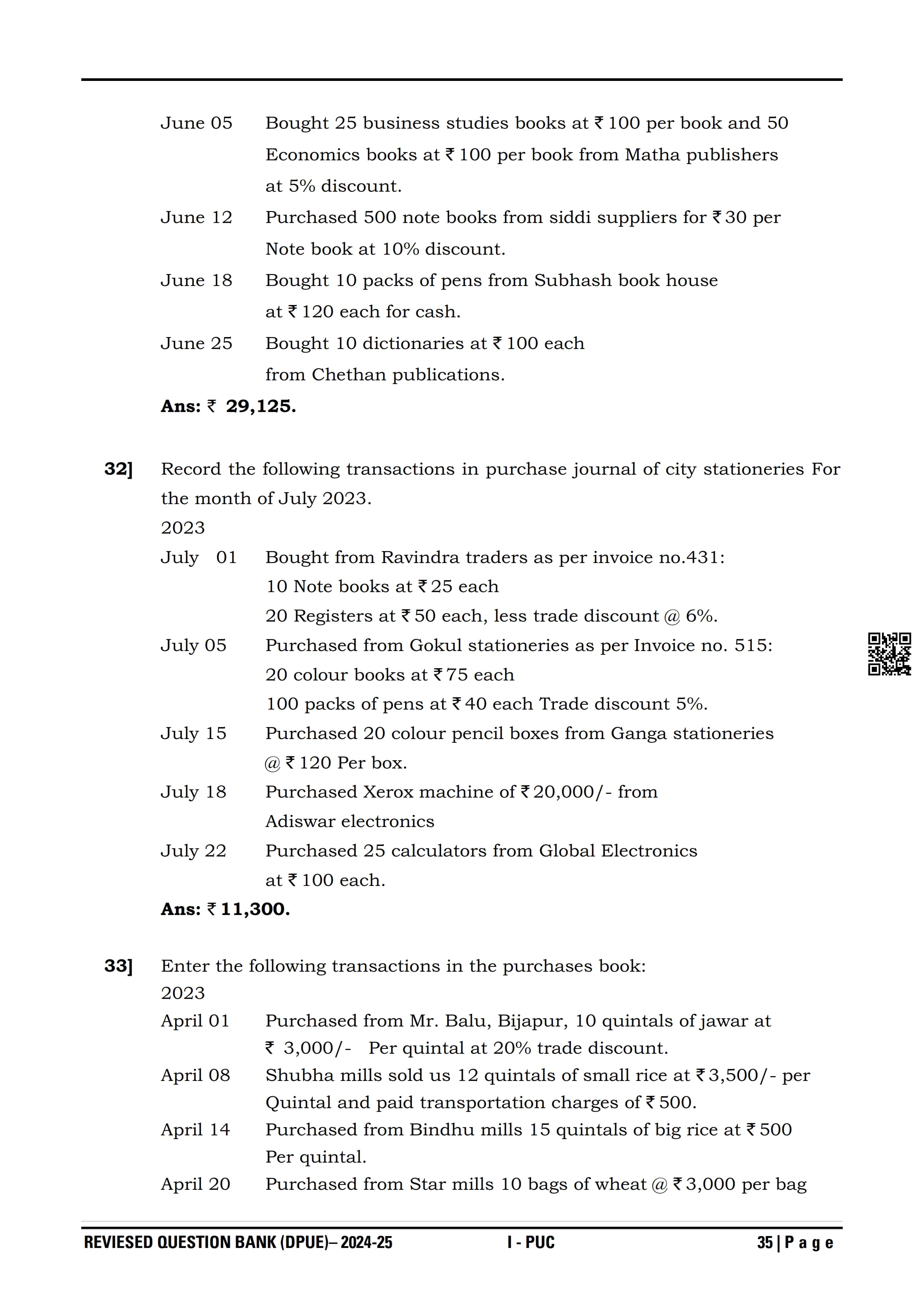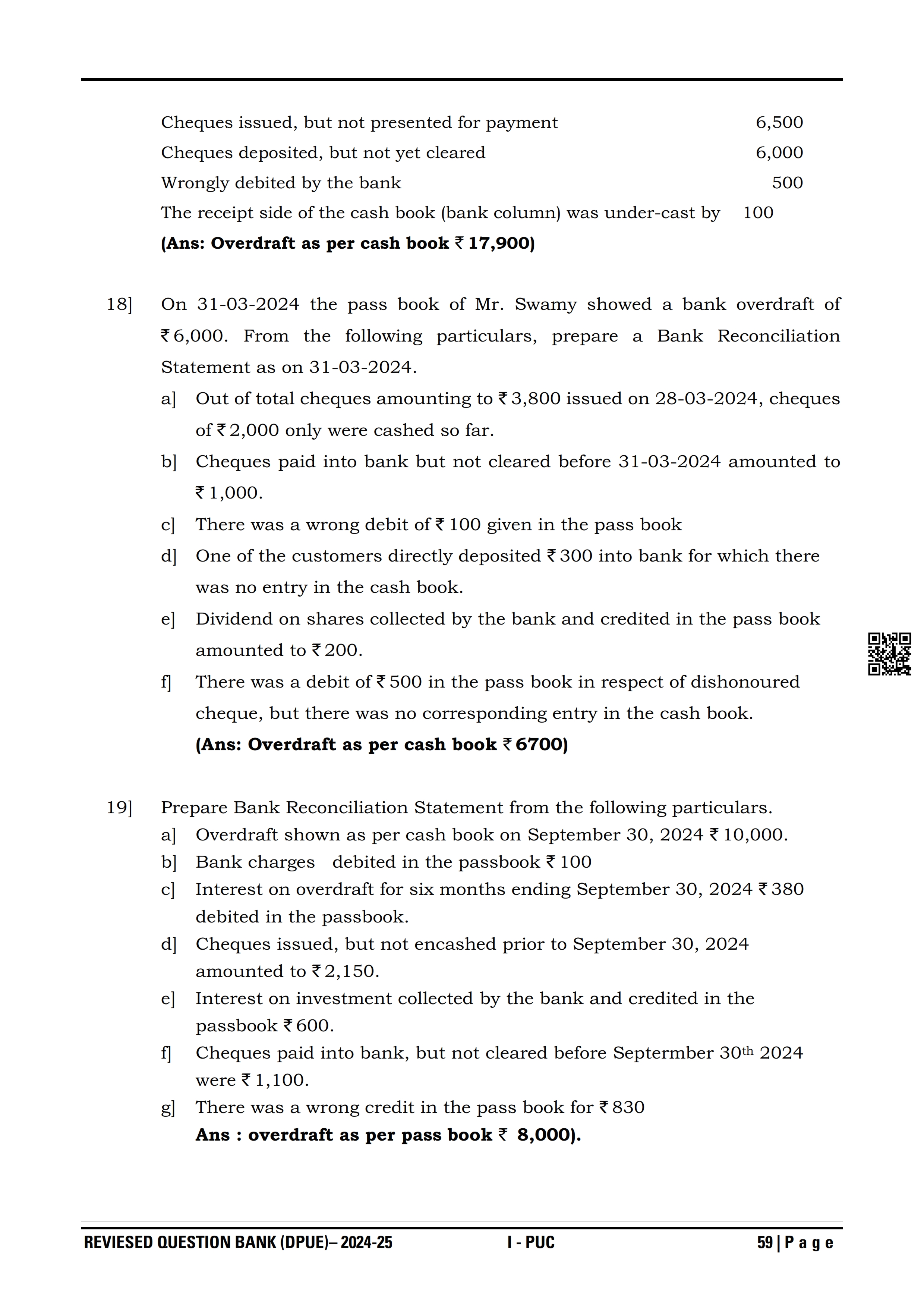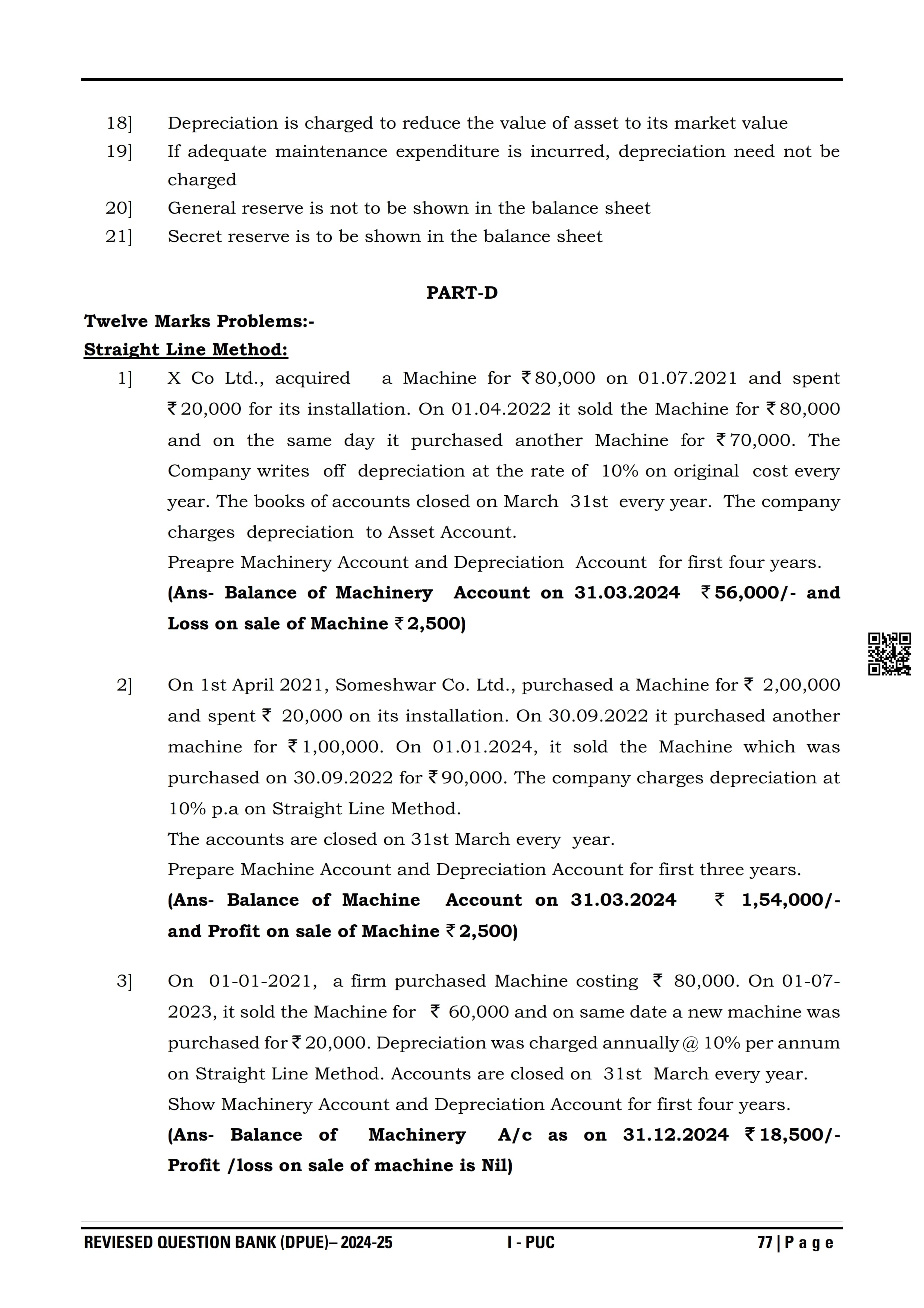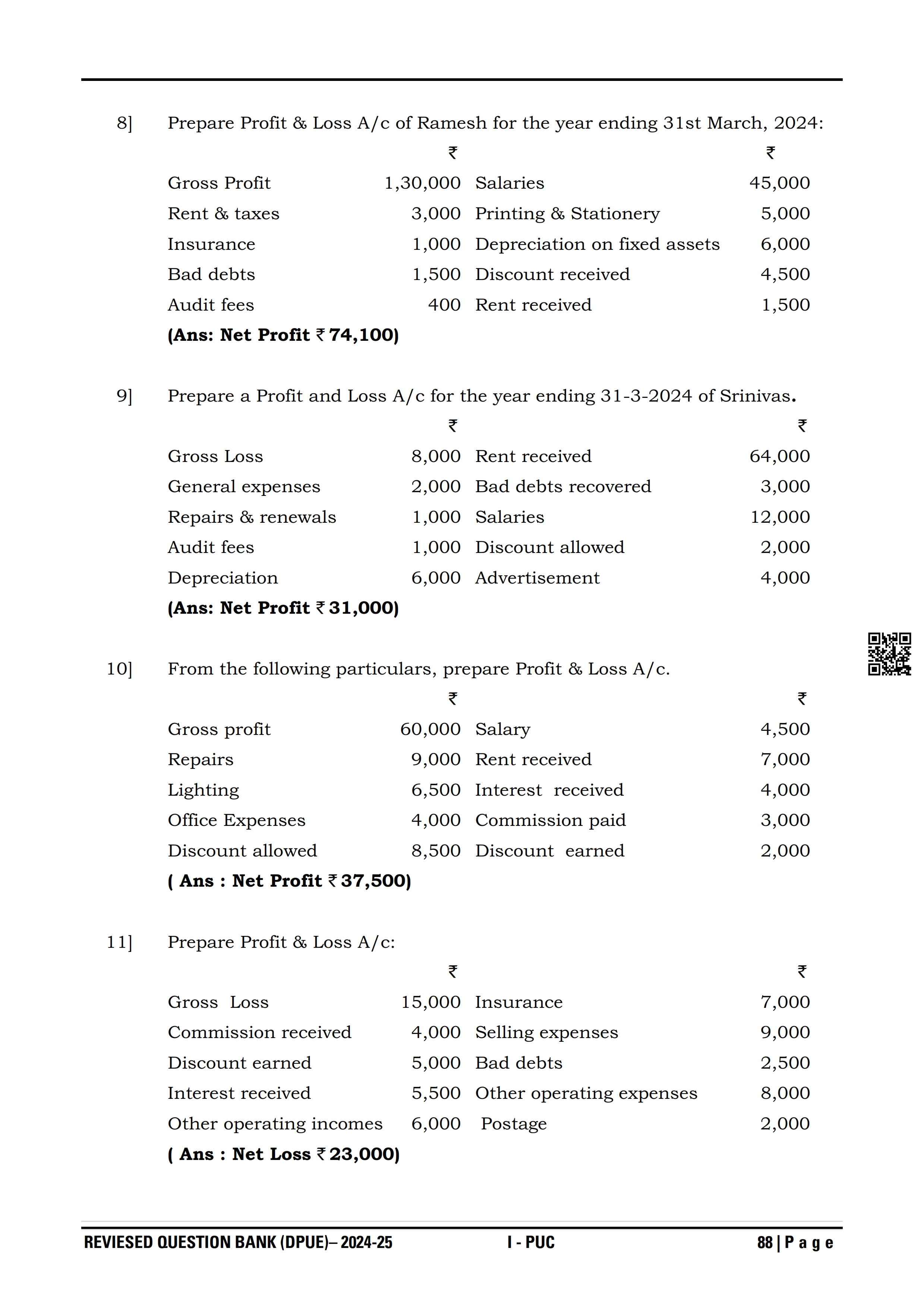 Karnataka I PUC Accountancy Question Bank