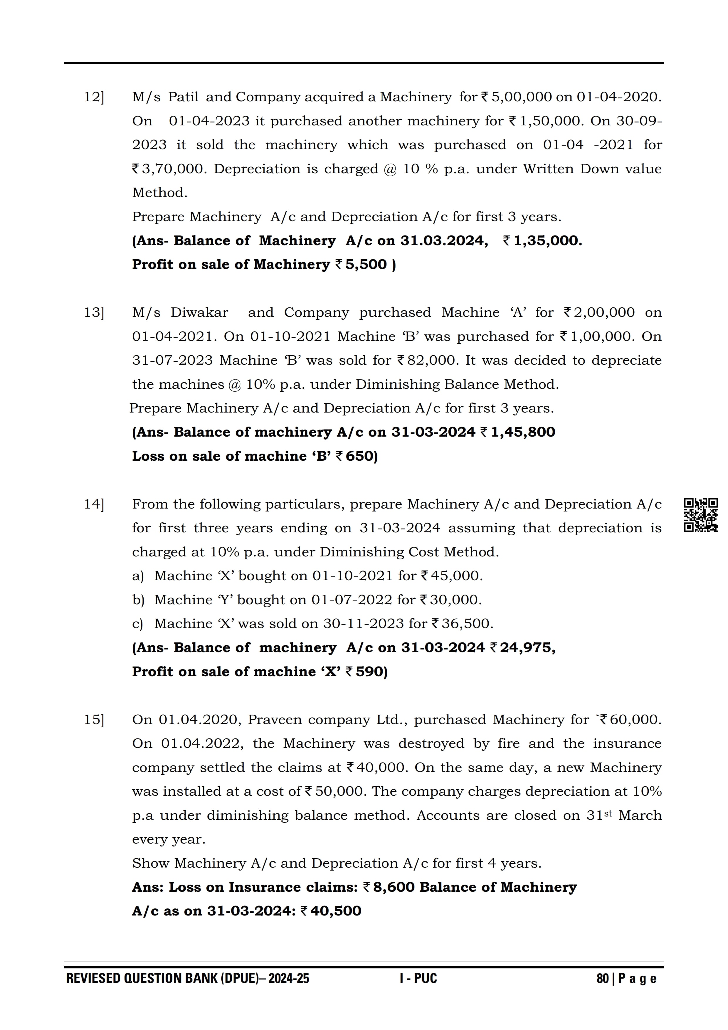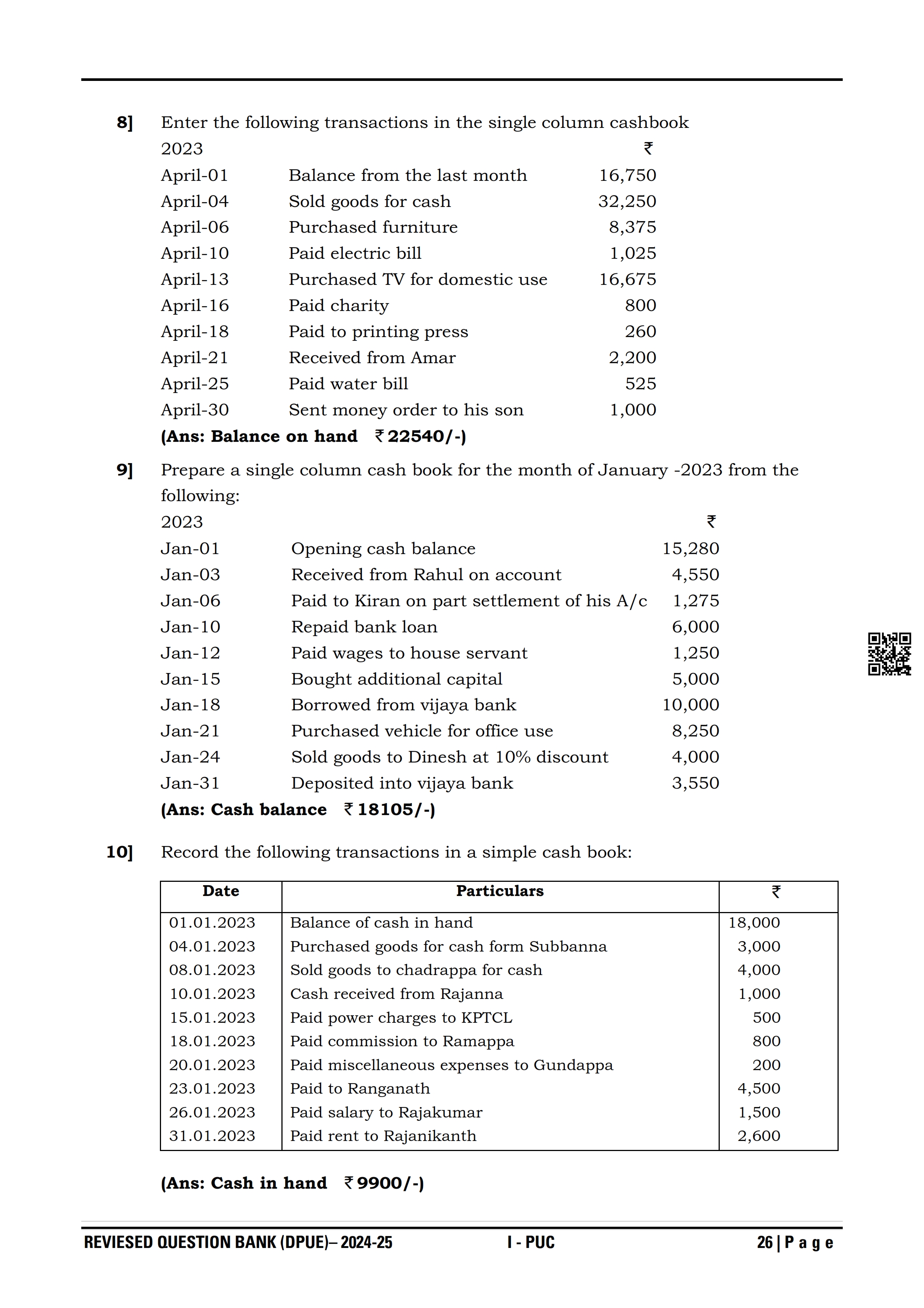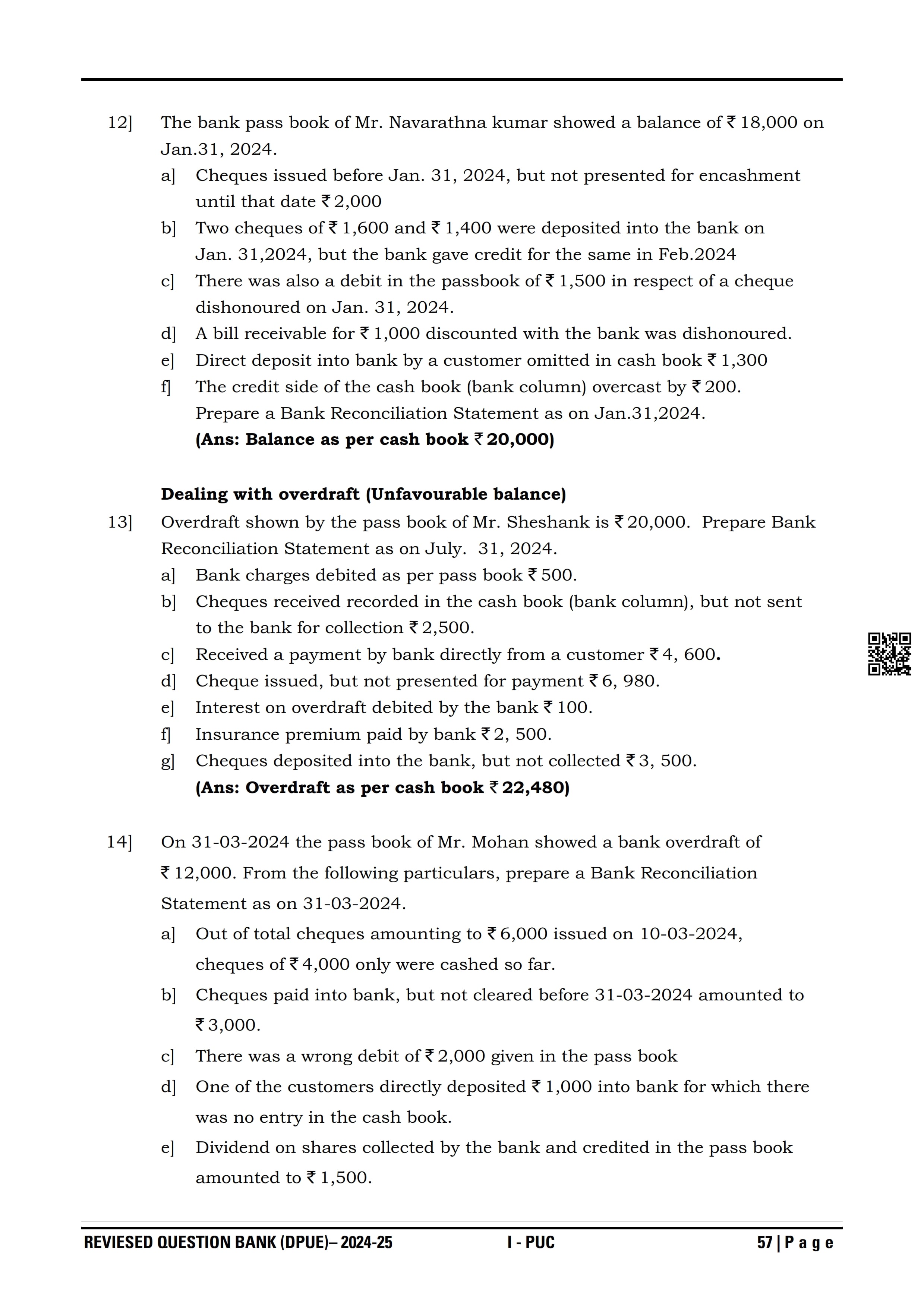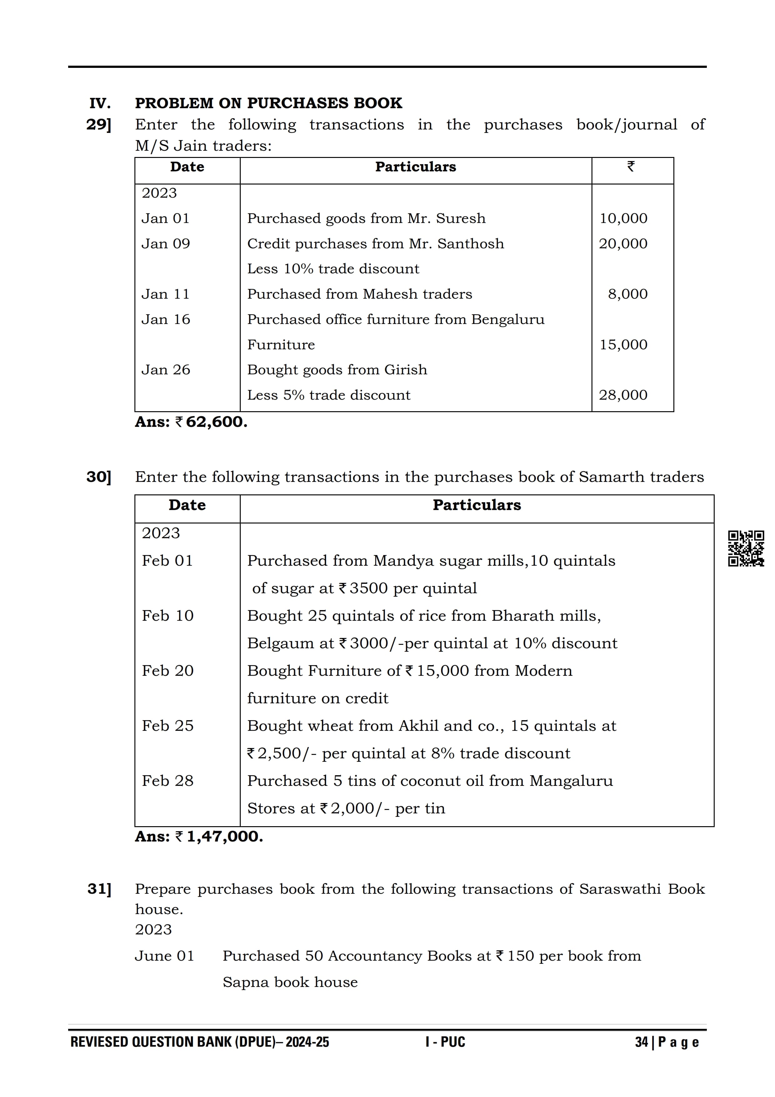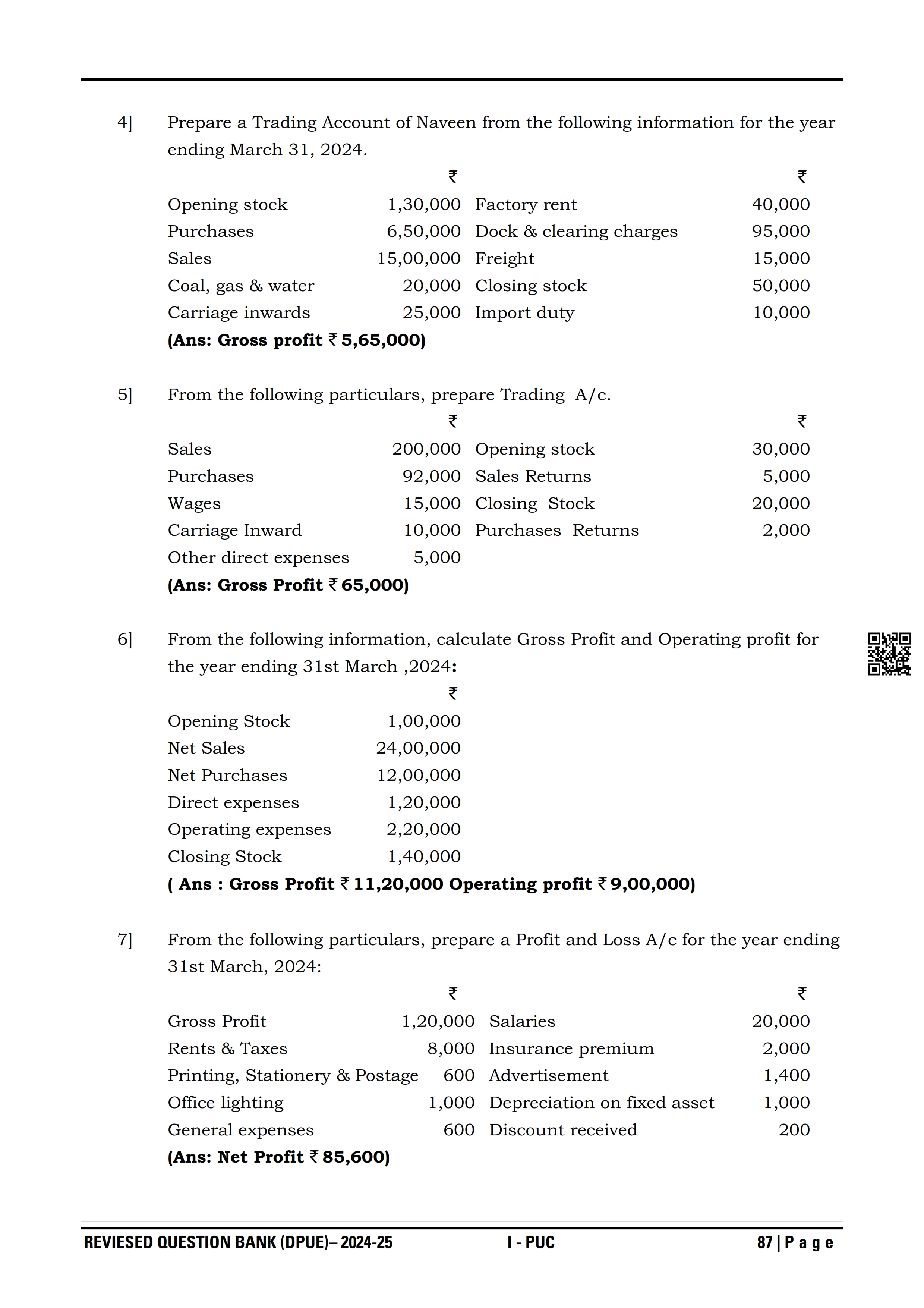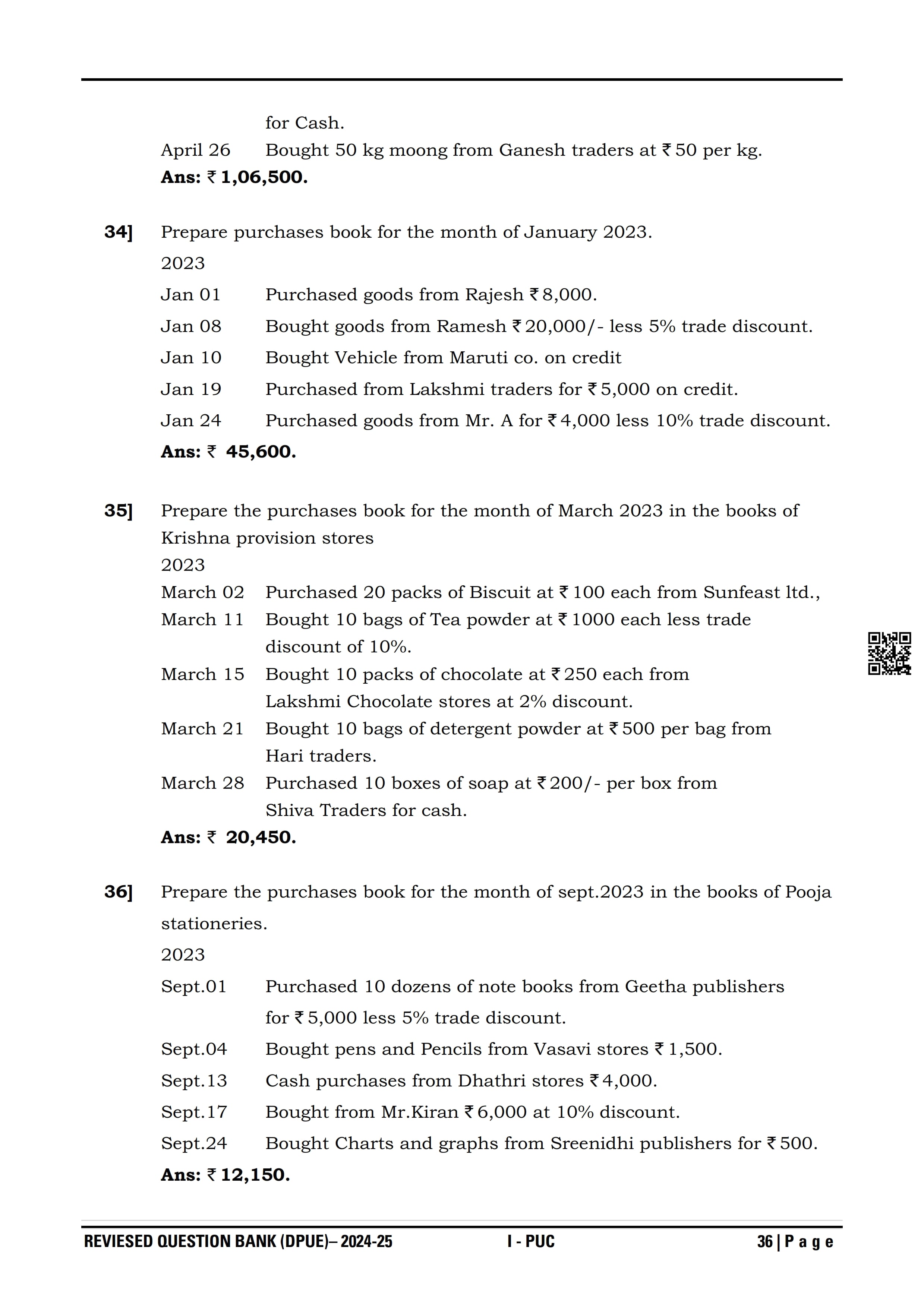 Karnataka I PUC Accountancy Question Bank