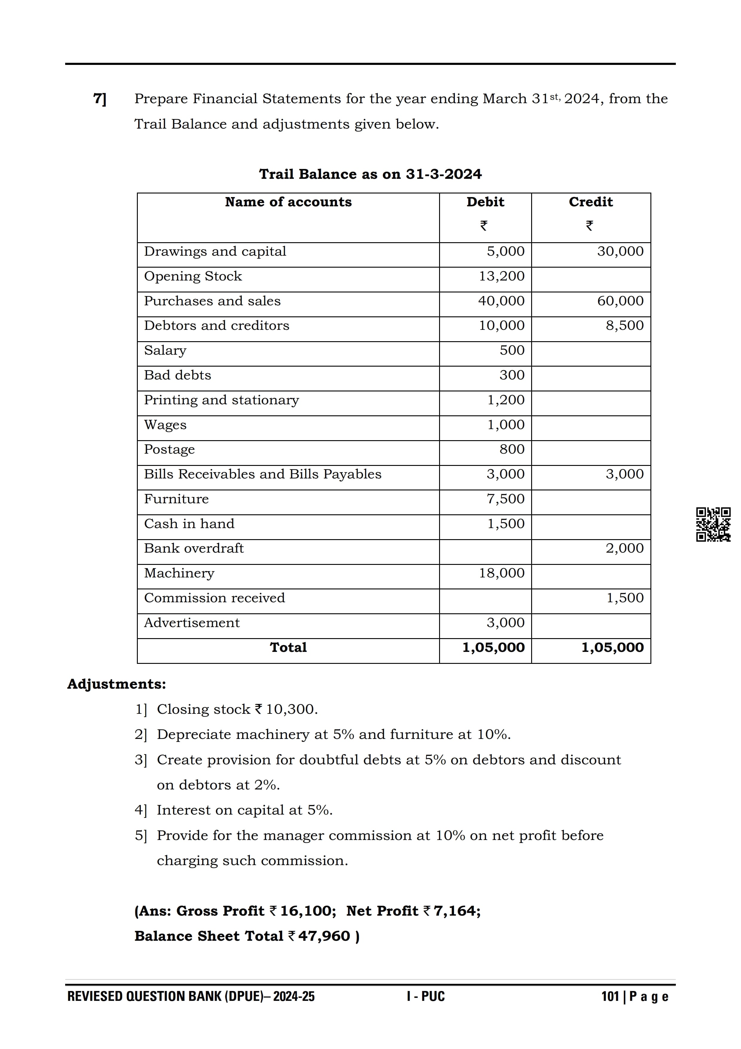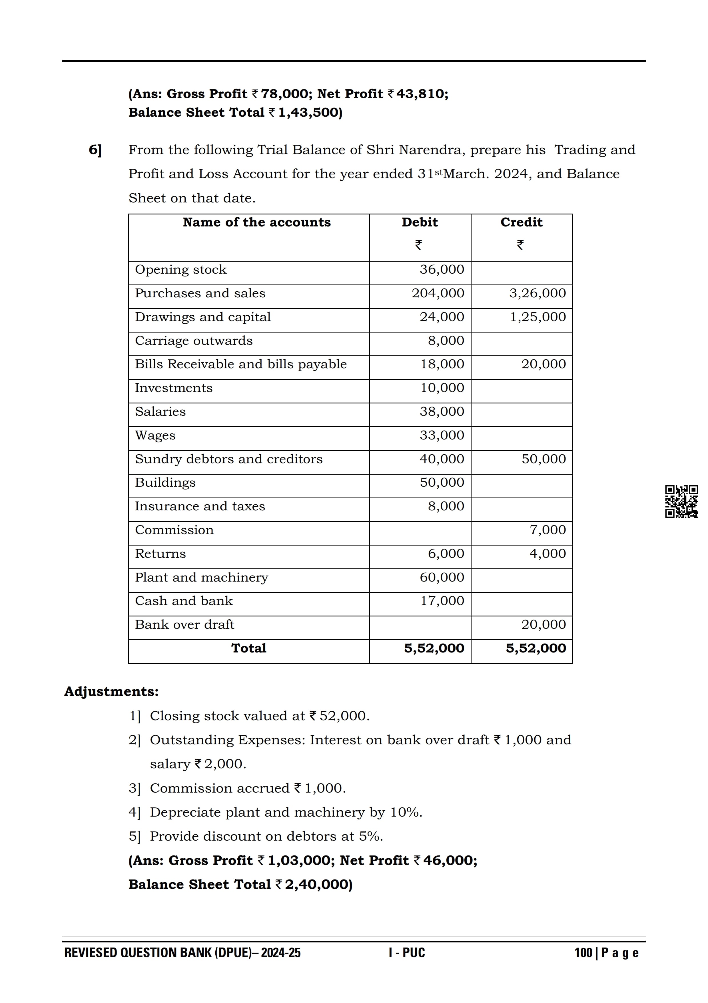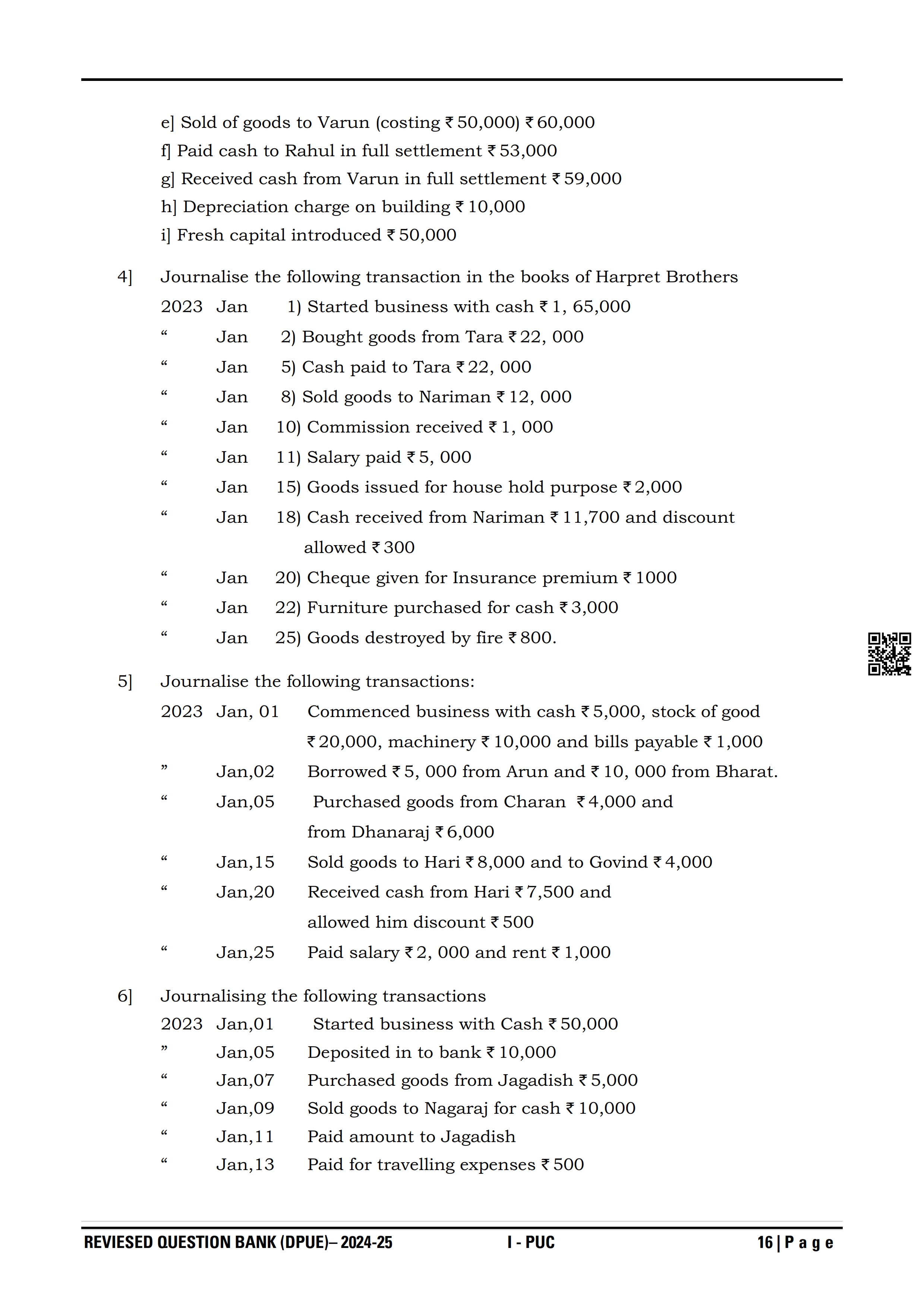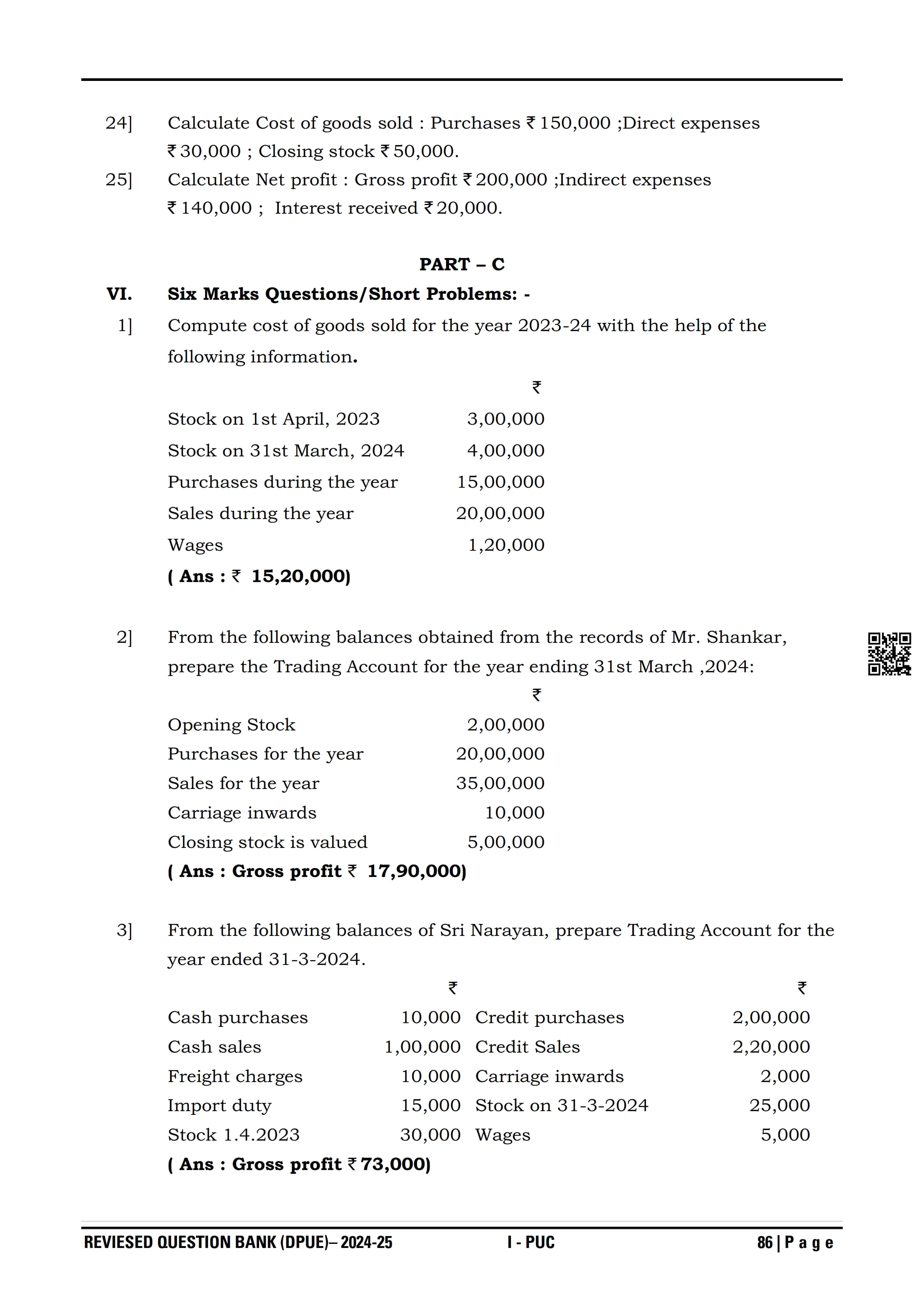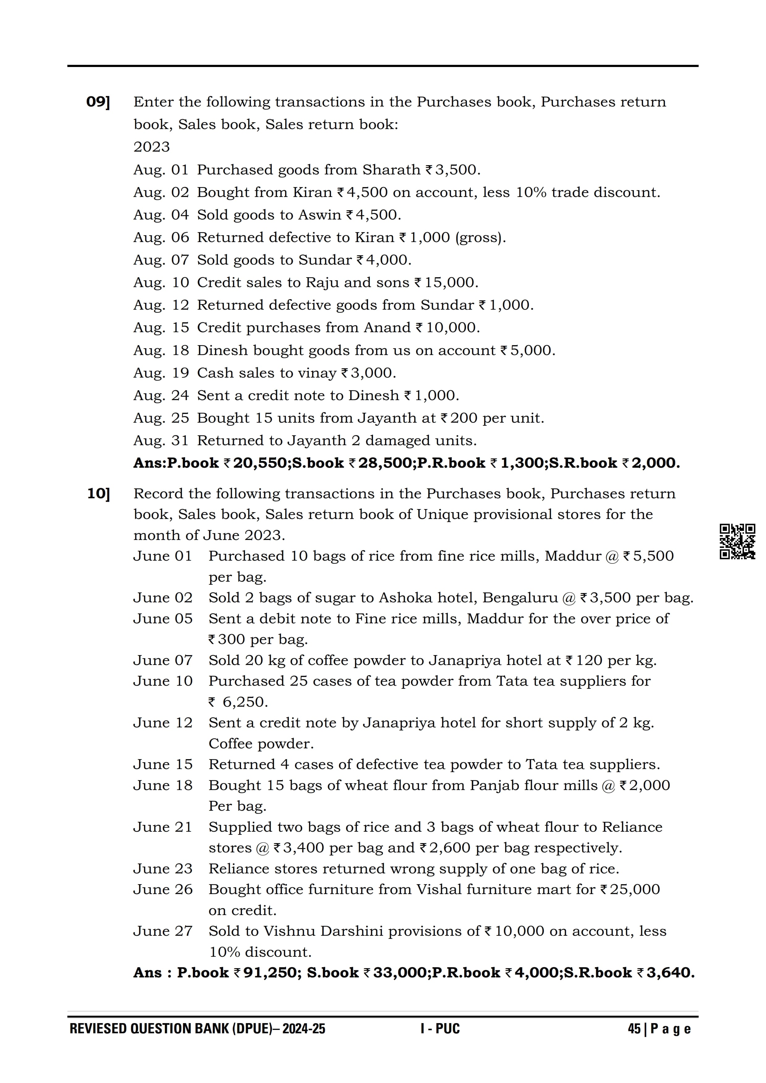 Karnataka I PUC Accountancy Question Bank
