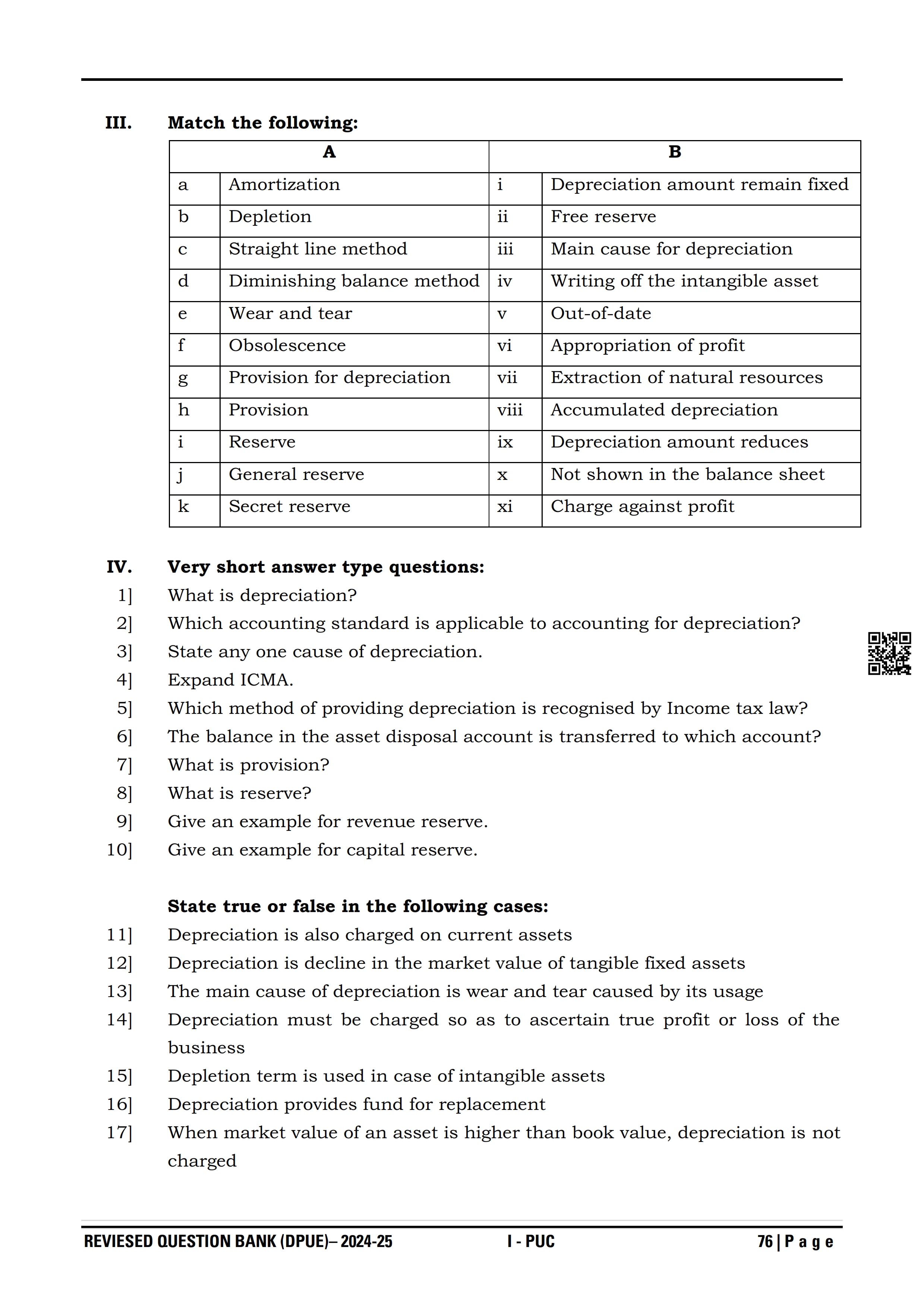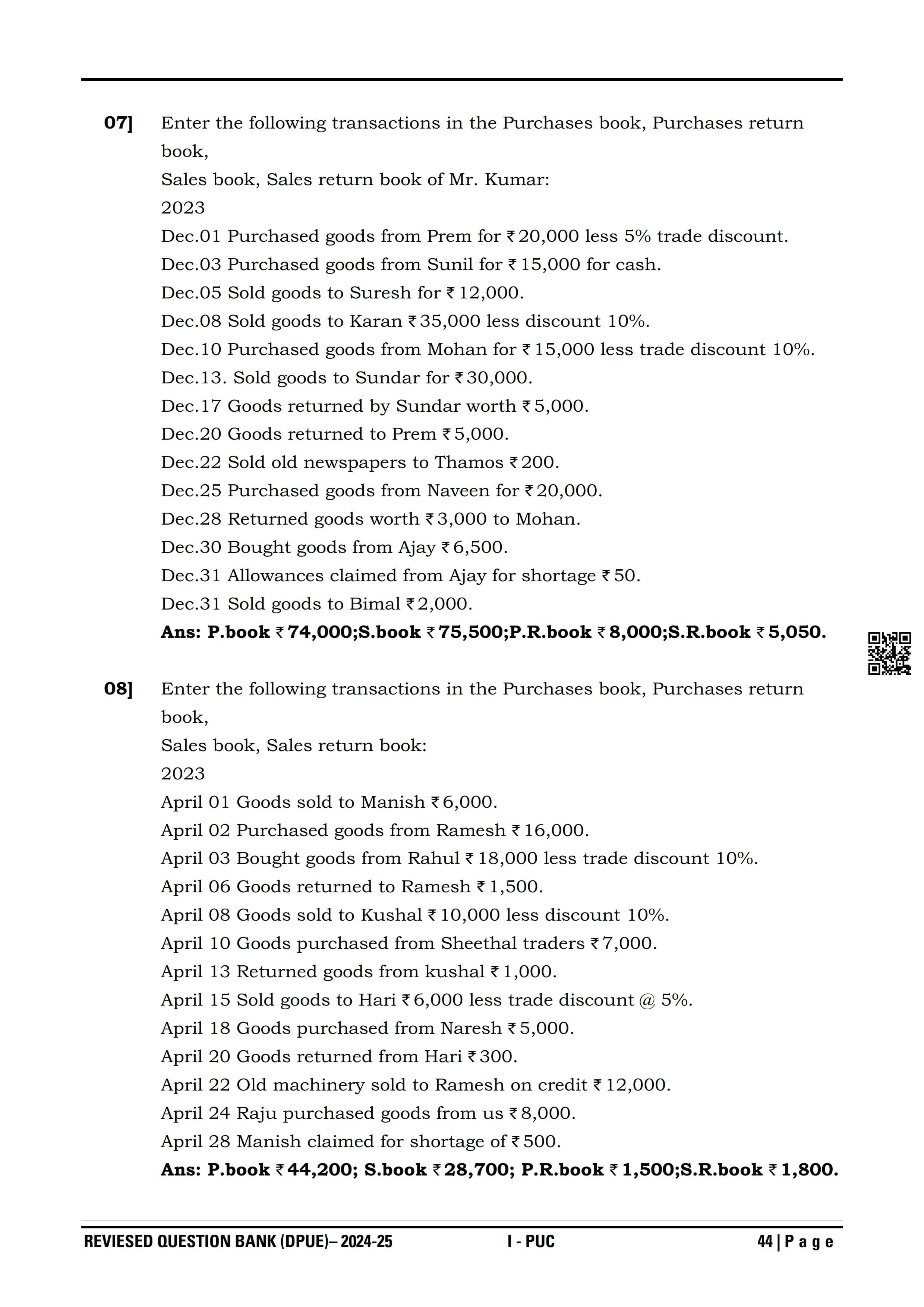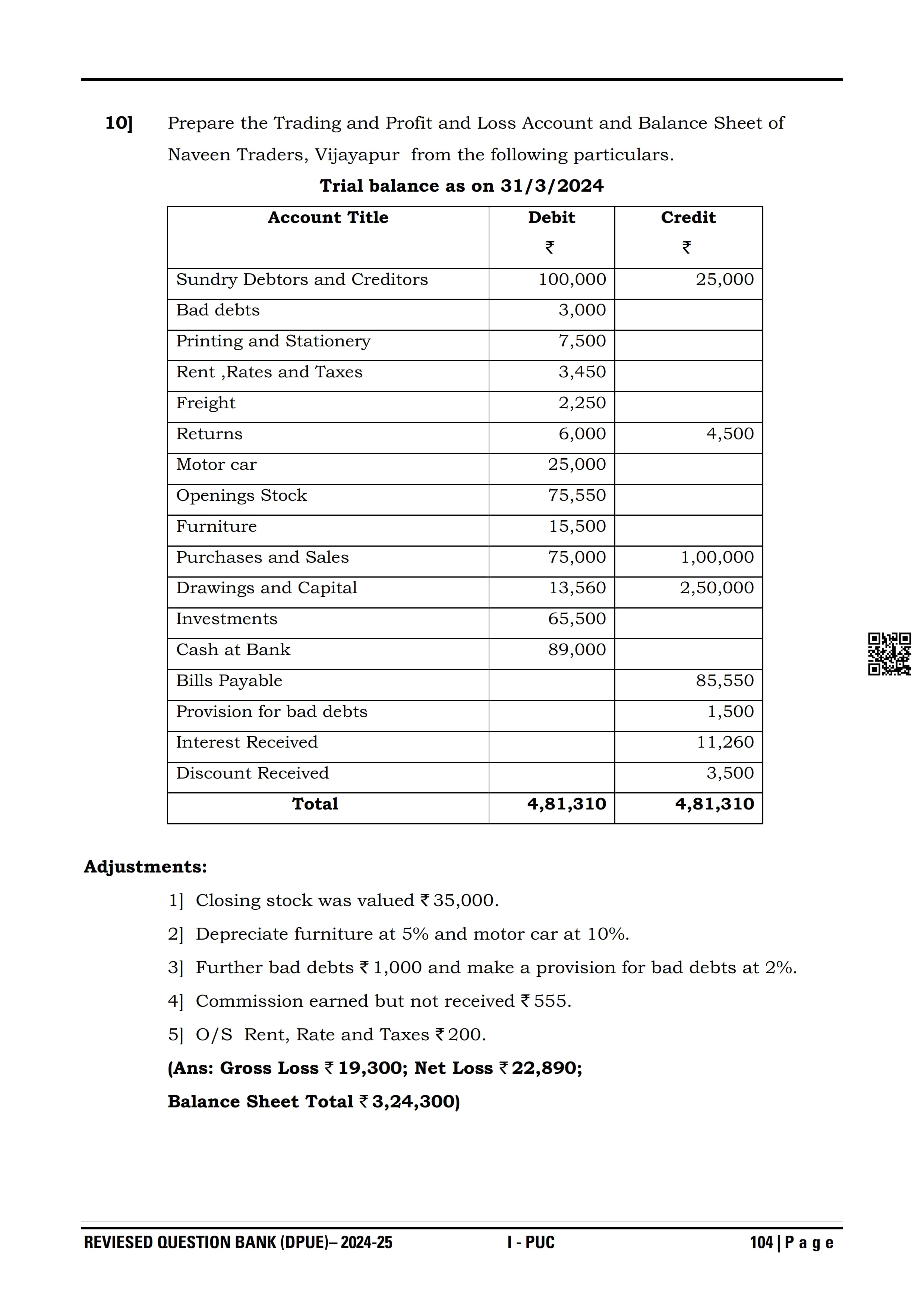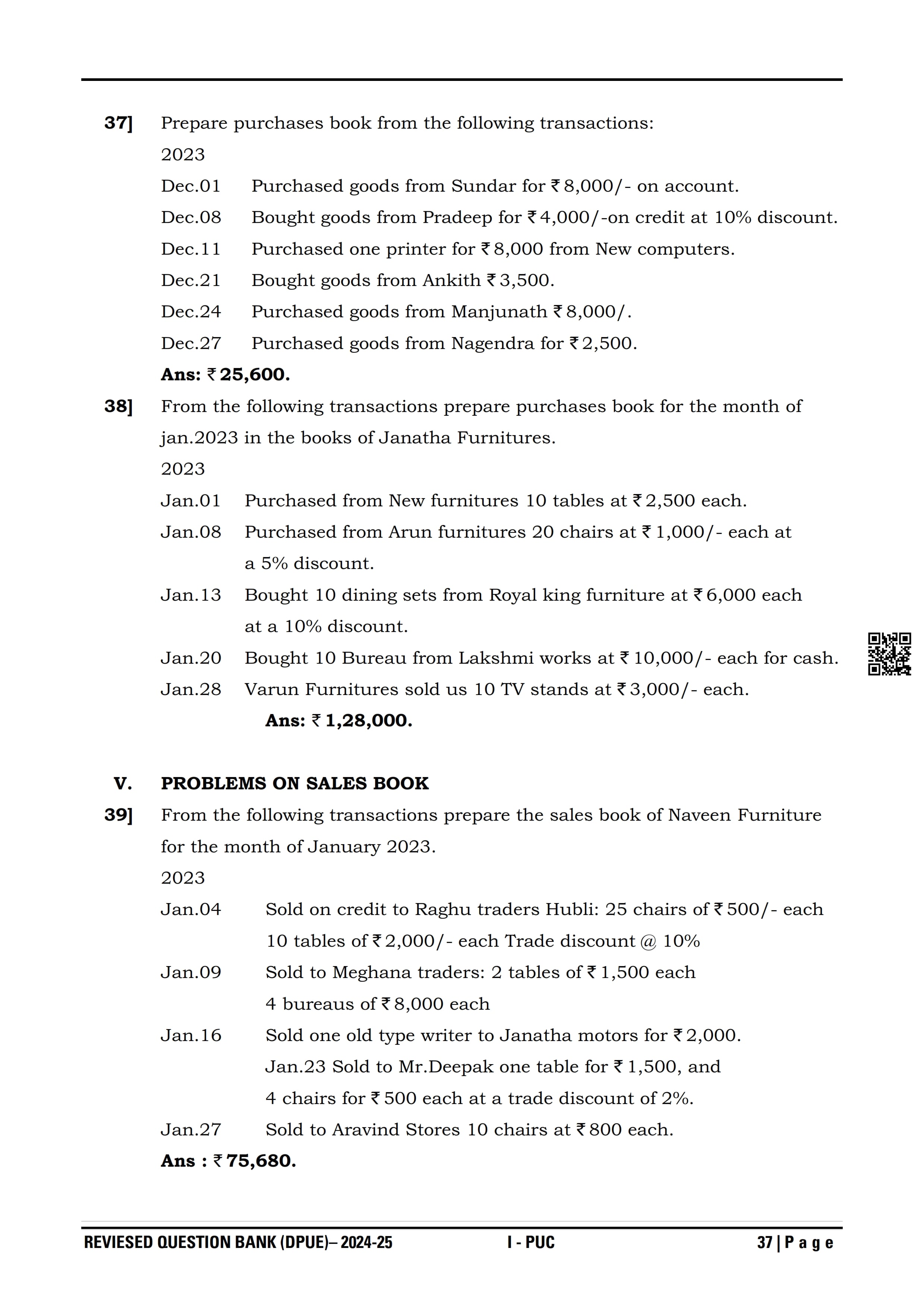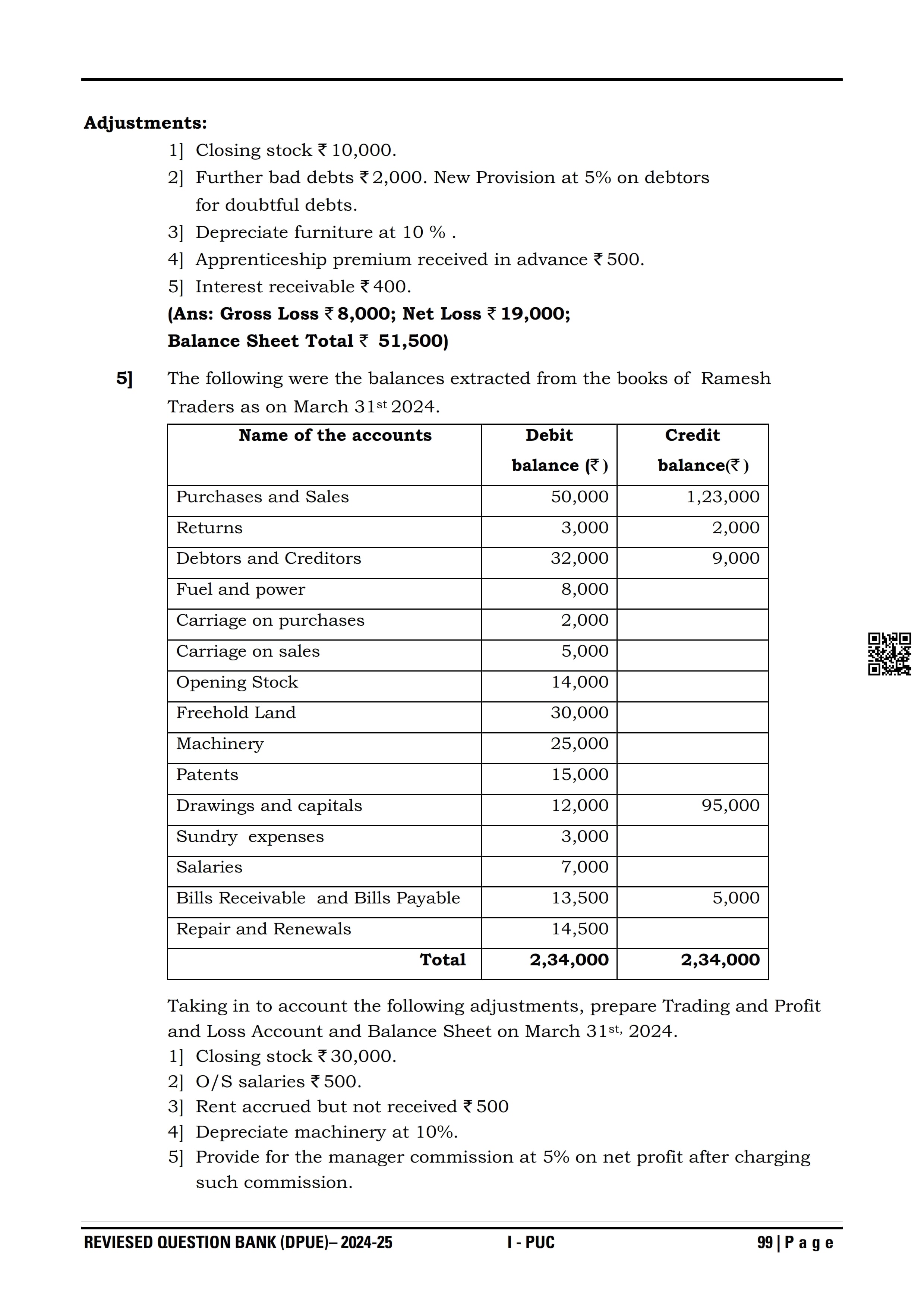 Karnataka I PUC Accountancy Question Bank