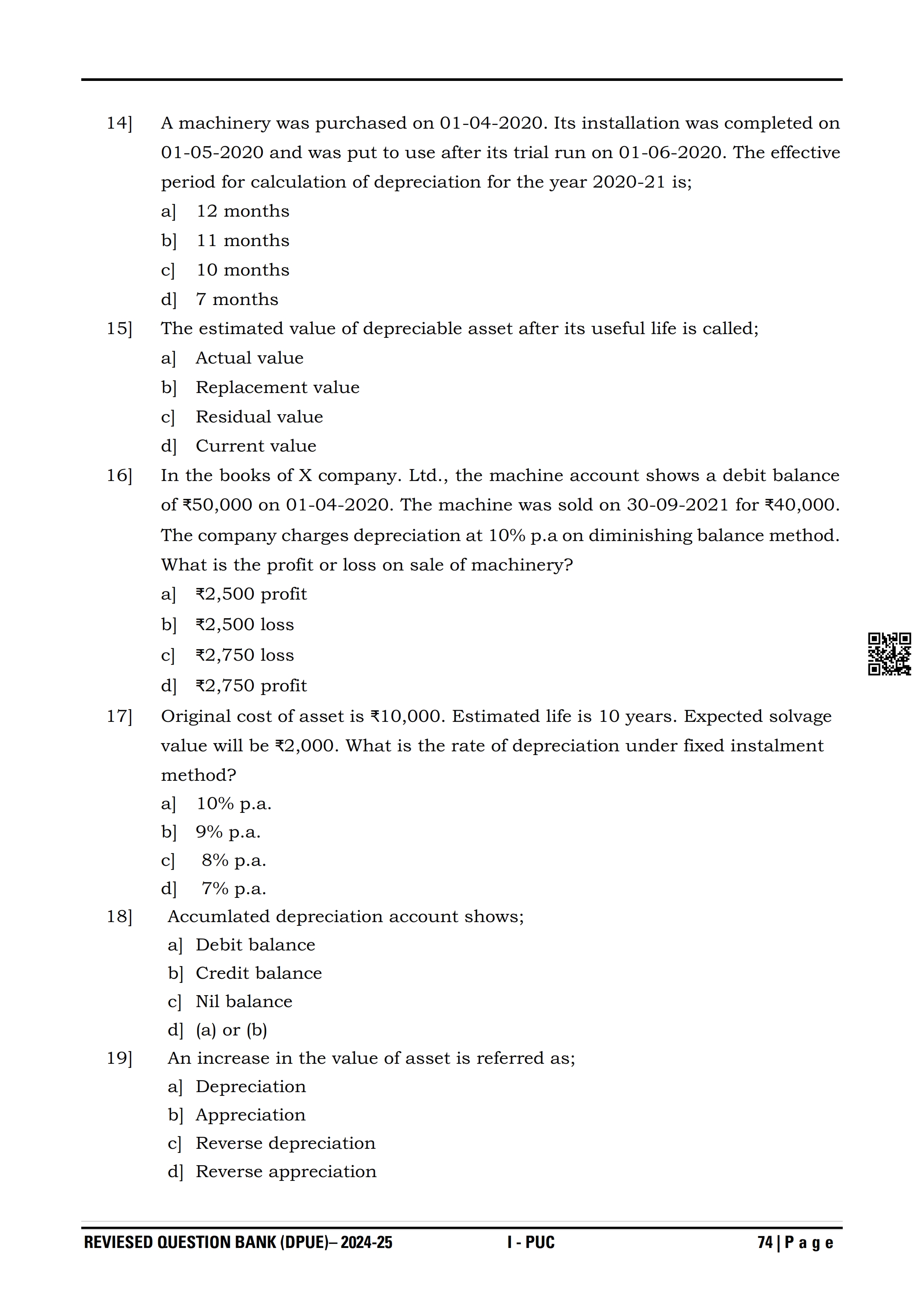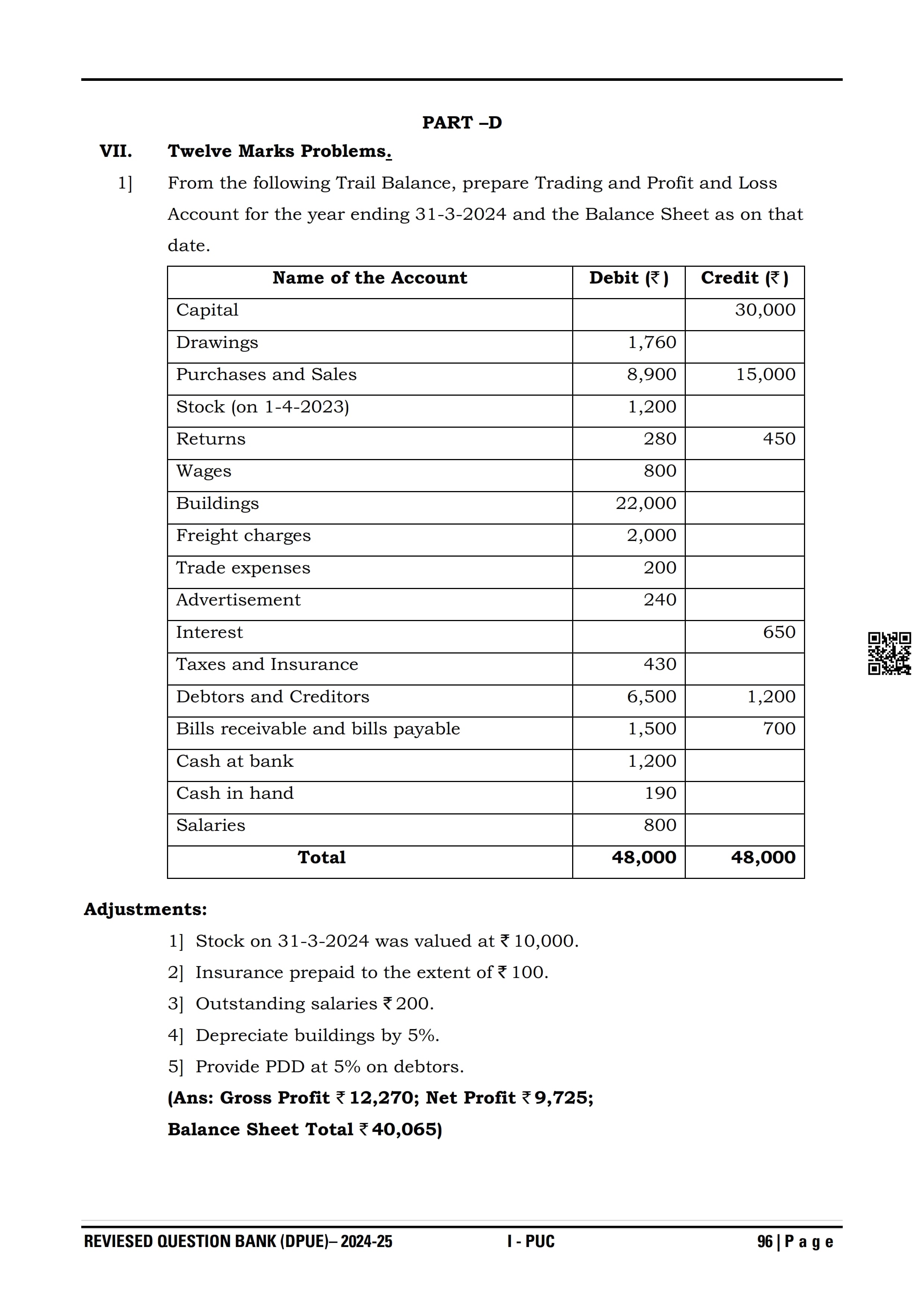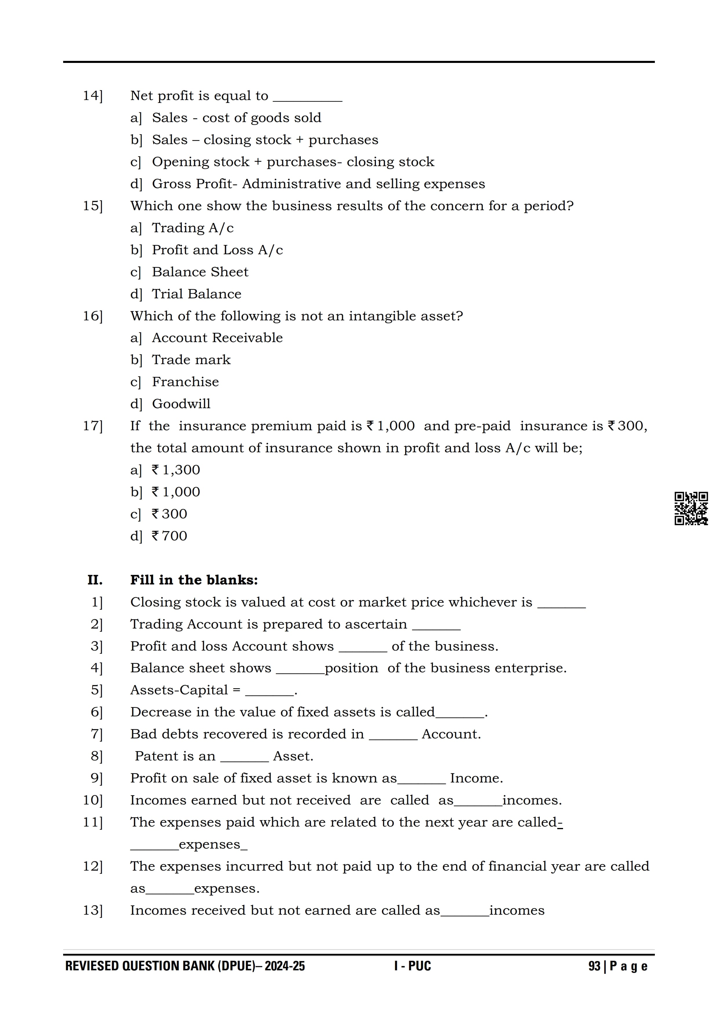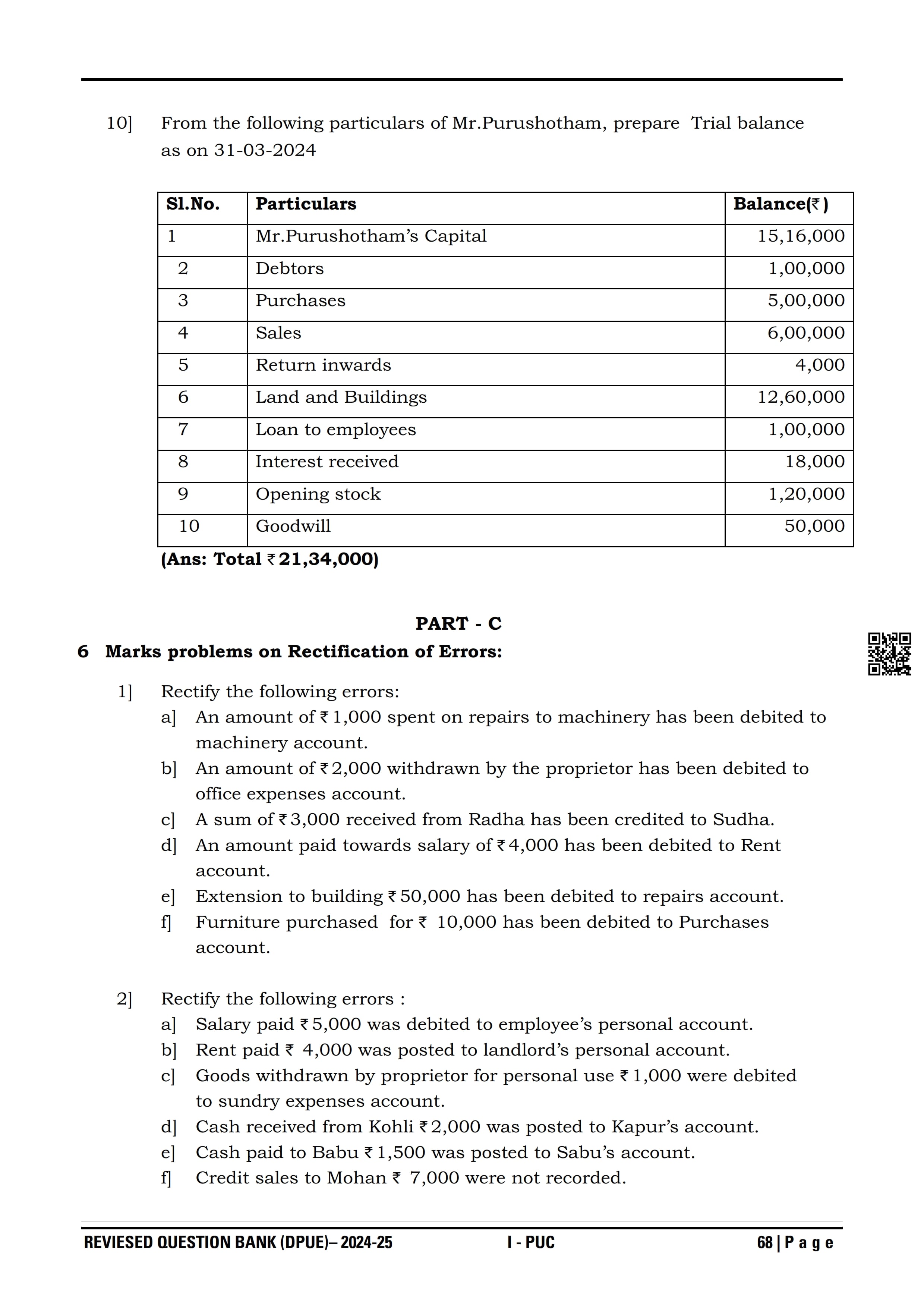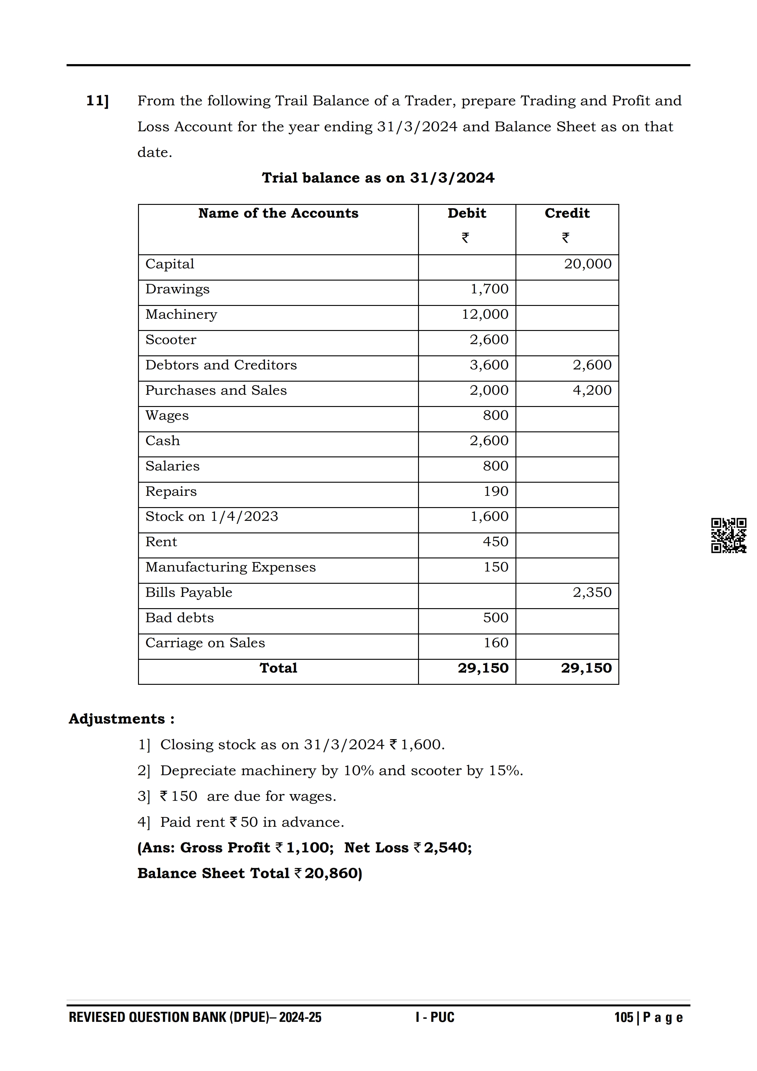 Karnataka I PUC Accountancy Question Bank