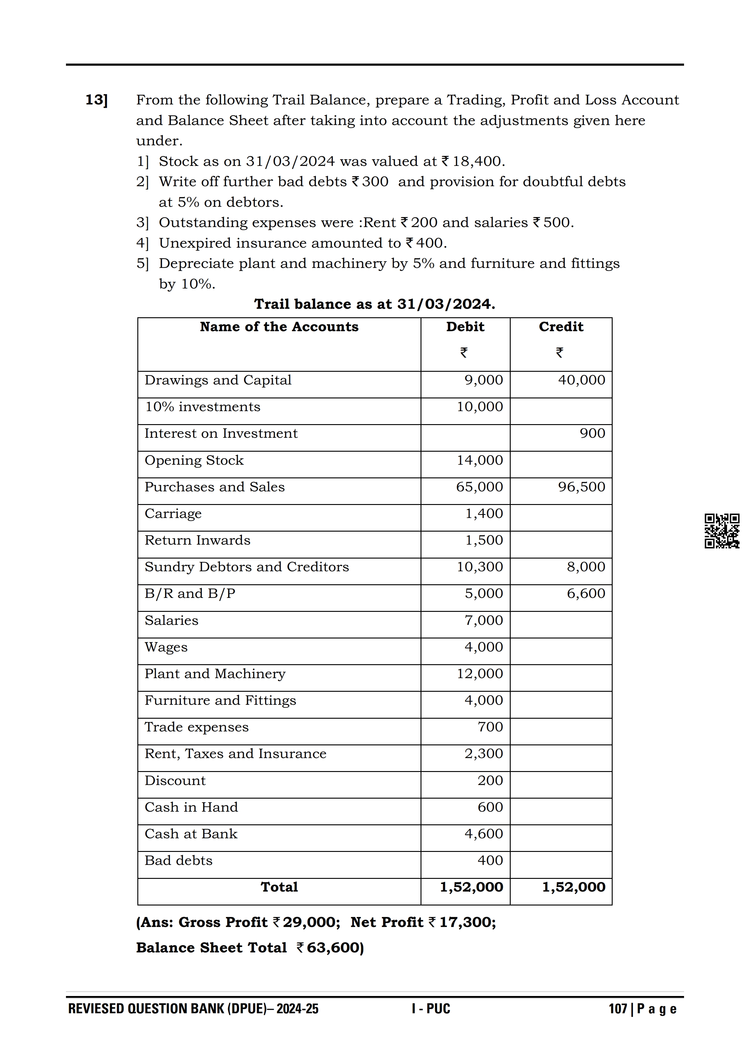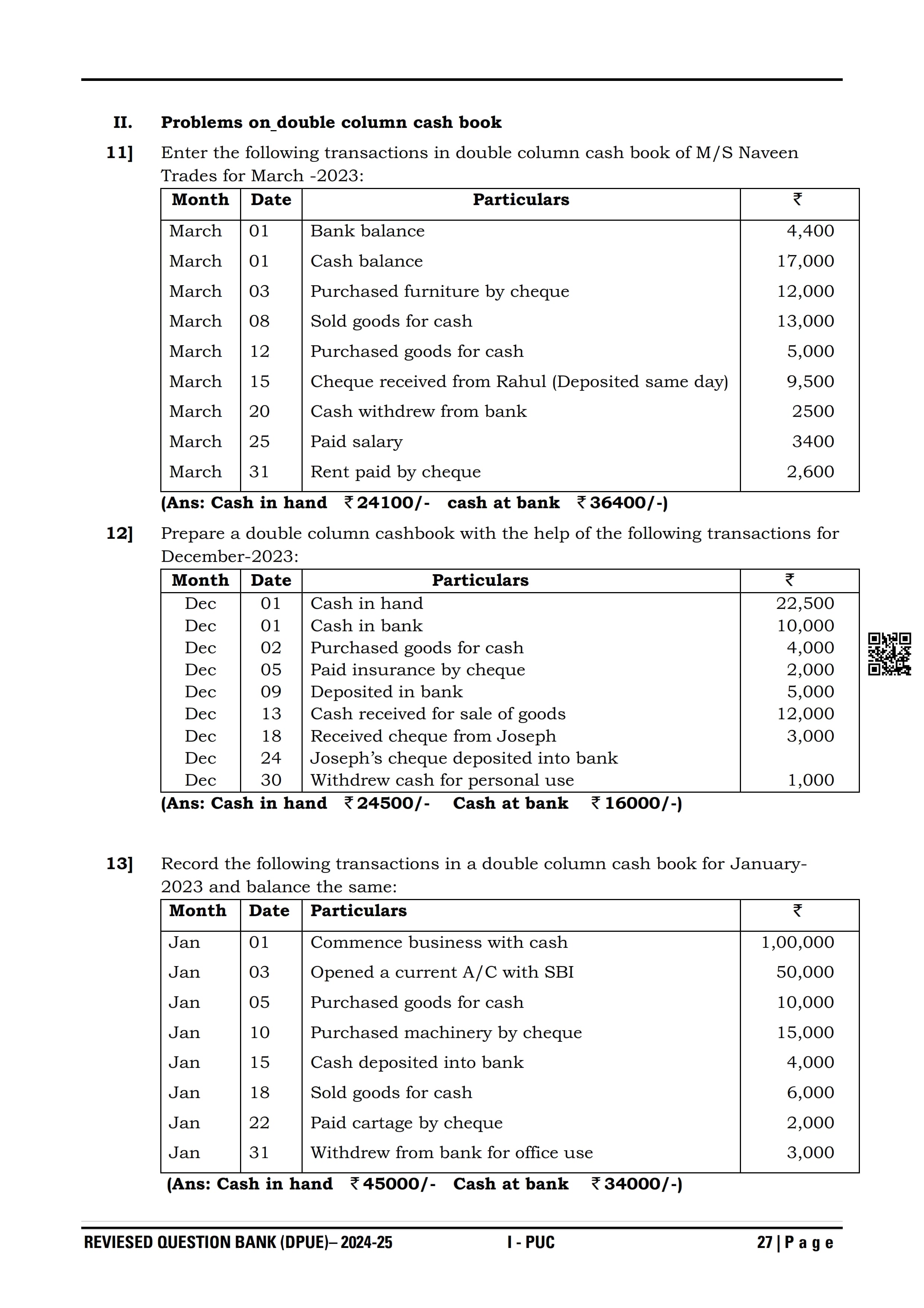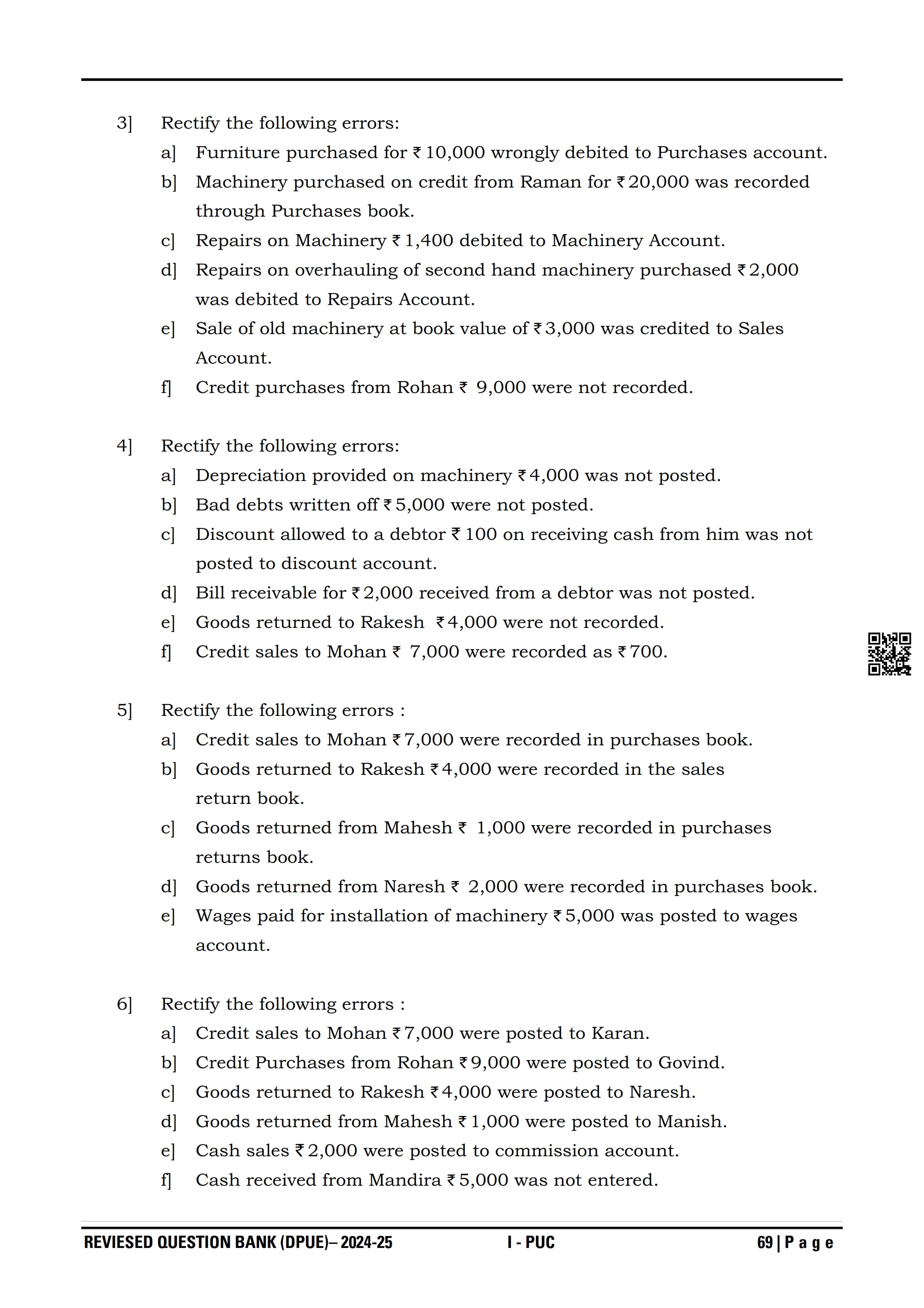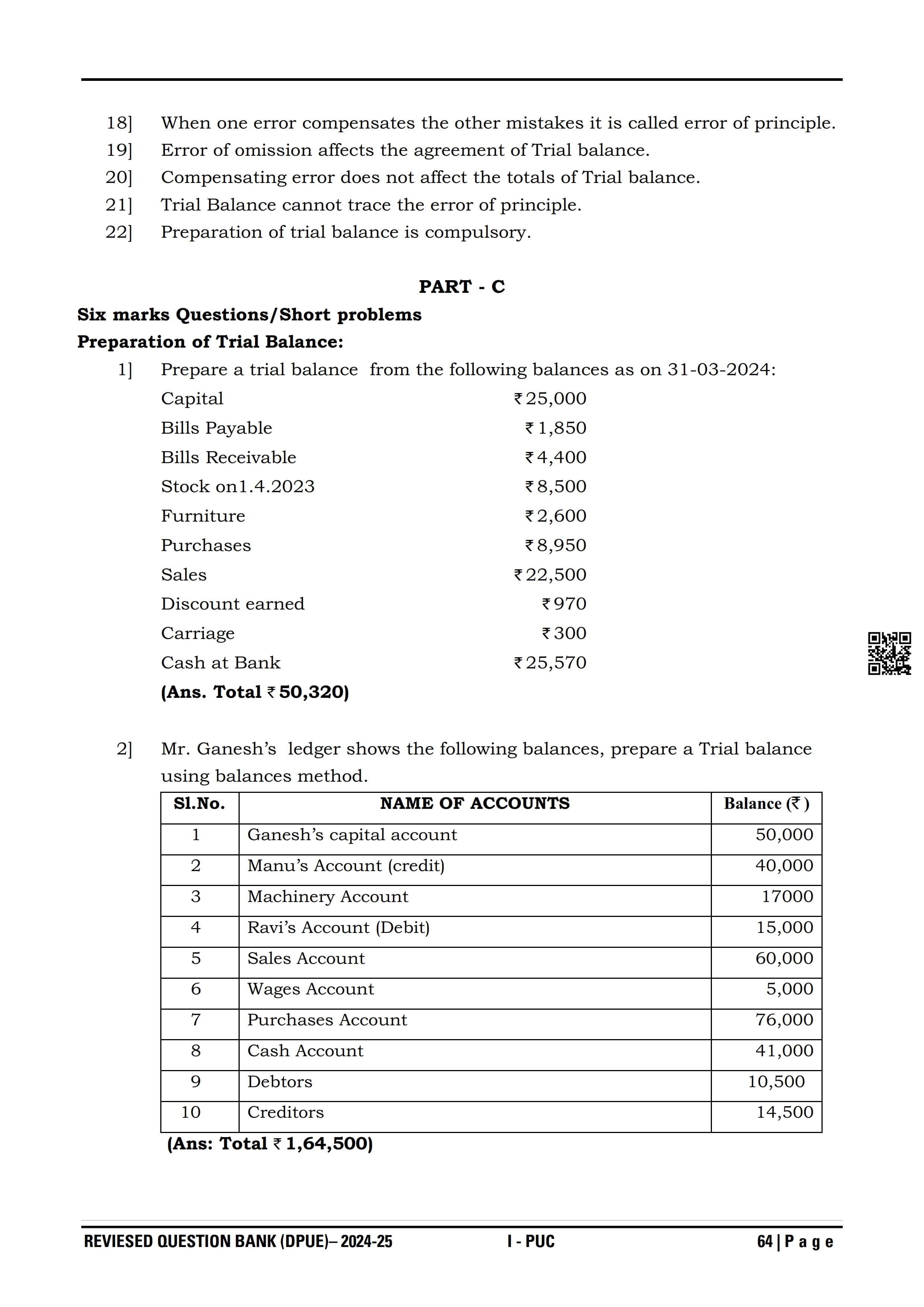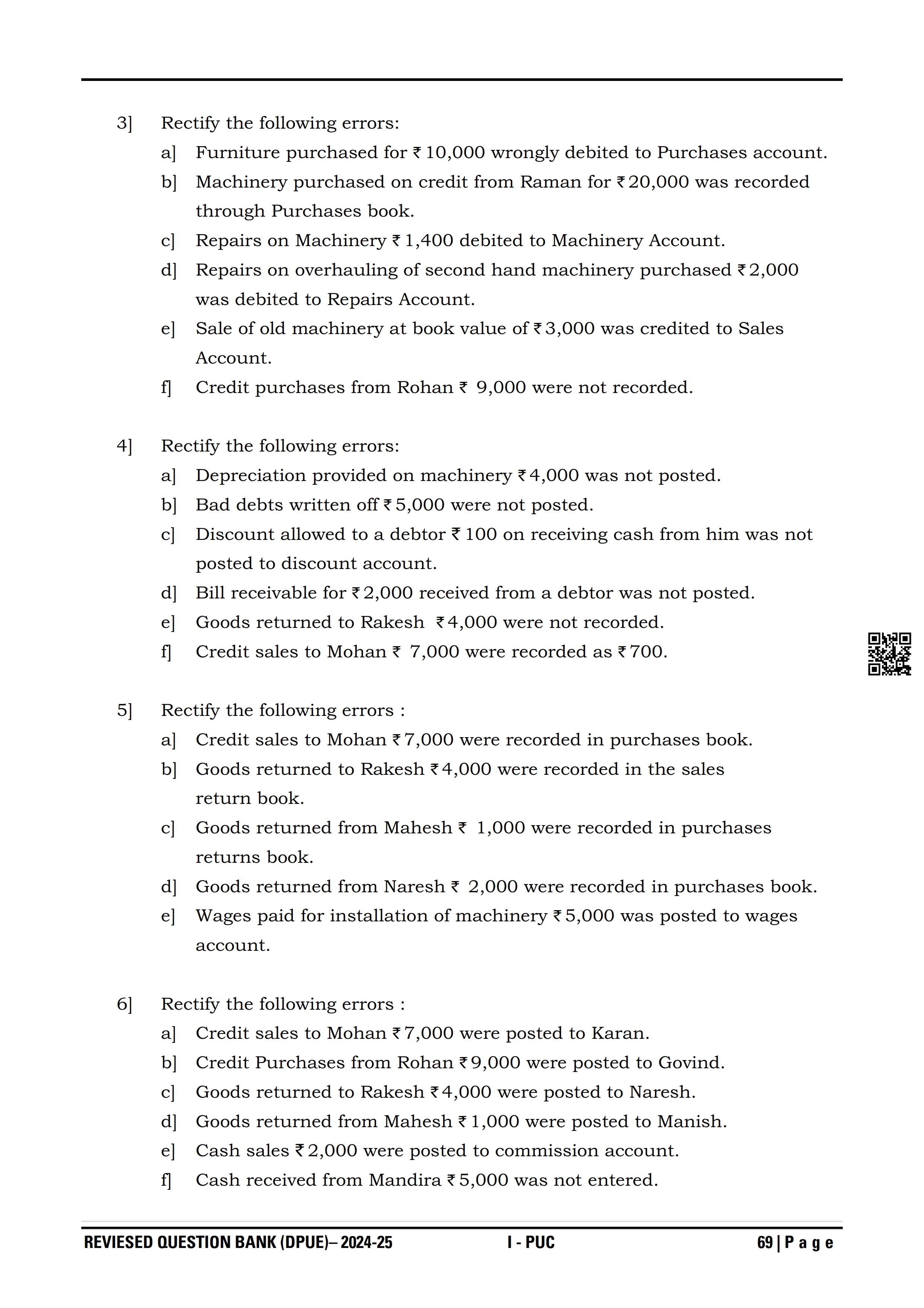 Karnataka I PUC Accountancy Question Bank