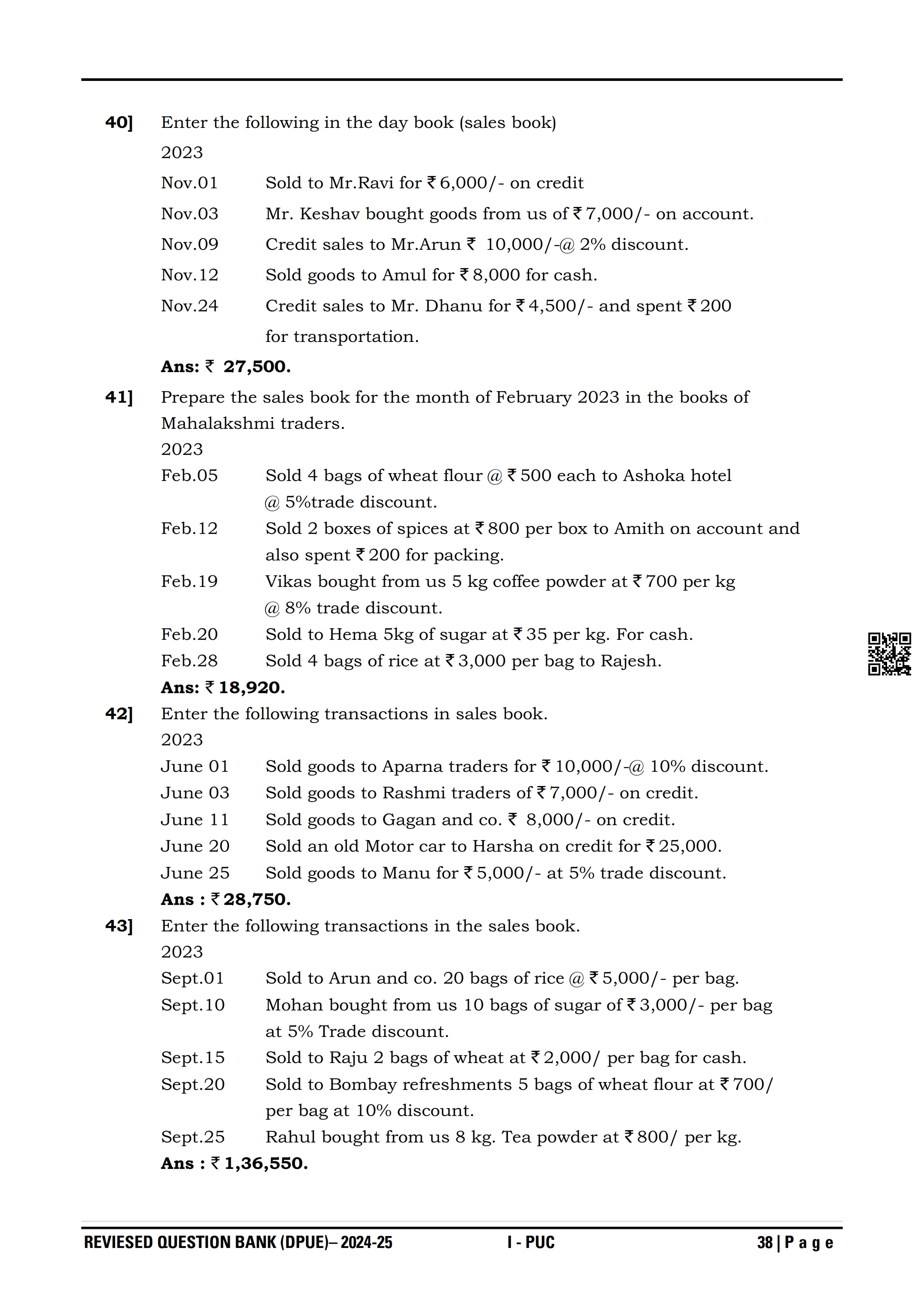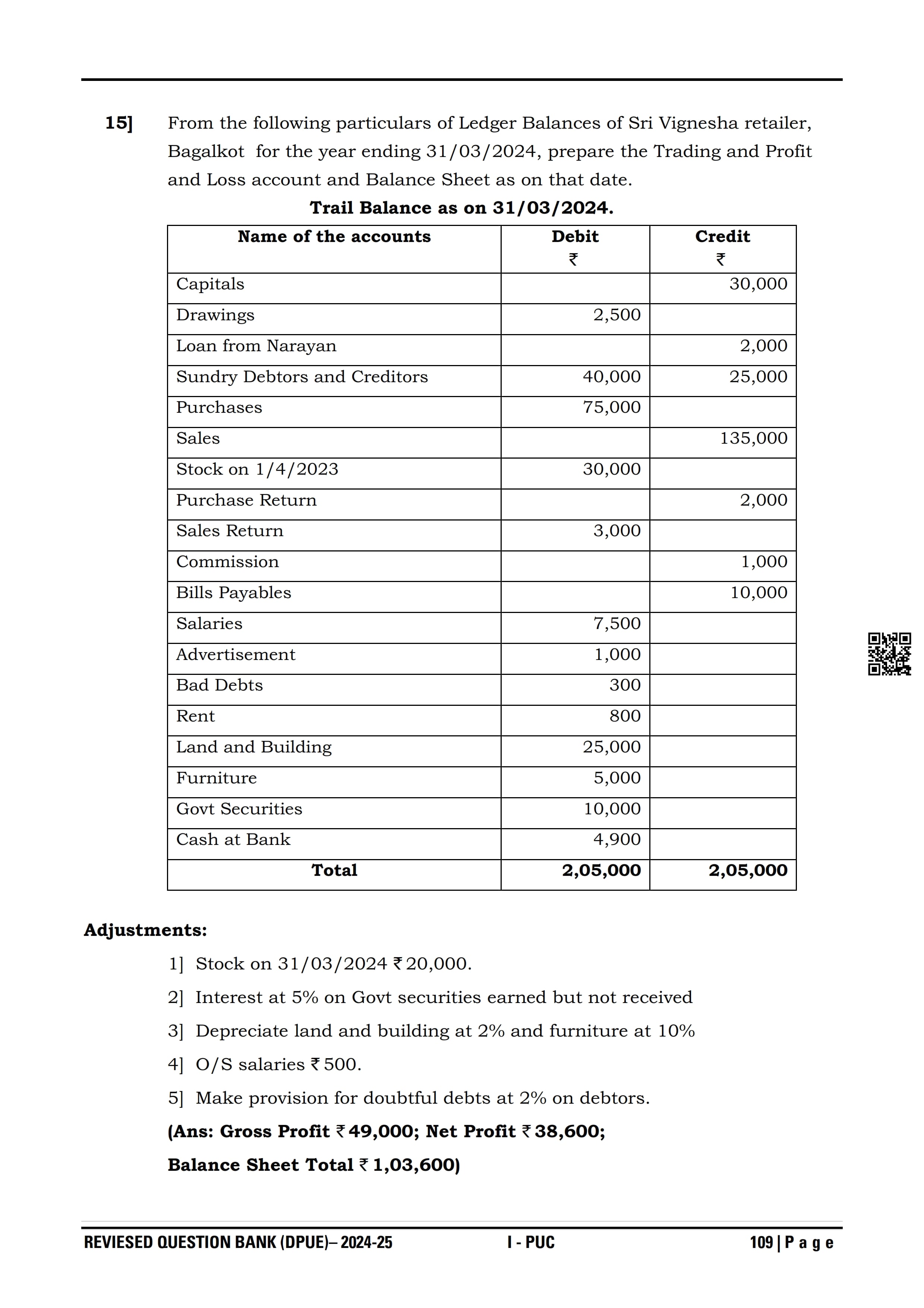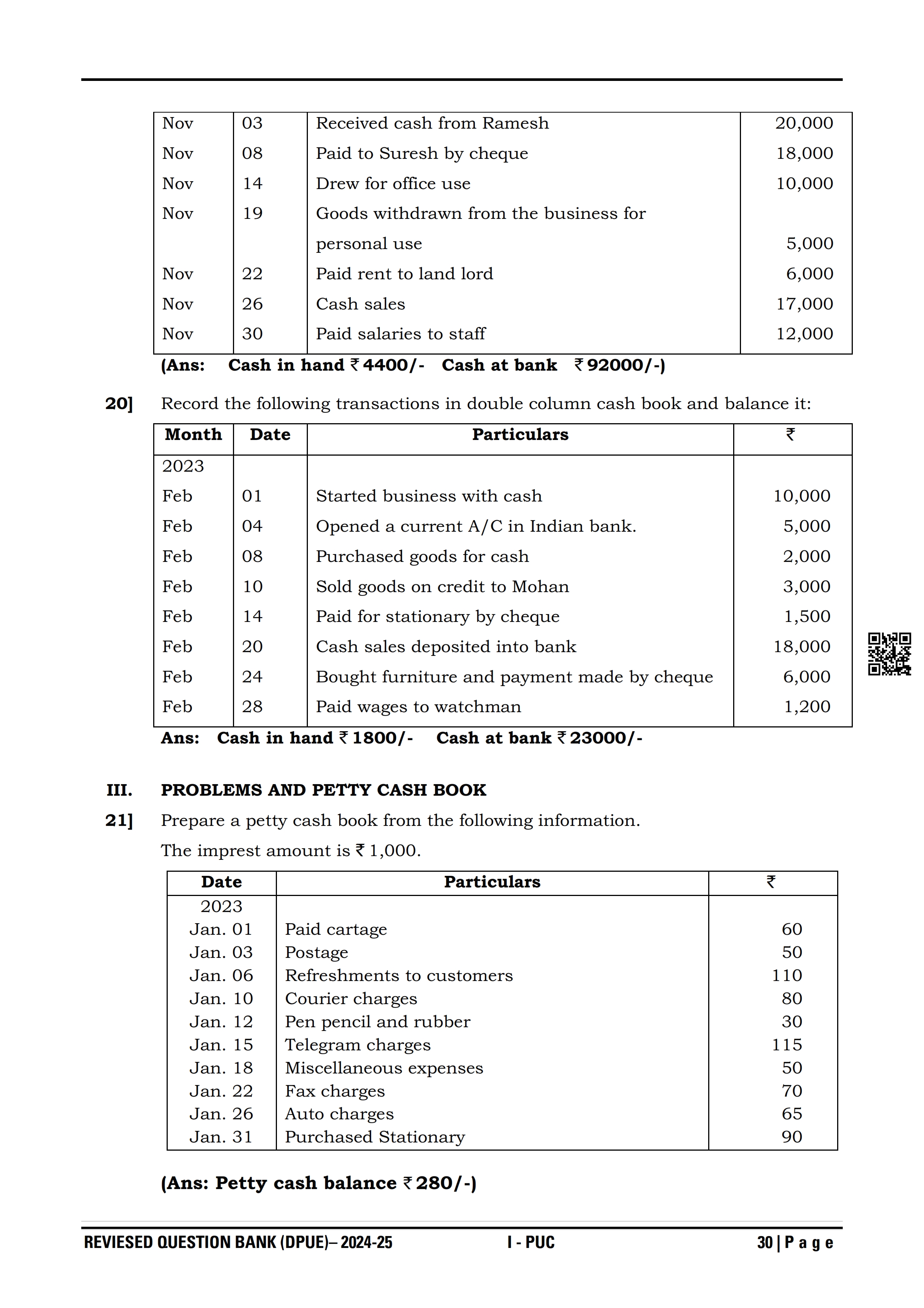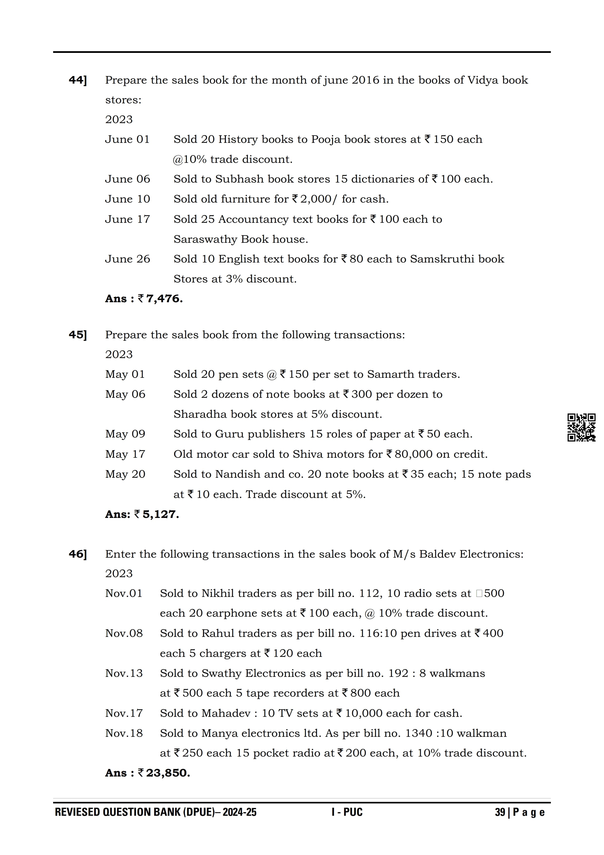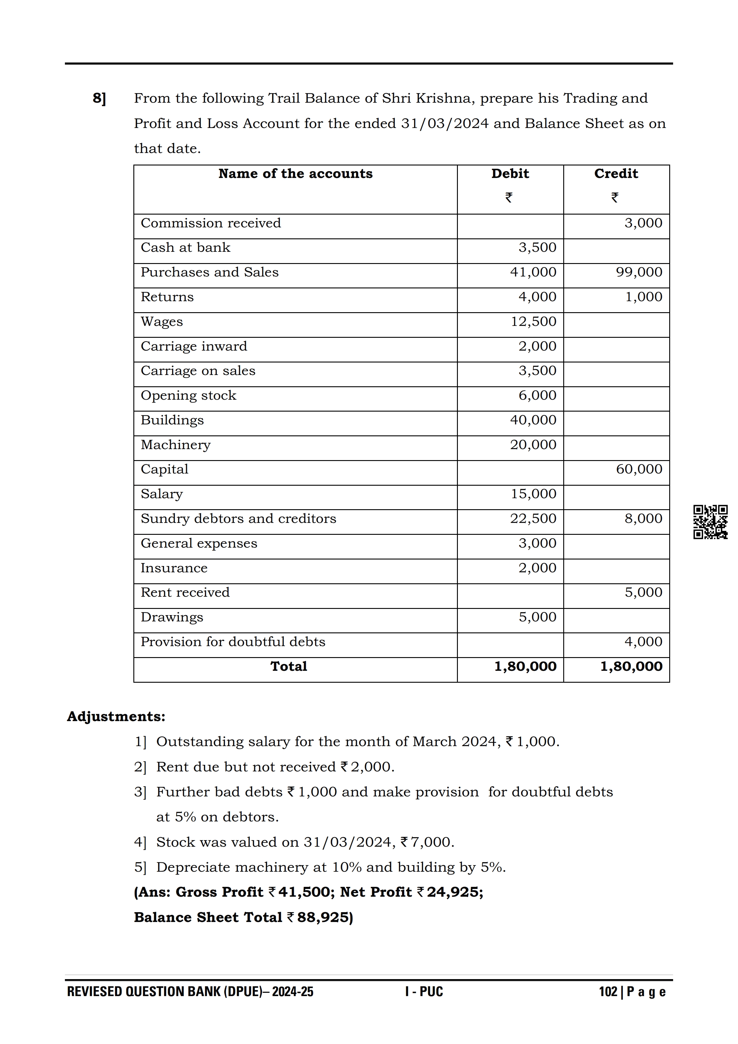 Karnataka I PUC Accountancy Question Bank