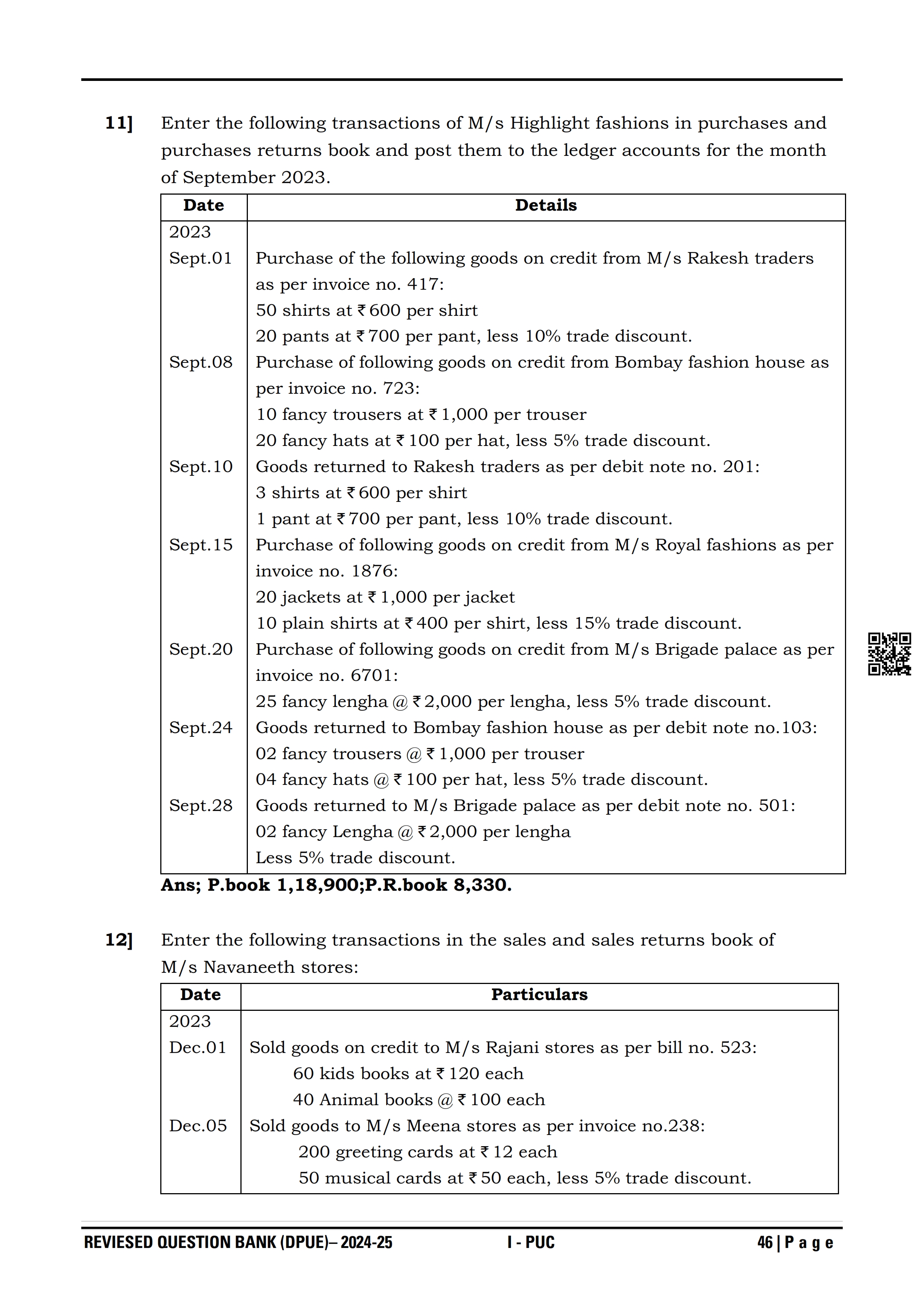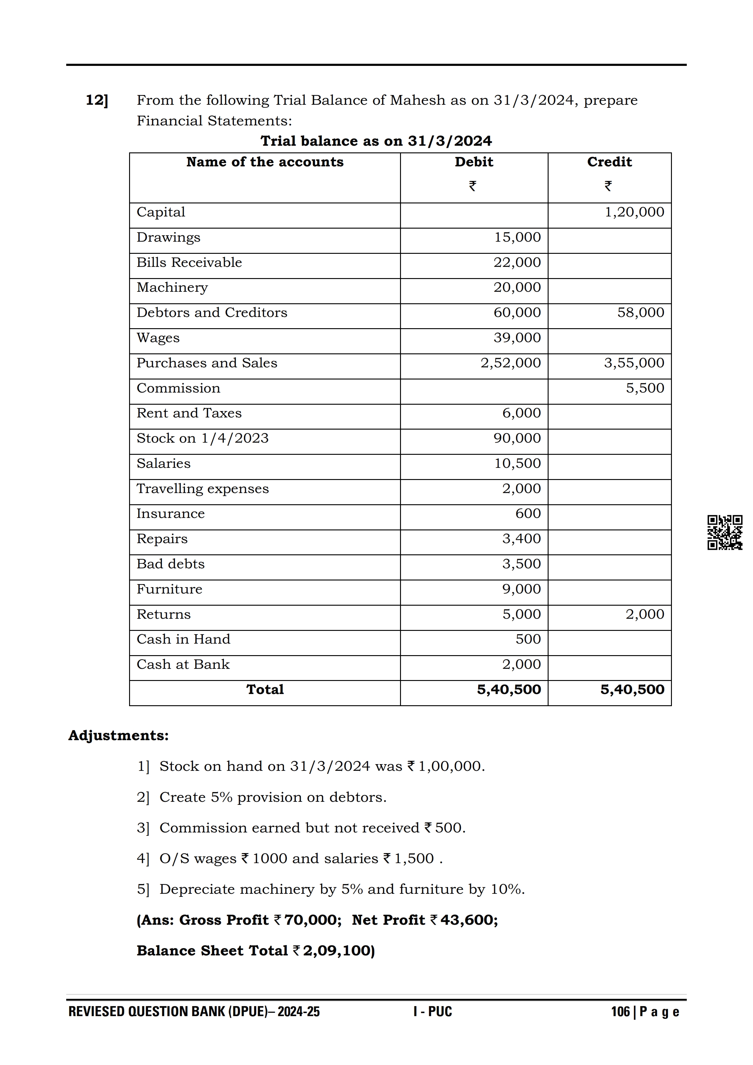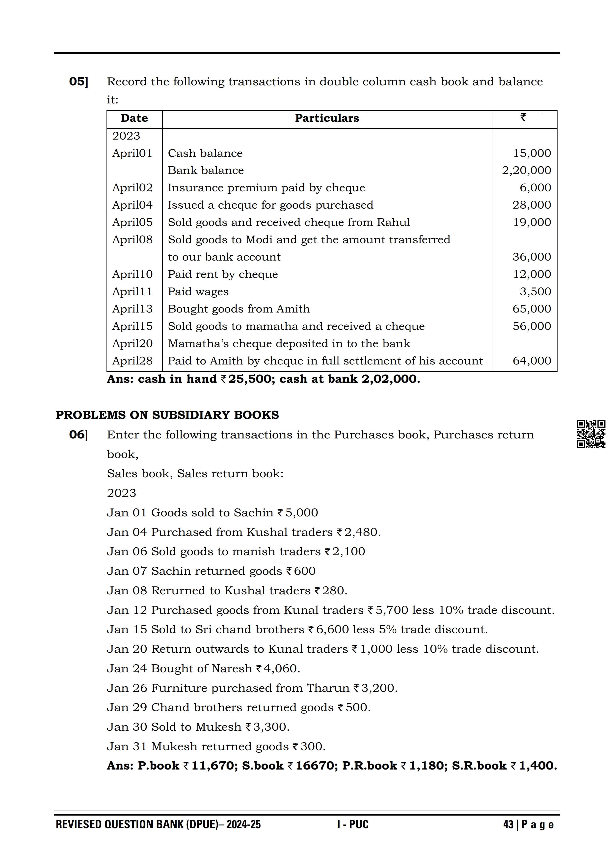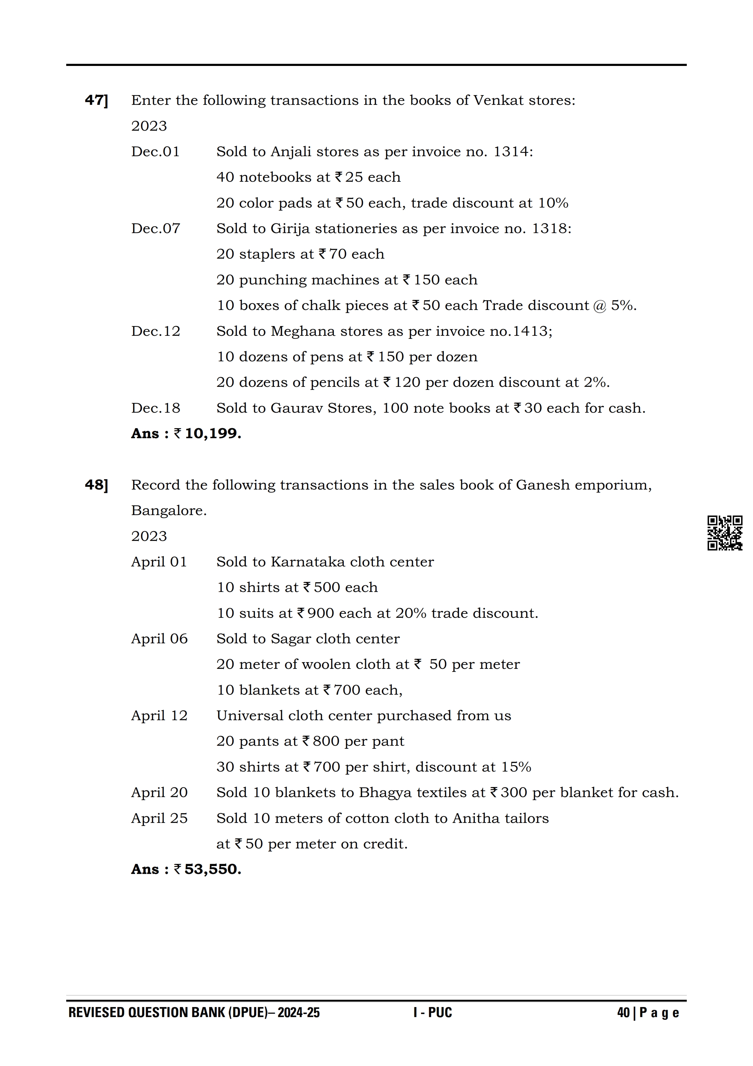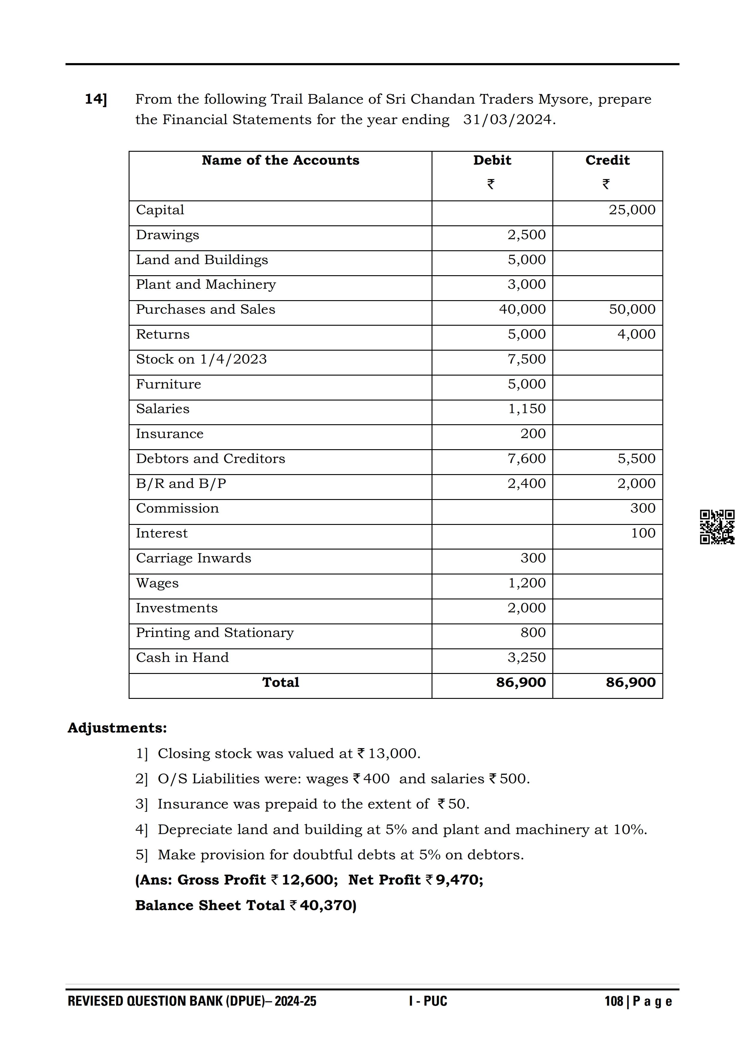 Karnataka I PUC Accountancy Question Bank
